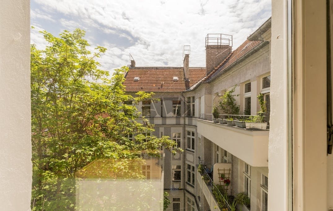 A cosy, fully furnished studio apartment on the 4th floor of the back building in a perfect location in Friedrichshain, right next to the Ring-Center shopping mall. This unit is perfect for a single person looking to easily enjoy and explore Berlin from one of the hippest youngest areas in the city. It has a combined living/sleeping room with a double bed, a spacious, well-equipped kitchen, and a small bathroom. It is incredibly well connected to public transportation, with S-Bahn (ring), U-Bahn (U5) and tram stations practically outside the door. The apartment includes: -Fully accessorised kitchen -Washing machine -Oven & Stove -High-speed WiFi -Registration (Anmeldung) possible -Electricity, heating...