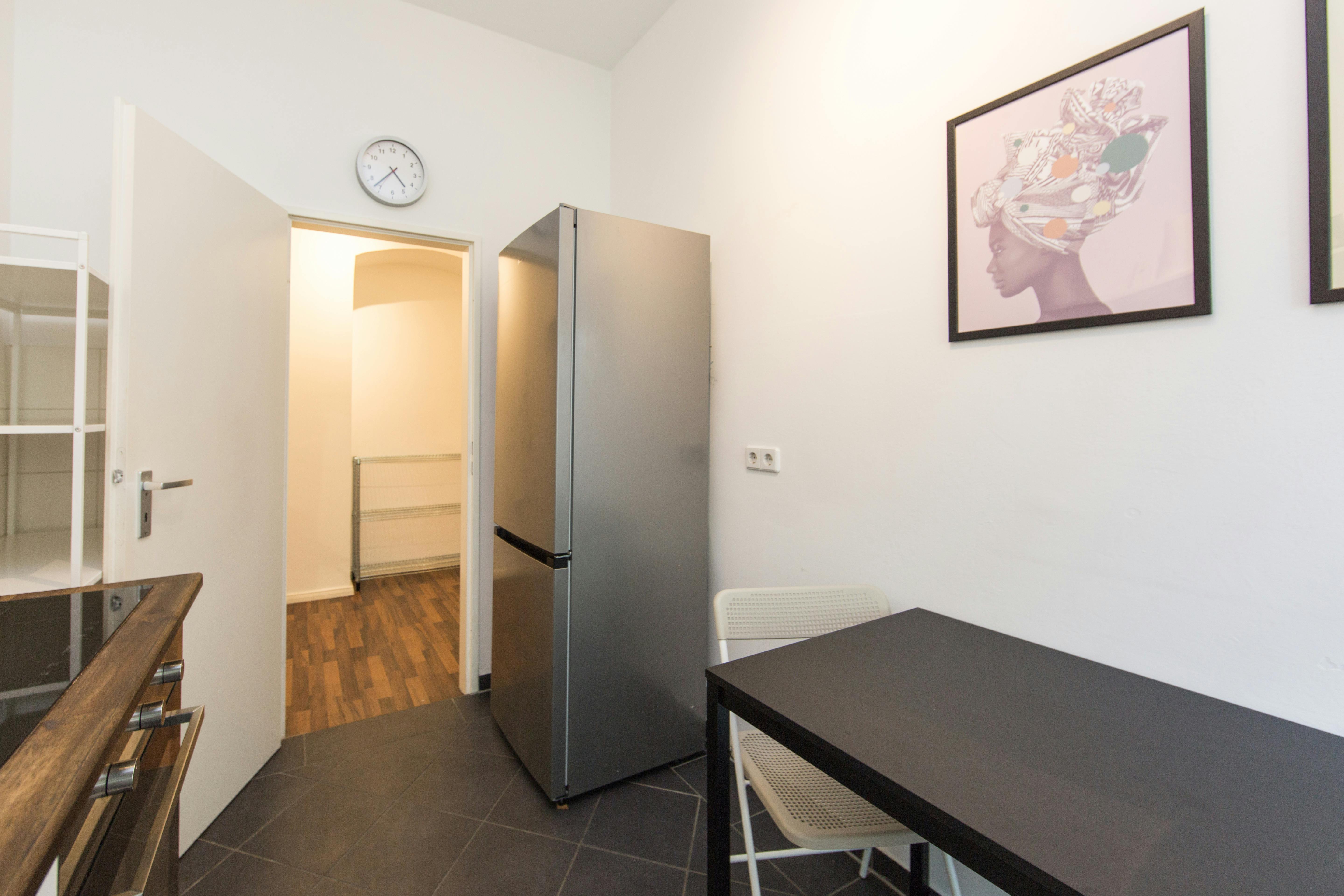 Room 3, Ground Floor Fully furnished with a comfy bed, desk, chair, and wardrobe. Shared areas include a washing machine, kitchen equipment, and all daily essentials. ?Registration (Anmeldung) is possible ?All-inclusive rent (rent, heating, water, internet, GEZ) ?Move-in is only possible on the 1st or 16th of each month. Flexible dates may be possible—let’s discuss :) ?Deposit: €950 (to be paid via bank transfer before move-in)