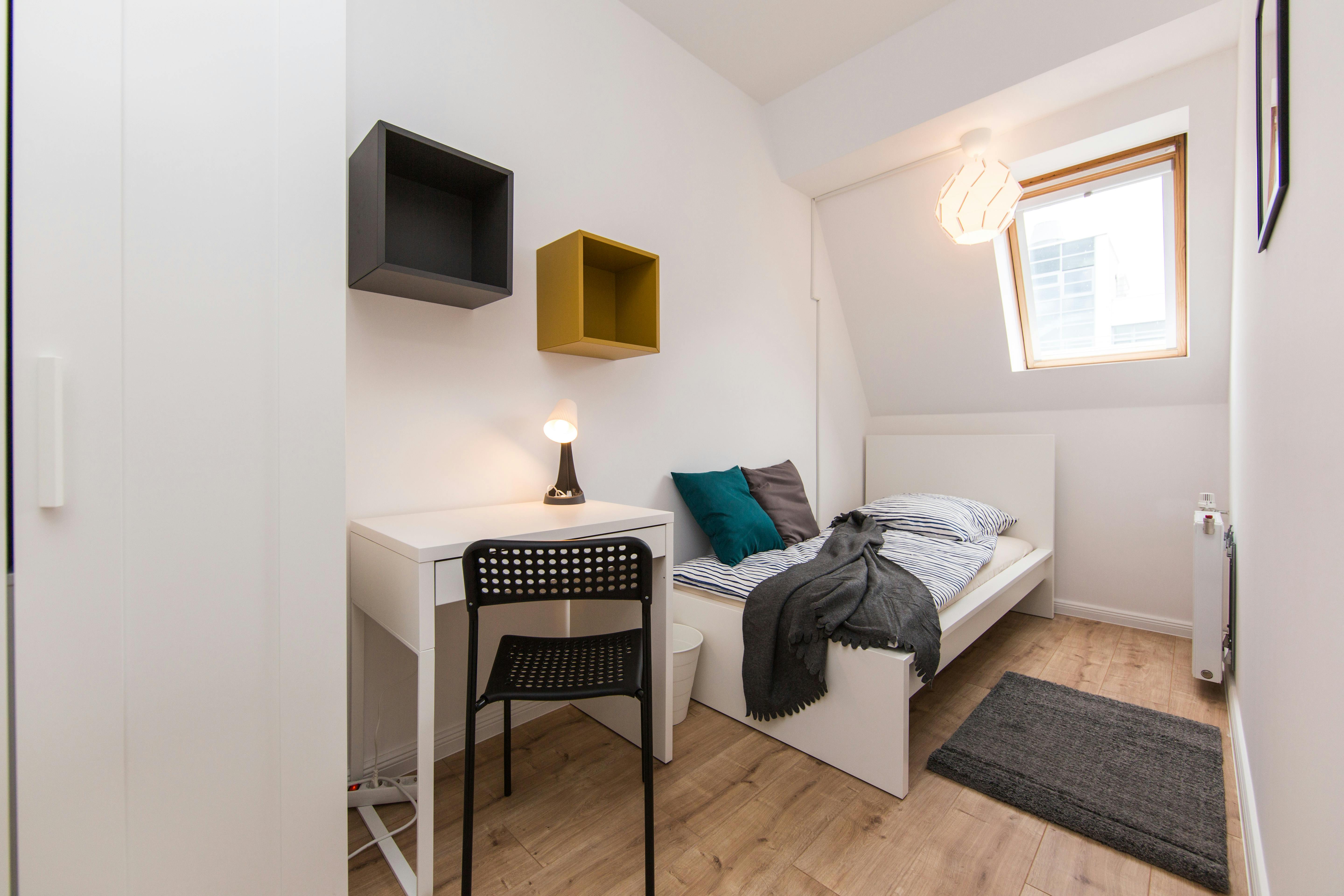 Room 6, 5th Floor Fully furnished with a comfy bed, desk, chair, and wardrobe. Shared areas include a washing machine, kitchen equipment, and all daily essentials. ?Registration (Anmeldung) is possible ?All-inclusive rent (rent, heating, water, internet, GEZ) ?Move-in is only possible on the 1st or 16th of each month. Flexible dates may be possible—let’s discuss :) ?Deposit: €950 (to be paid via bank transfer before move-in)