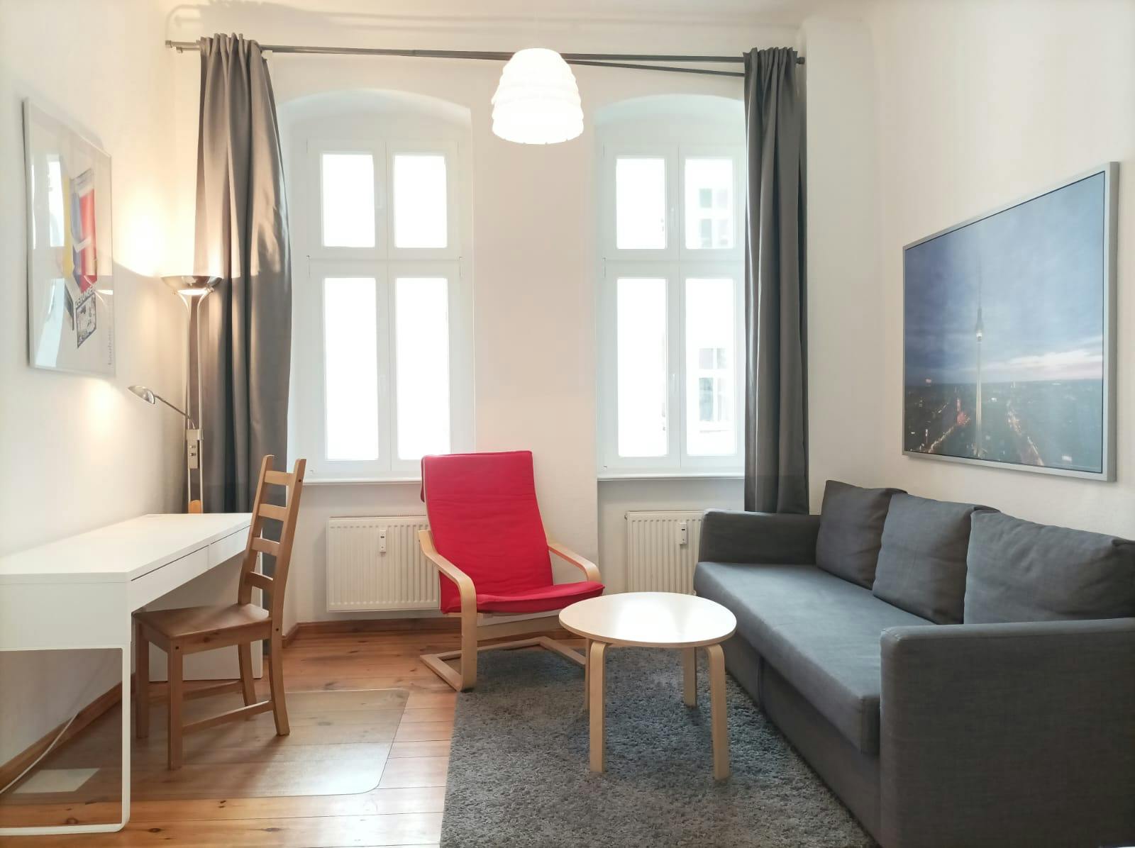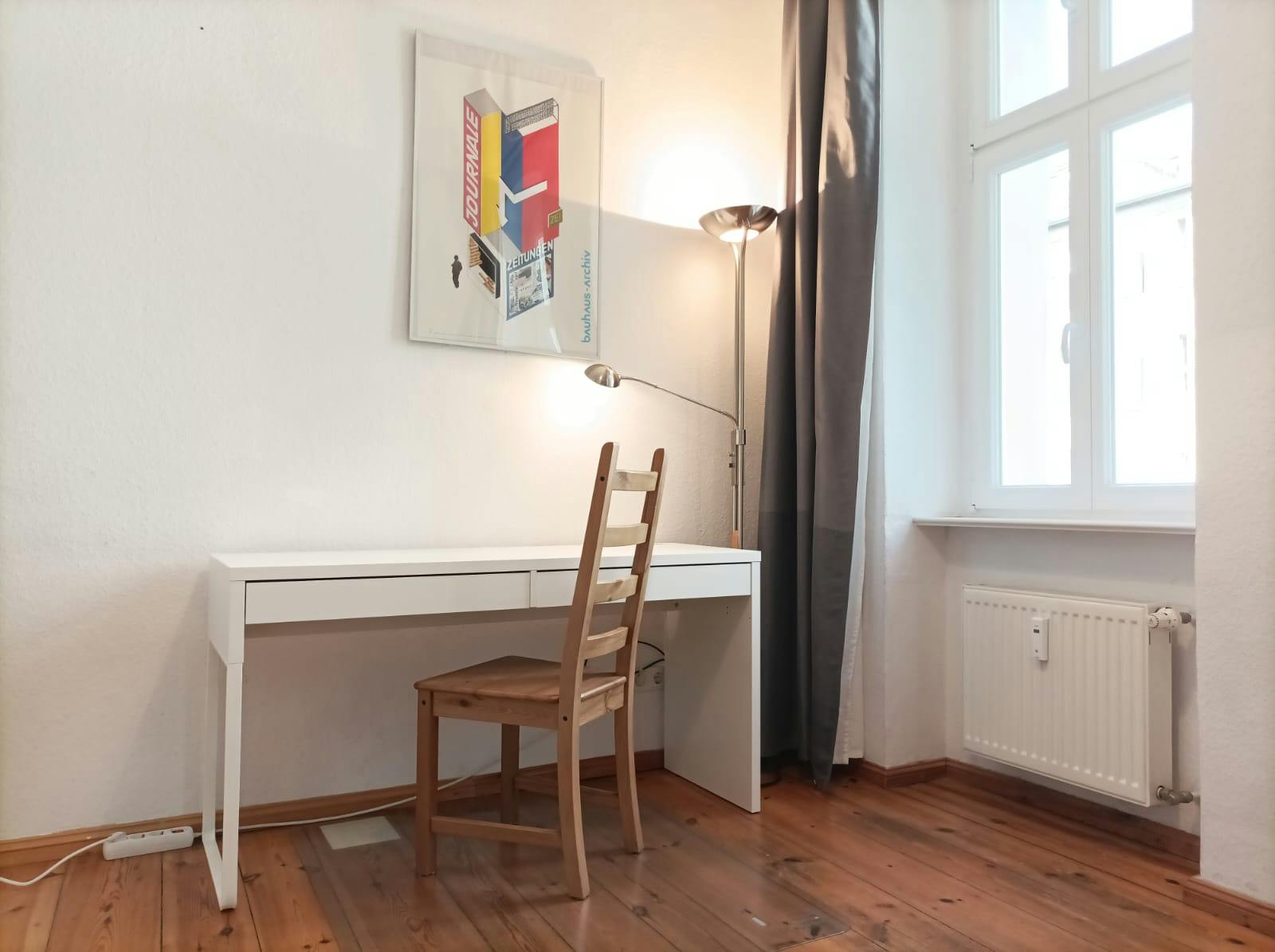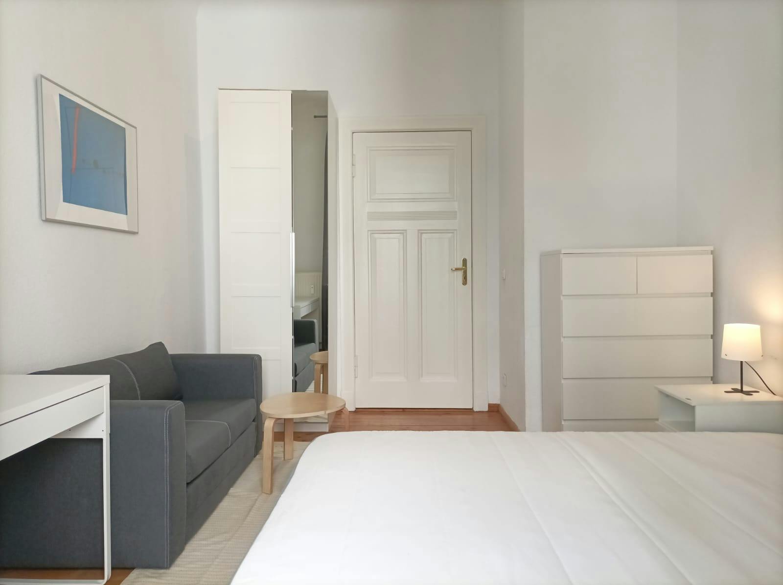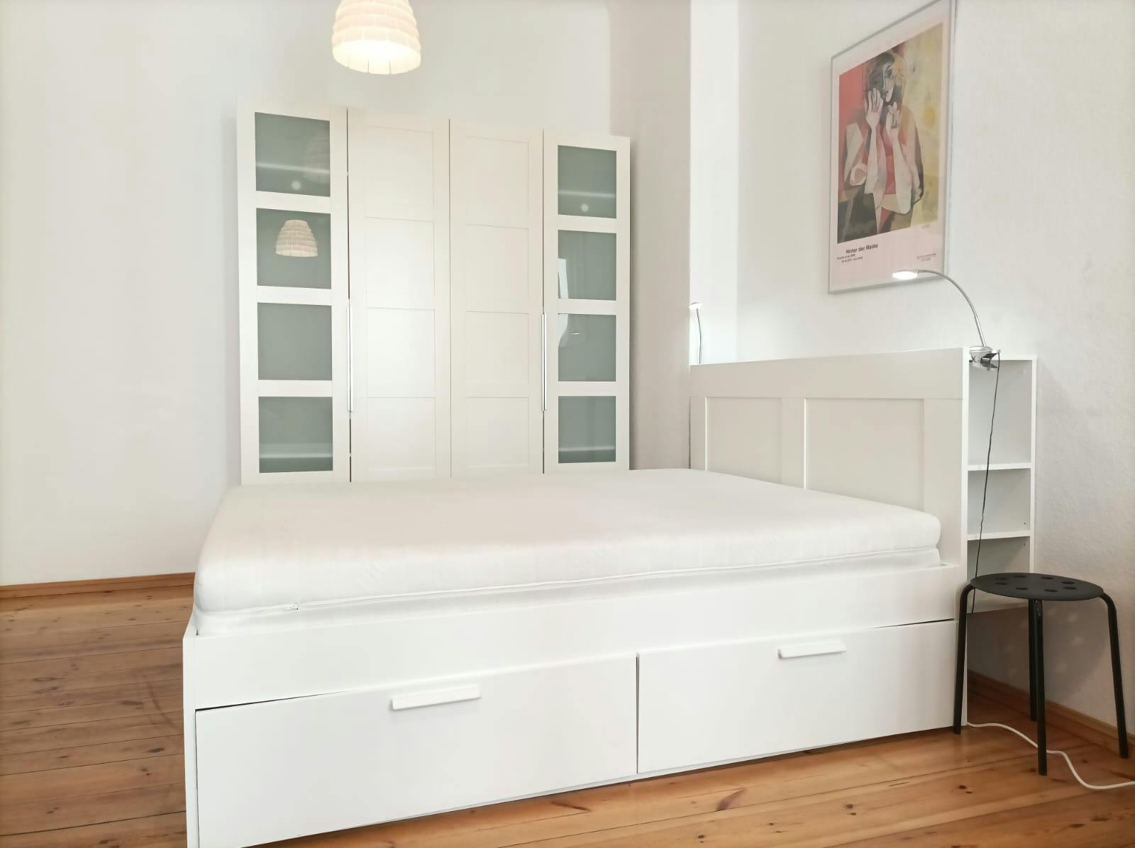 2 Rooms • 62 sqm • 2nd Floor • Balcony • Charlottenburg • Mierendorffplatz Minimum stay: 10 months • Maximum stay: 12 months • Anmeldung is provided Suitable for: Roommates / 1 - 2 People Room 1 Double bed 160X200 2 night tables 2 reading lamps Wardrobe Sofa bed 160x200 Arm chair Coffee table Standing lamp Carpet Desk Chair Curtains Blackout curtains Room 2 Double bed 160X200 2 night tables 2 reading lamps Wardrobe Chest of drawers Sofa bed 120x200 Coffee table Carpet Desk Chair Mirror Curtains Blackout curtains Access to balcony Kitchen Fridge Oven Electric stove Hood Microwave Toaster Kettle Dishwasher Dining table Chairs Dish drying rack Bathroom Washing machine Shower Cabinet Shelf Towel rack Mirror Hall Mirror Hangers Bank Shoe rack Shelf Amenities WiFi Wooden floor Central heating Clothes hangers Vacuum cleaner Cleaning tools Plates/glasses/cutlery Pots and pans Cooking equipment Public transport 1 minute walk to Mierendorffplatz U-bahn station (U7) 1 minute walk to Bus station (M27) Supermarkets 3 minutes walk to EDEKA 5 minutes walk to LIDL 5 minutes walk...