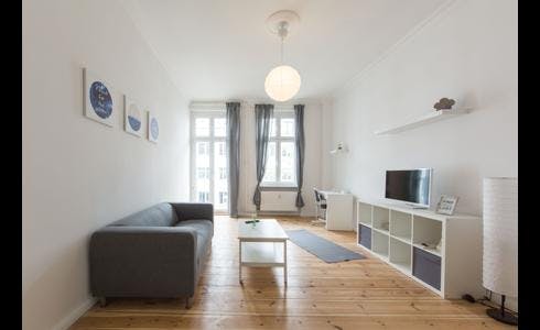 Welcome to the heart of the city! The apartment is in a great location and offers you everything you need for a great stay in this city! The location of the property offers everything your heart desires. Quiet living, work and leisure come together here. Everything you need for daily life is in the immediate vicinity. The apartment offers you many advantages for a pleasant stay. See for yourself. Here you will feel like in your second home. This beautiful 2-room apartment offers a spacious 53 qm with high ceiling as well as wodden flooring and a sunny and enhancing balcony....
