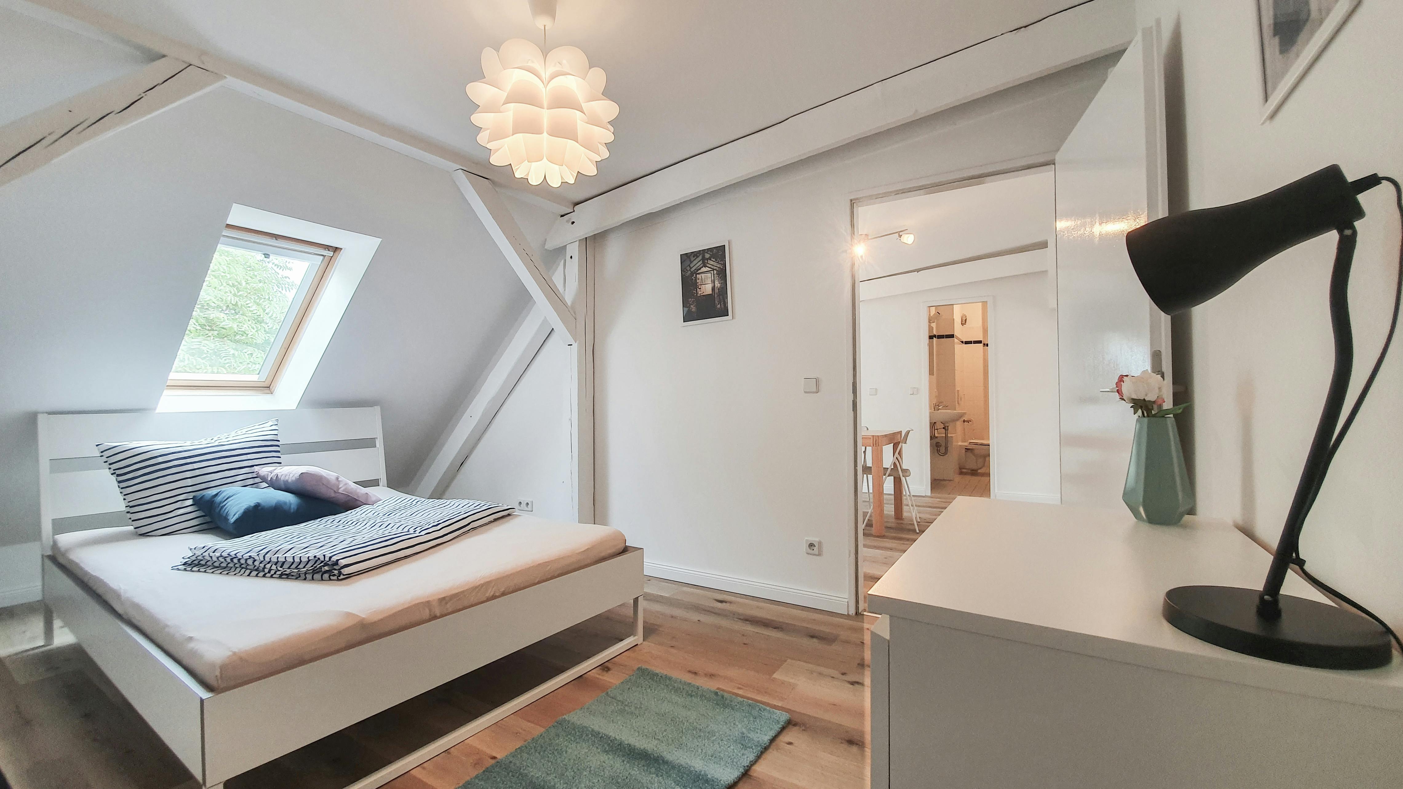 Room 4 , 4th/5th Floor Fully furnished with a comfy bed, desk, chair, and wardrobe. Shared areas include a washing machine, kitchen equipment, and all daily essentials. ?Registration (Anmeldung) is possible ?All-inclusive rent (rent, heating, water, internet, GEZ) ?Move-in is only possible on the 1st or 16th of each month. Flexible dates may be possible—let’s discuss :) ?Deposit: €950 (to be paid via bank transfer before move-in)