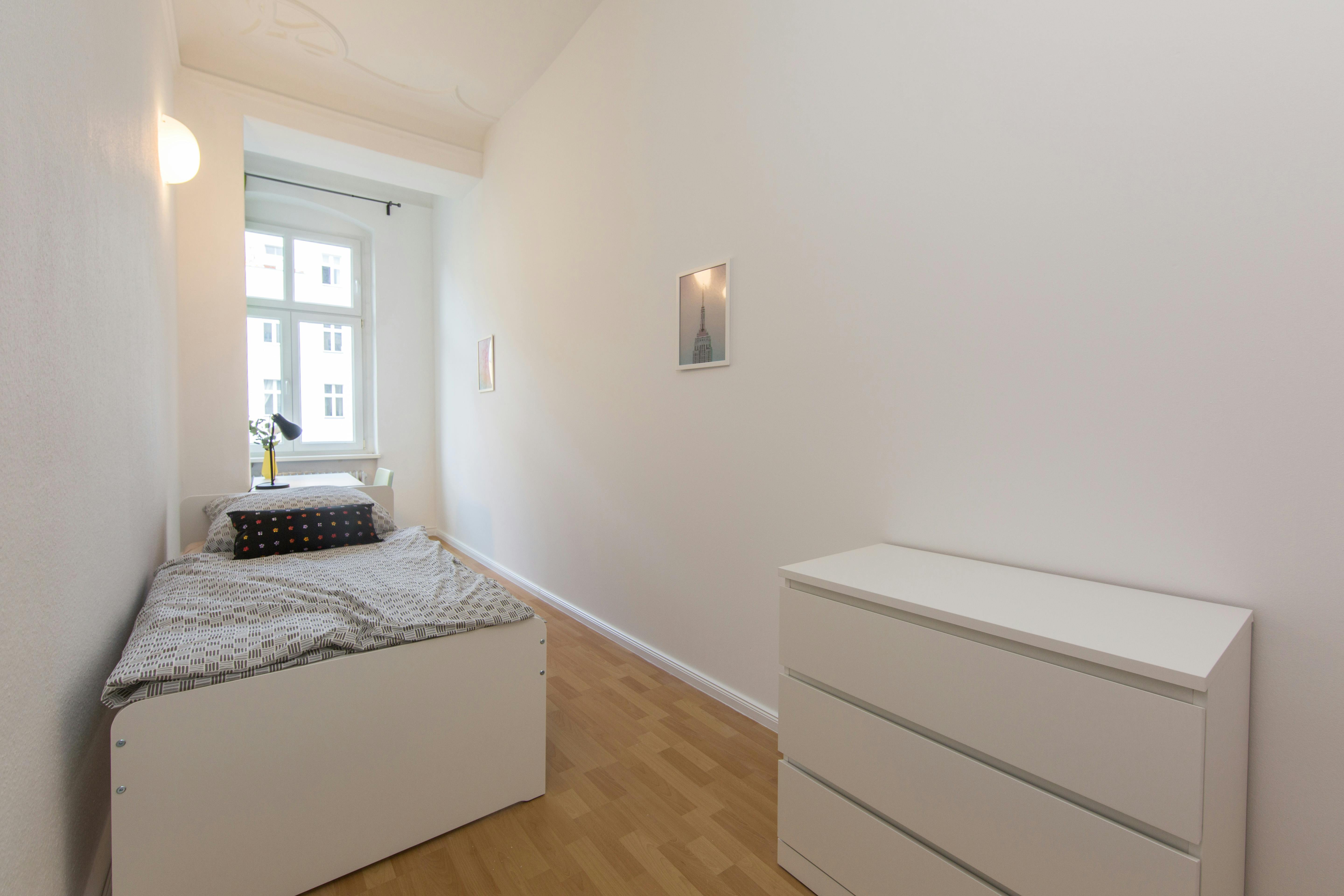 Hi guys, ROOM 6 this is a fully furnished room. The room has a comfortable bed, a desk with chair and a wardrobe for your clothes. Also the common areas are fully equipped with washing machine, cooking equipment and all you need for your daily living. Anmeldung/ Registration is possible. The monthly rent price is all inclusive (rent + heating + water + Internet + GEZ/german TV license fee). For the move in dates we have only the 1st or the 16th of each month a tenant can move in. In specific cases we have a flexible move in date, but this needs to discuss...