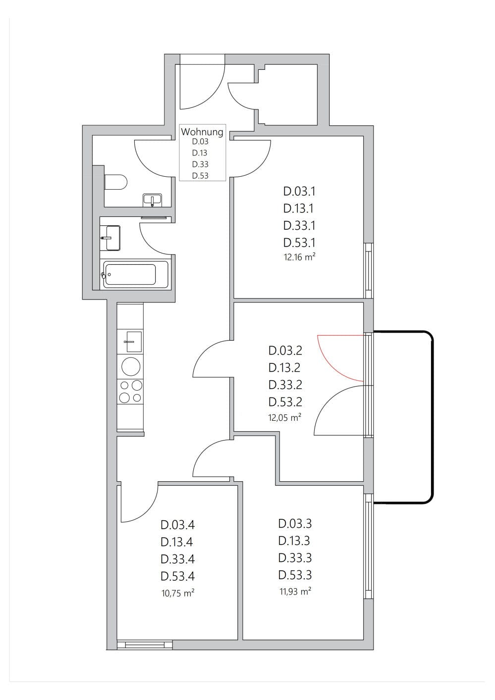 Type: WG-Zimmer (12 ㎡) im Apartment