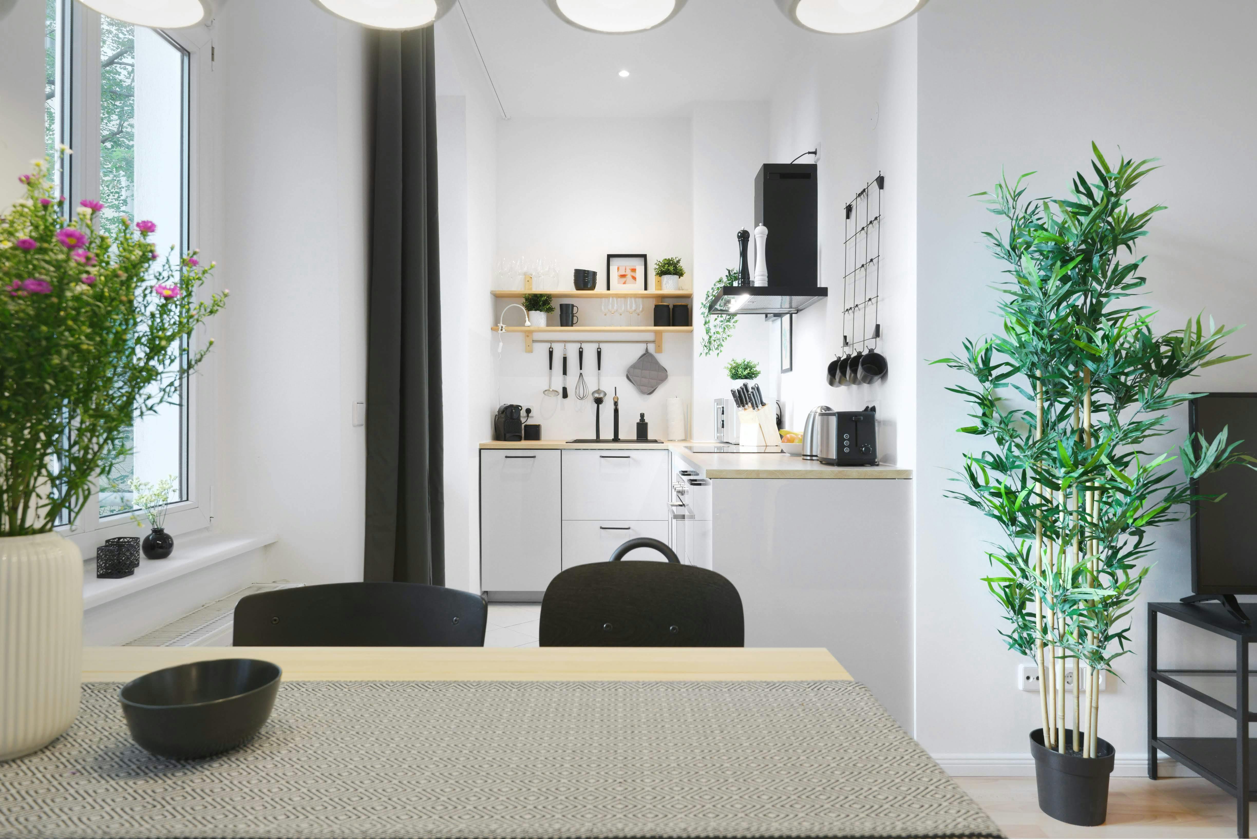 PLEASE NOTE THAT IF YOU RENT THE ACCOMMODATION FOR LESS THAN 6 MONTHS, THE RENTAL PRICE INCREASES BY 7%. Move into this astonishing property! 70m2 spacious refurbished apartment provides you with the modern, and cosy decor that creates a special living environment. The 3-bedroom condo features two comfortable king-size boxspring beds and, despite the central location on the courtyard-facing, a quiet and sunny balcony, which offers the best place to relax. The bathroom is equipped with a shower. The washing machine is for free and only for your laundry. The living and dining area with a fully equipped kitchen, a dining table,...