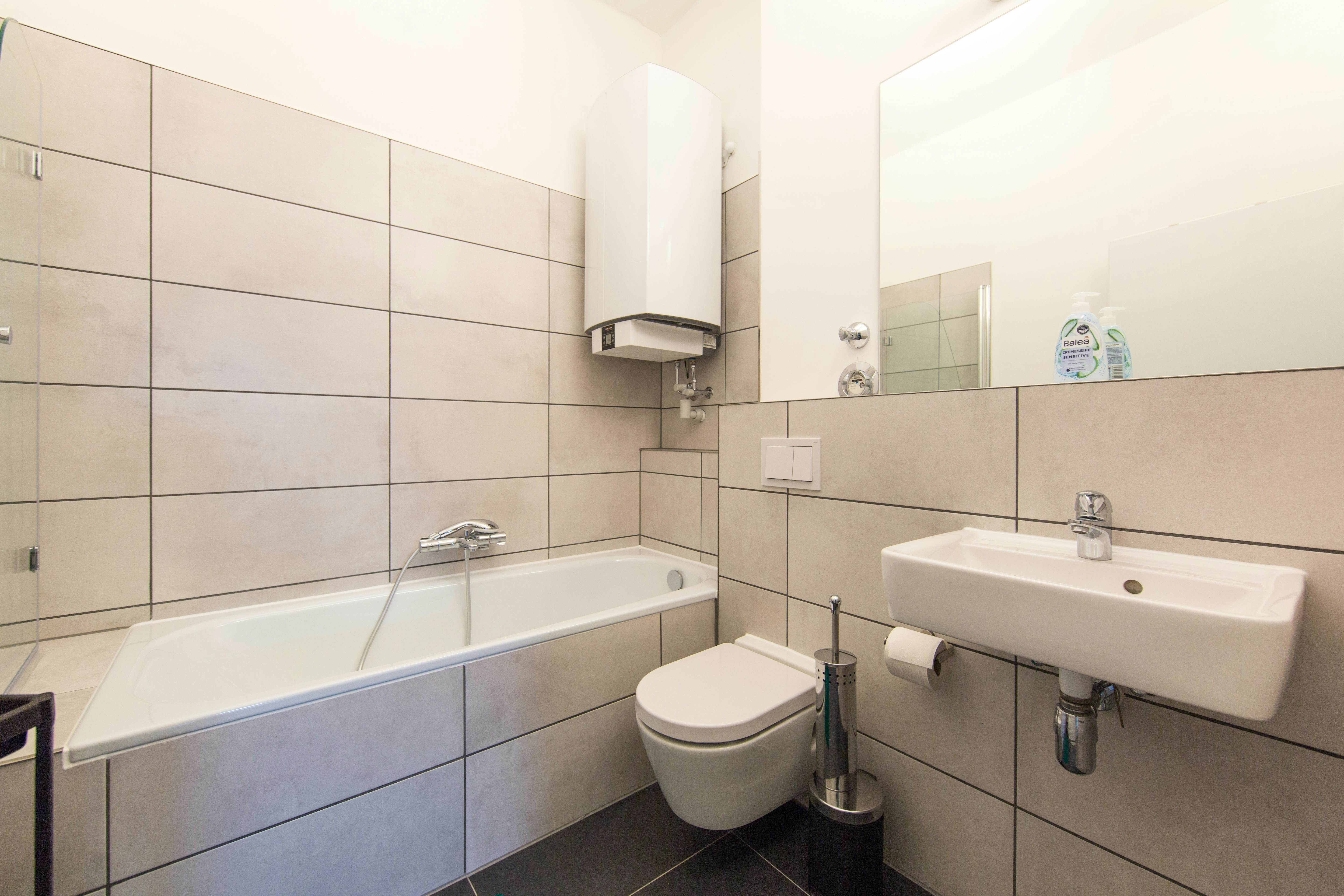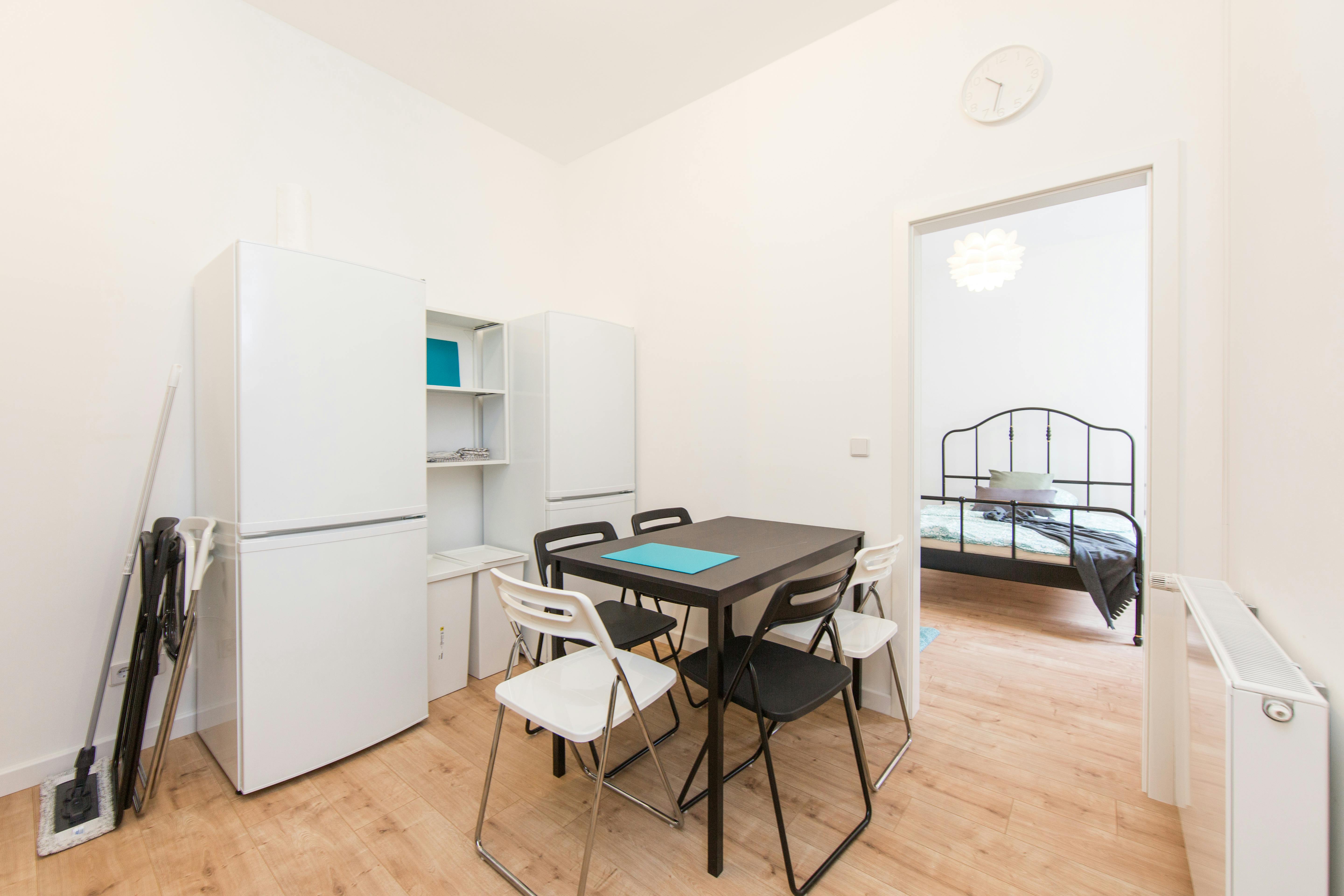 ROOM 3 this is a fully furnished room in a shared flat. The room has a comfortable bed, a desk with chair and a wardrobe for your clothes. Also the common areas are fully equipped with washing machine, cooking equipment and all you need for your daily living. Anmeldung/ Registration is possible. There are 2 bethrooms + 2 fridges The monthly rent price is all inclusive (rent + heating + water + Internet + GEZ/german TV license fee). For the move in dates we have only the 1st or the 16th of each month a tenant can move in. In specific cases we have a...