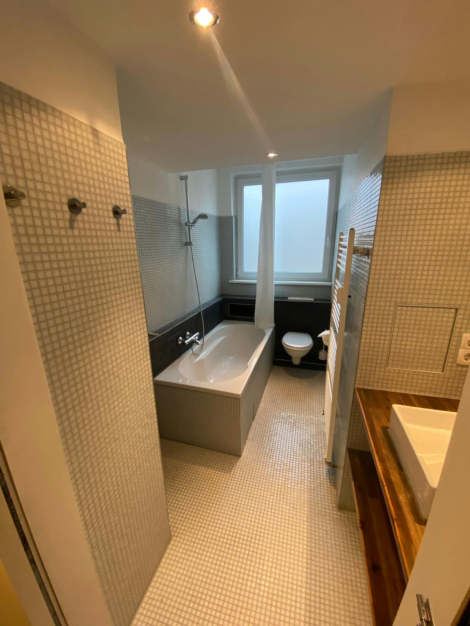 Deutsche Version weiter unten: ________________________ Bergmann-Kiez - excellent bright apartment with Balcony on 5th floor with elevator This pretty and well distributed apartment with its balcony is located in the 5th floor in the lovely Bergmann-Kiez in Kreuzberg in the heart of Berlin. • 63 qm apartment with elevator • Balcony to quite courtyard • Bathroom with bathing tub and window • Wooden floor in the apartment (except bathroom) Amentities: • Fully equipped kitchen with fridge/freezer & dishwasher/gas stove/oven and washing/drying machine including set of plates, pans • Big sleeping sofa in the living room with large table with 4 comfortable chairs, sideboards, lamps • Bedrom with double...