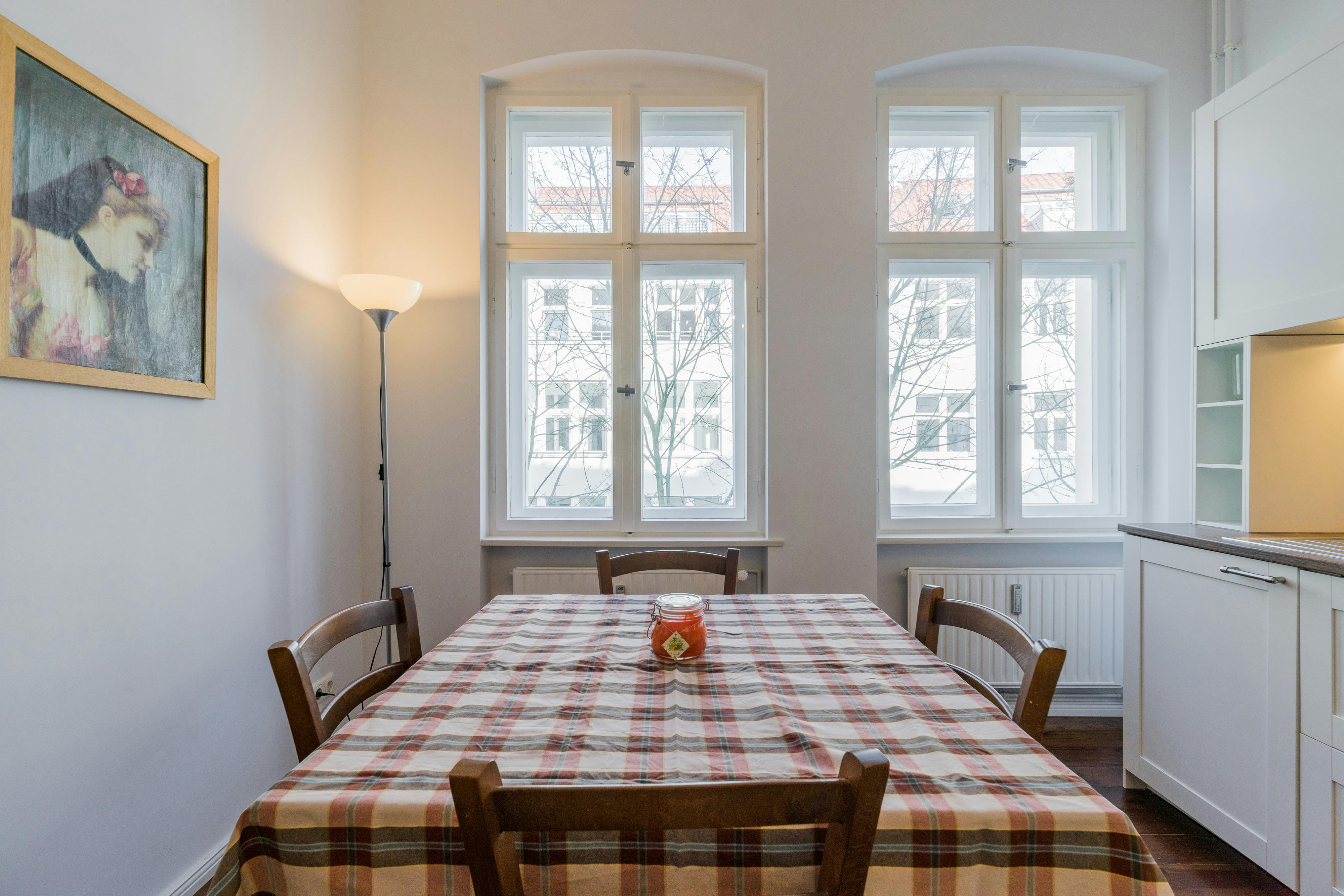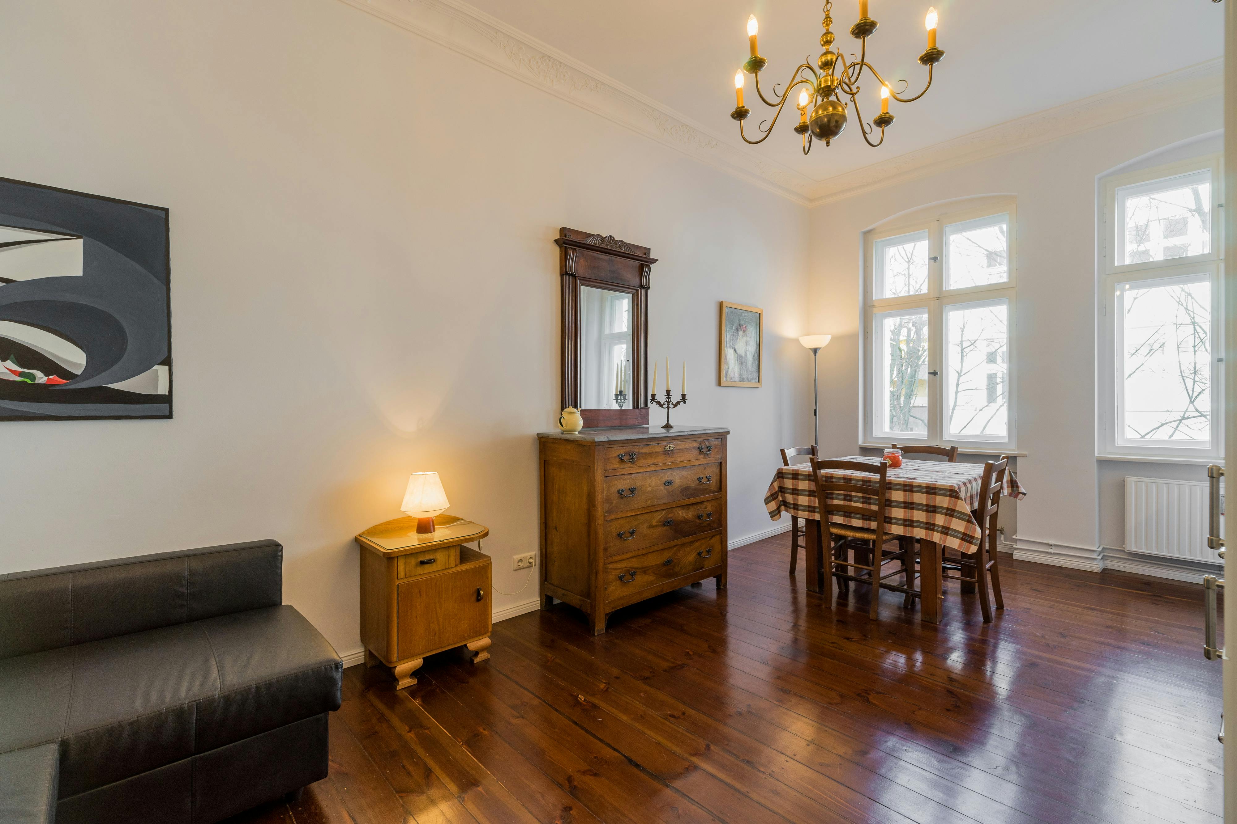 Discover This Fully Furnished Gem in Berlin! ?? This fantastic flat is located at Stockholmer Str., Berlin, on the 3rd floor of a typical Berlin old building, offering a living space of approximately 38 square meters. The kitchen and living room feature elegant dark wooden floorboards and are furnished with a stylish black leather sofa, complemented by attractive art pieces, and a dining table for up to 4 people ?️?. The large double bed is situated in a separate room, ensuring a clear distinction between living and sleeping areas for maximum comfort and privacy ?️. The highlight of this flat is its modern,...