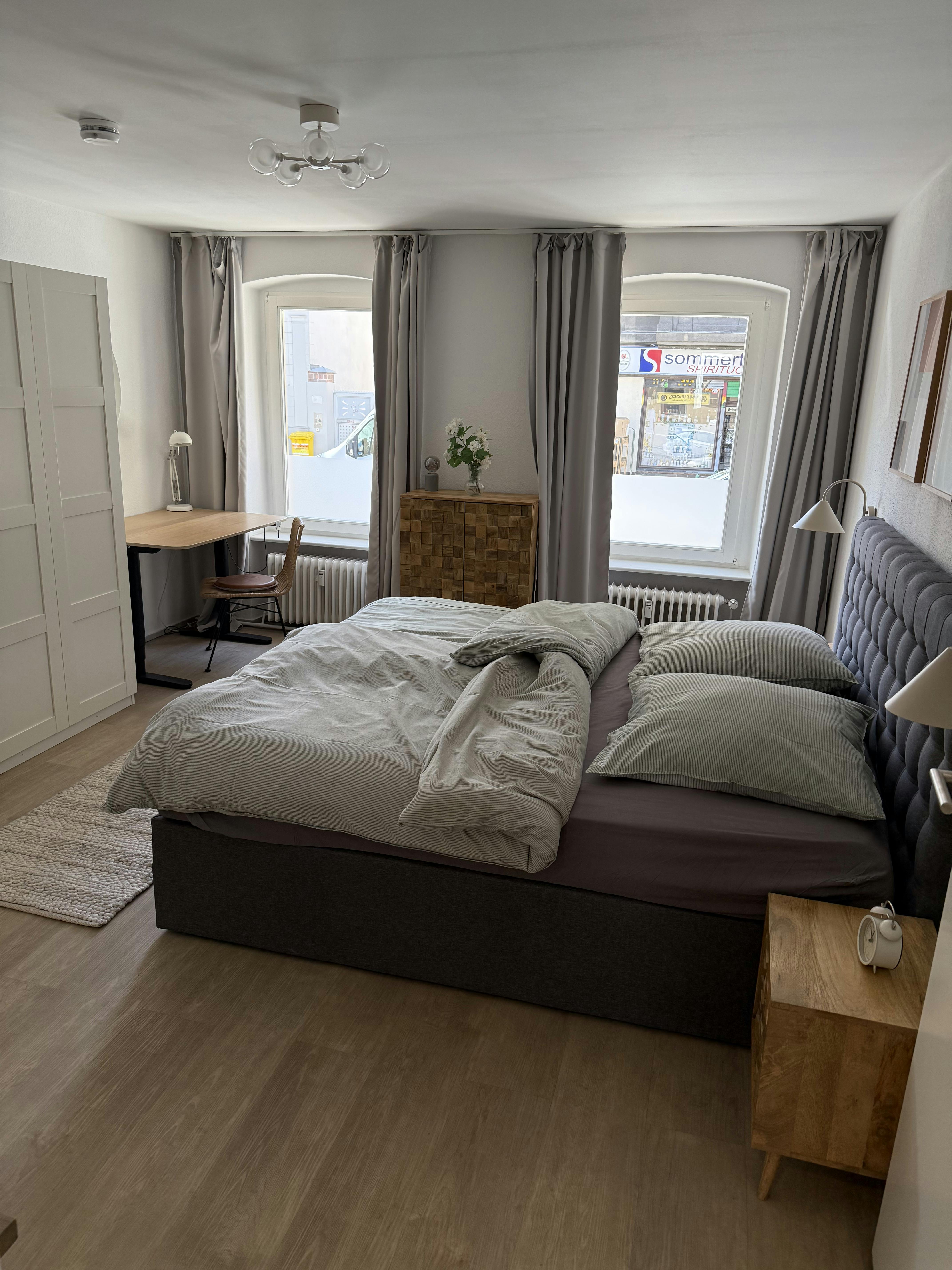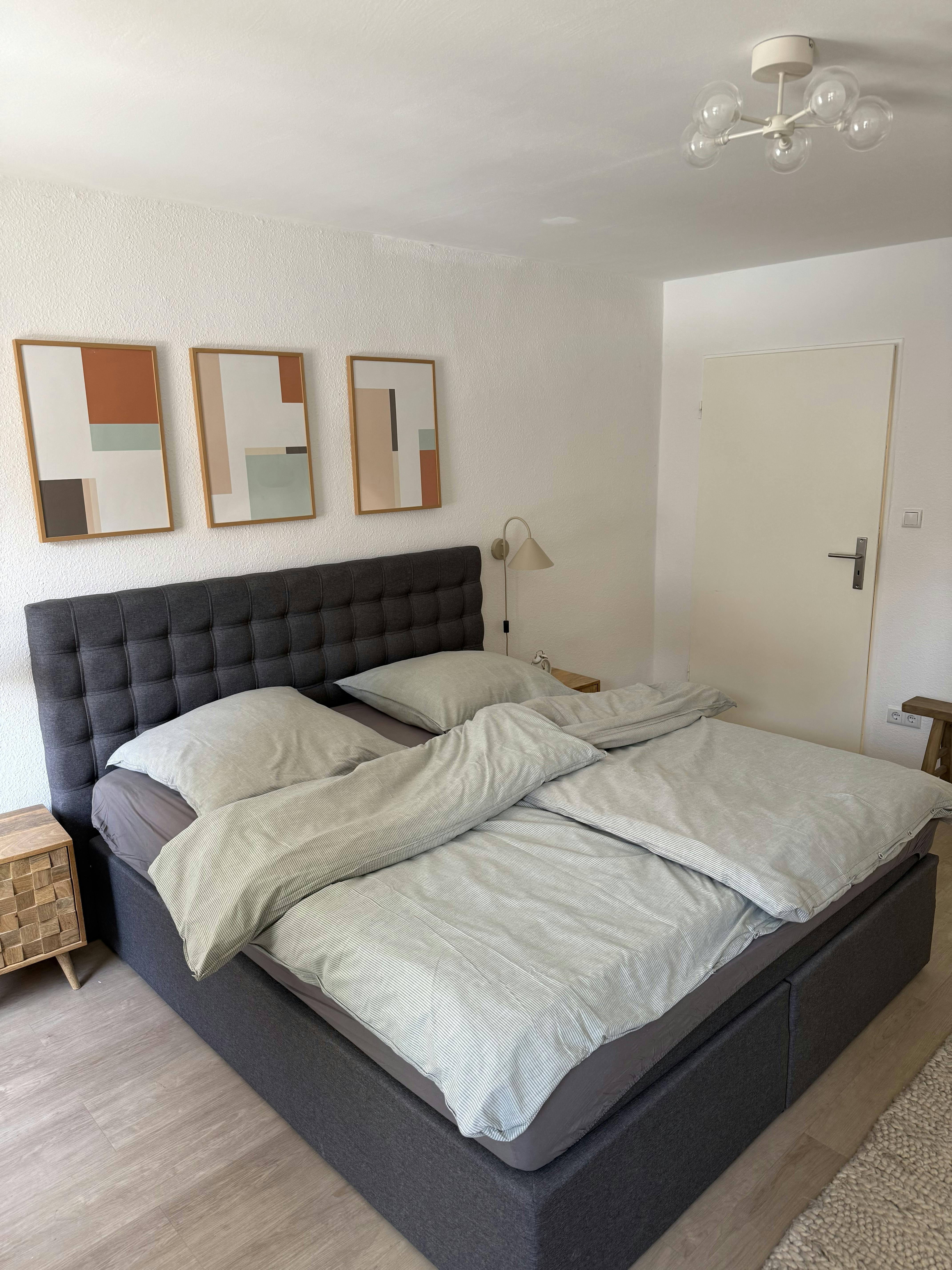 The apartment is fully furnished and offers a living area of approximately 80 sqm, distributed across four rooms: two bedrooms, a kitchen, a bathroom, and a dining room with a sofa bed. It is ideal for two people and features an upscale interior that creates a stylish and comfortable atmosphere. In the entrance area, there is a small built-in closet with storage space for essential household appliances and the washing machine. From the entrance area, you can access the dining room, bathroom, and kitchen. One of the two spacious bedrooms is equipped with a large, comfortable box spring bed (180...