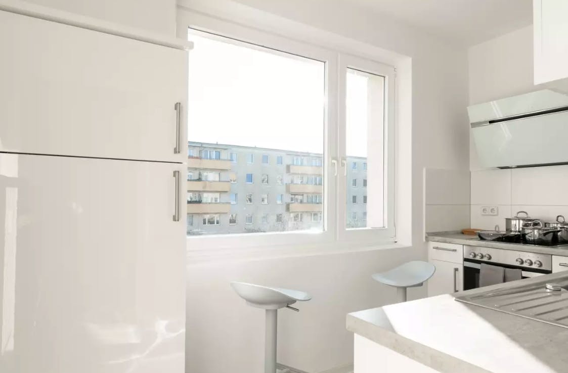 We created a student-friendly living space by selecting materials that transform the apartment into peaceful environment with bright colors: a “feel good” vibe. The apartment has a brand new white lacquered kitchen, and all you need to cook both gastronomic and on-the-go meals. It has Limoges dishes, fine glasses, good cutlery and sharp cooking knives. Each room offers a single bed and (a) roomy closet(s). Laundry is a snap with a all-in-one washer-dryer. Getting downtown is easy with many public transport connections, and the apartment is only a ten- minute walk from the Adlershof S-Bahn station. But if you are in...