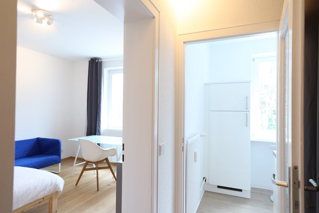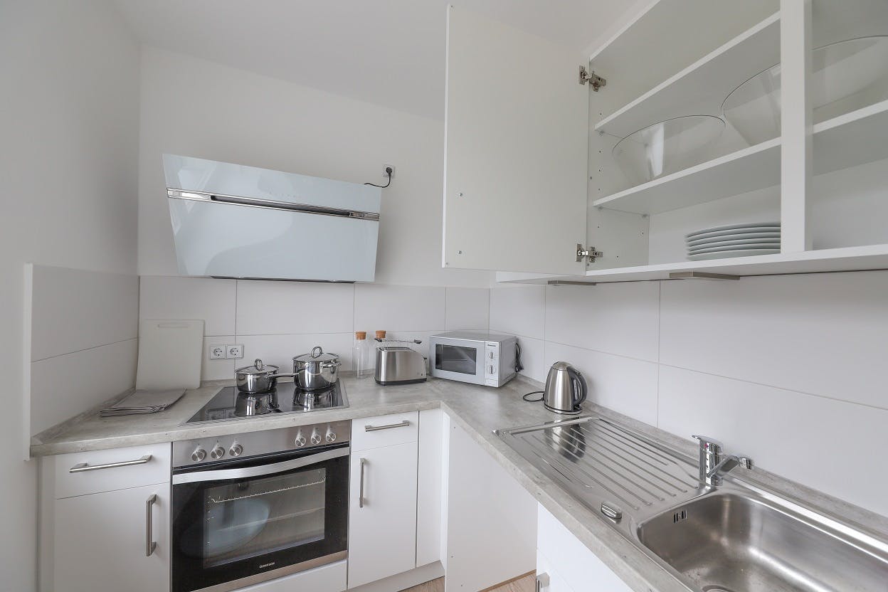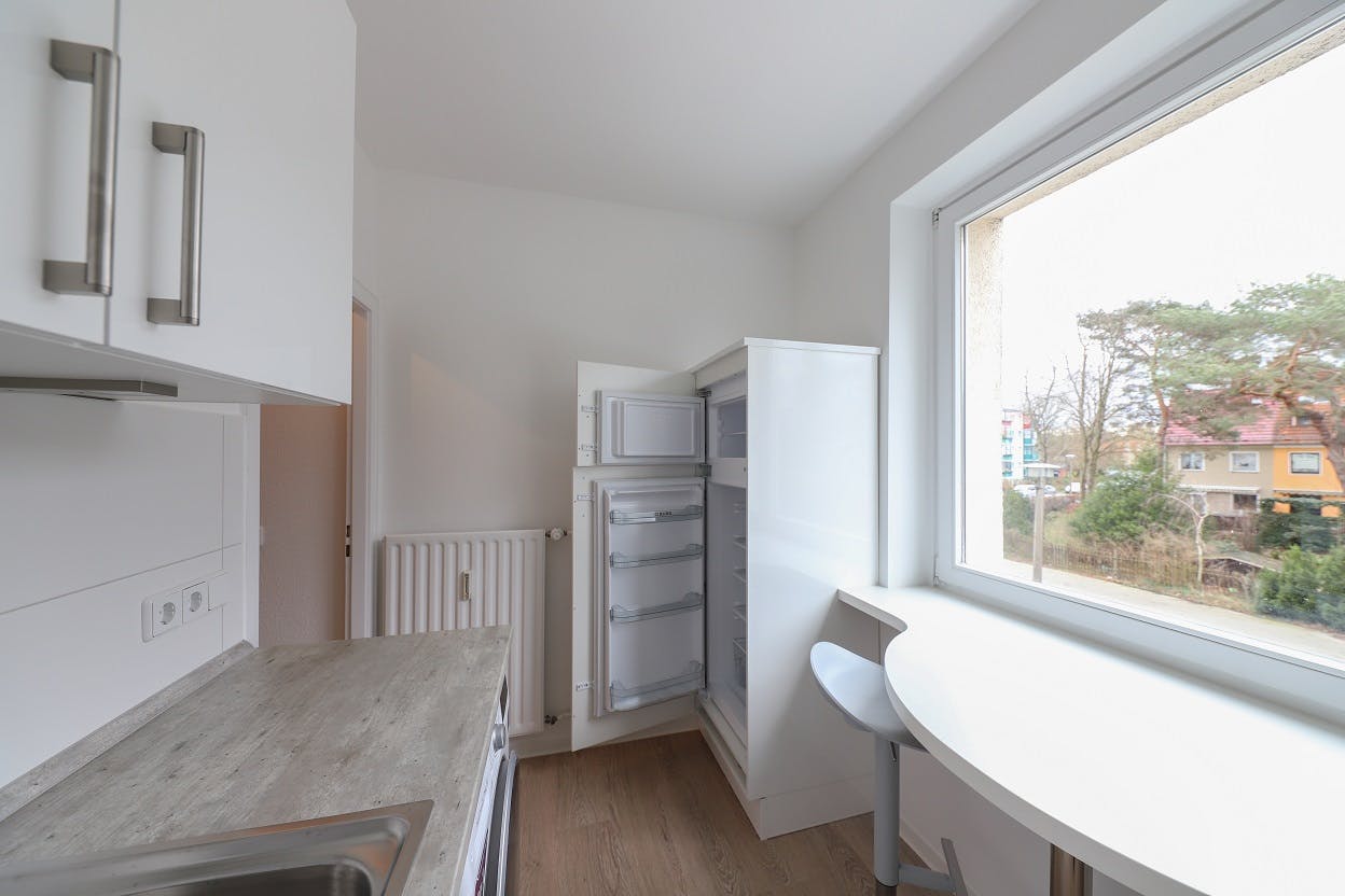 Cozy room for rent in a minimalist apartment with 4 bedrooms in Treptow-Köpenick A minimalist shared apartment, and in a quiet, green part of the city. It offers a neutral white color scheme throughout, plus a modern kitchen with all the basics. In this laid-back area, you’ll find the Rodelberg forest behind you, and a nice collection of local shops just a few minutes away. Important: There is a balcony in this apartment, but it is only accessible through bedroom 3. There is also only 1 bathroom in this apartment. Before moving in, tenants must provide proof of valid personal liability insurance...