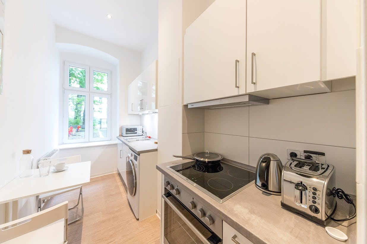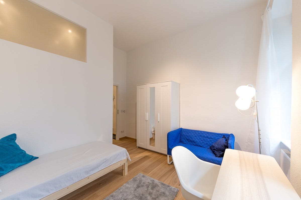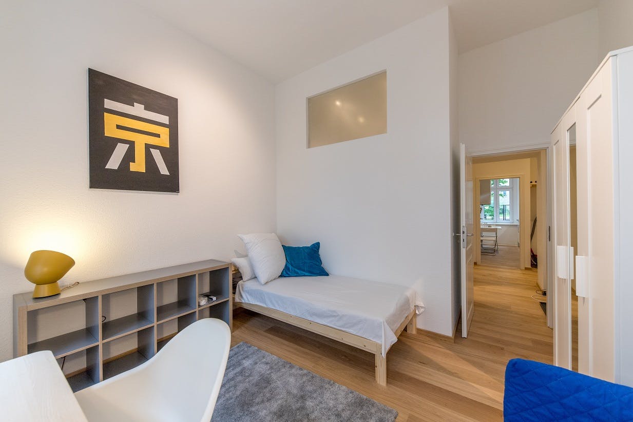 Charming room with single bed for rent in Prenzlauer Berg The stylish space to share Because who said shared homes have to be drab? Will I like it here? Depends. Are you looking for a bit of style in a shared home? Then check out 1 of these pretty rooms. Really? Tell me more... You'll feel fashionable in this fabulous flat. With trendy furnishings throughout, a washer and dryer for quick laundry days, and lovely wood floors to admire, this is as chic as shared homes get. We think this is an ideal spot for an on-the-go professional or student looking for some flair in a flatshare. Your top 3...