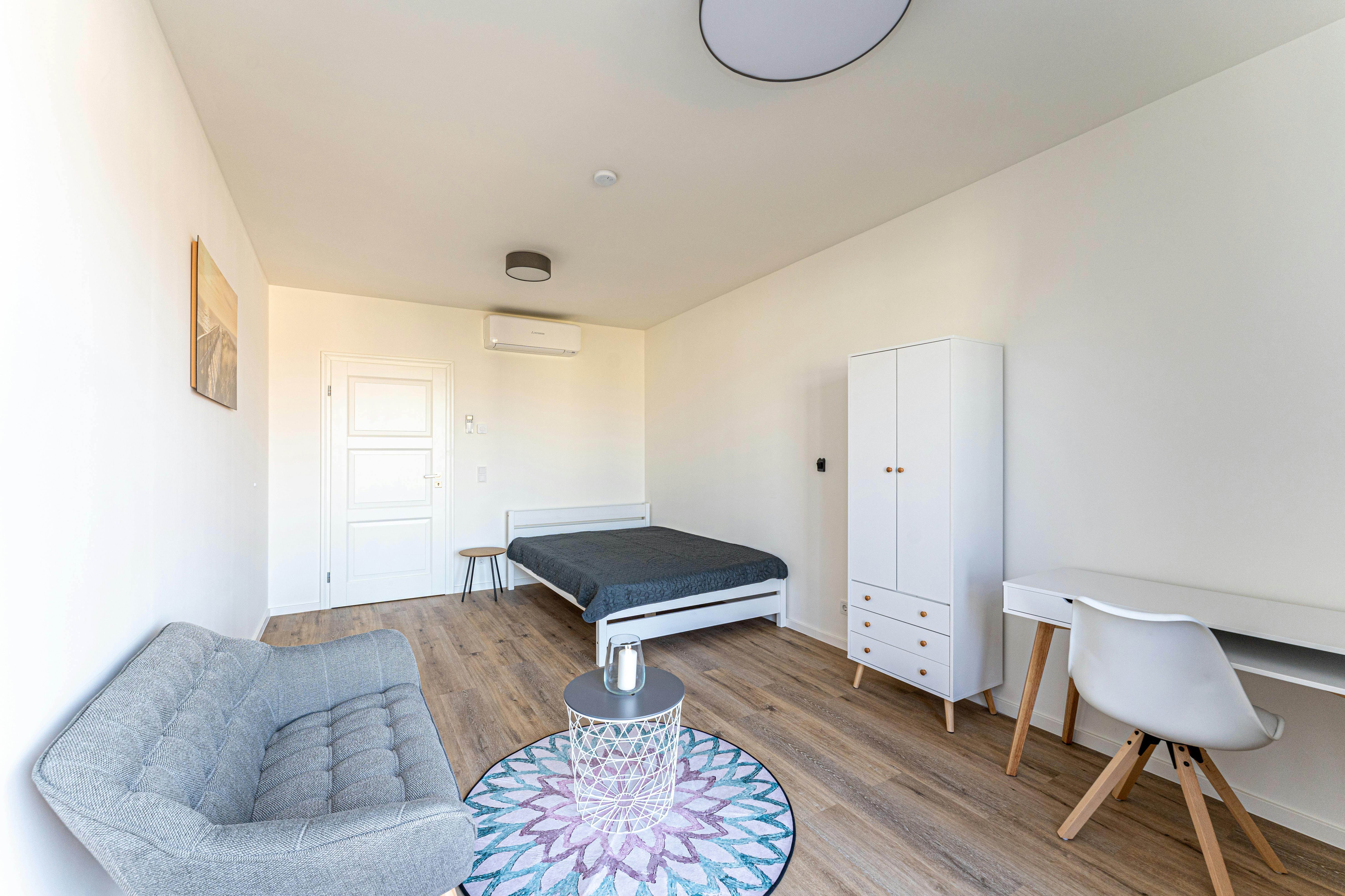 Enjoy epic feeling of living at the rooftop!! This brand new one room apartment located at the rooftop has just been completed. It is brand new to our portfolio! The accommodation furnished and it has a balcony with a awesome view. The extras of very strong internet, electricity, heating and water consumption are included in the monthly rent - no hidden or additional costs. • final Inspection fee paid at Move out of 150EURs Welcome to the heart of the city! The apartment is in a great location and offers you everything you need for a great stay...