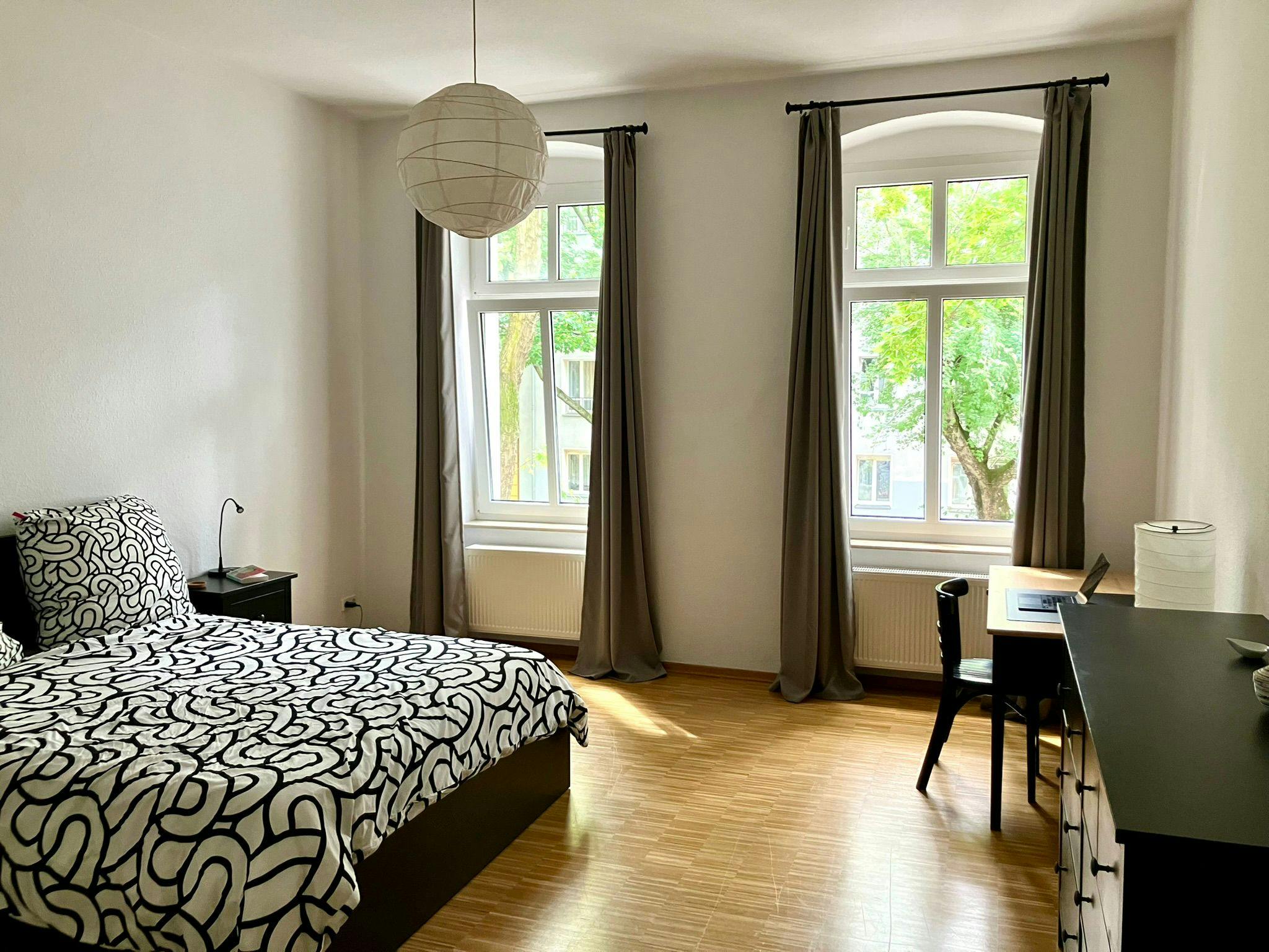 Lovely two bedroom apartment with terrace located in a charming building. The spacious living and dining area is perfectly combined with the modern open plan kitchen. There is a huge Smart TV, as well as high speed internet. One bedroom has direct access to the terrace facing the quiet courtyard, while the second but larger one faces the quiet side street towards Arkonaplatz. The master bathroom has bath tub. The small extra WC in the hallway also provide a washing machine as well a dryer. The best of Prenzlauer Berg and north Mitte at your doorstep, only a 5 minute walk...