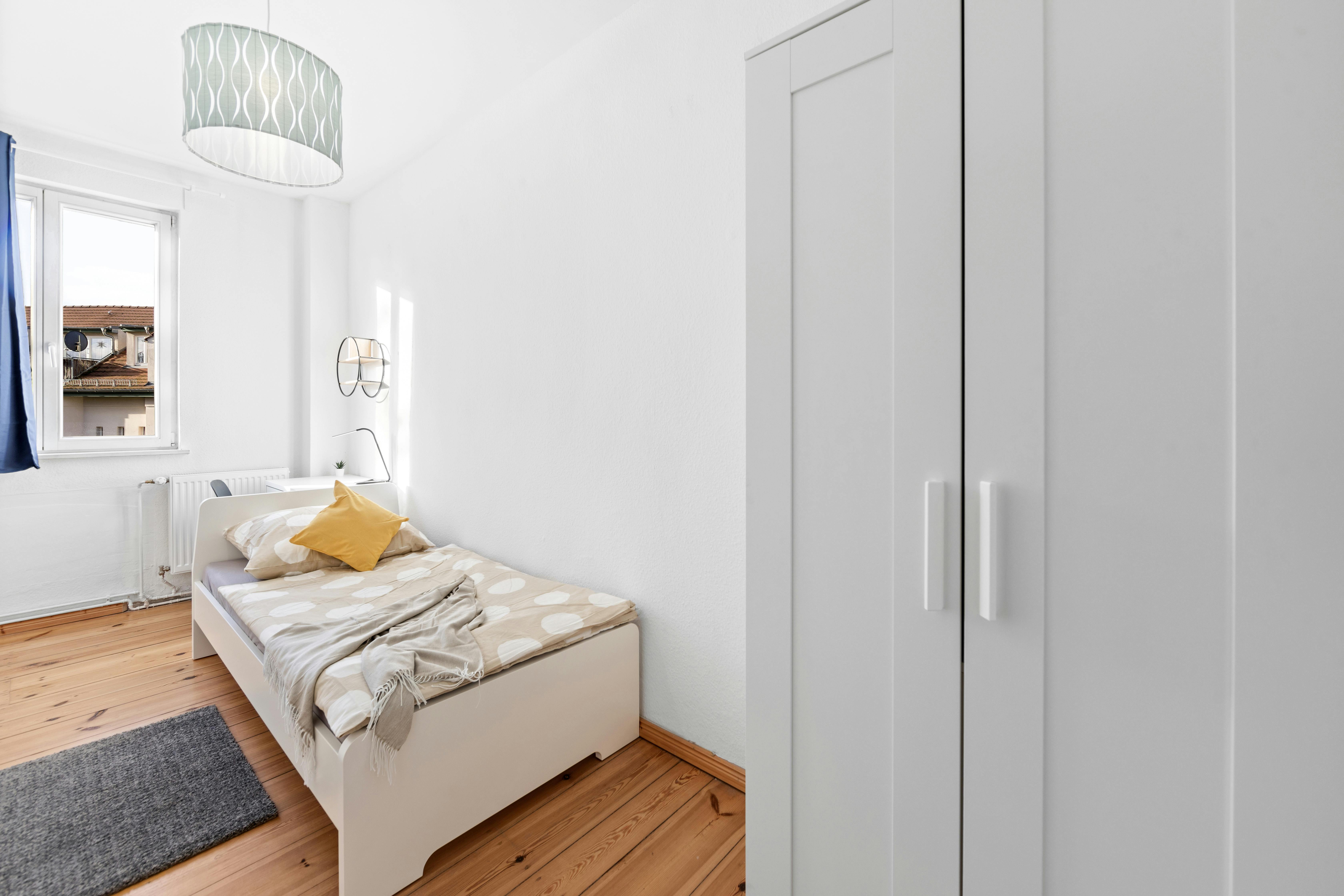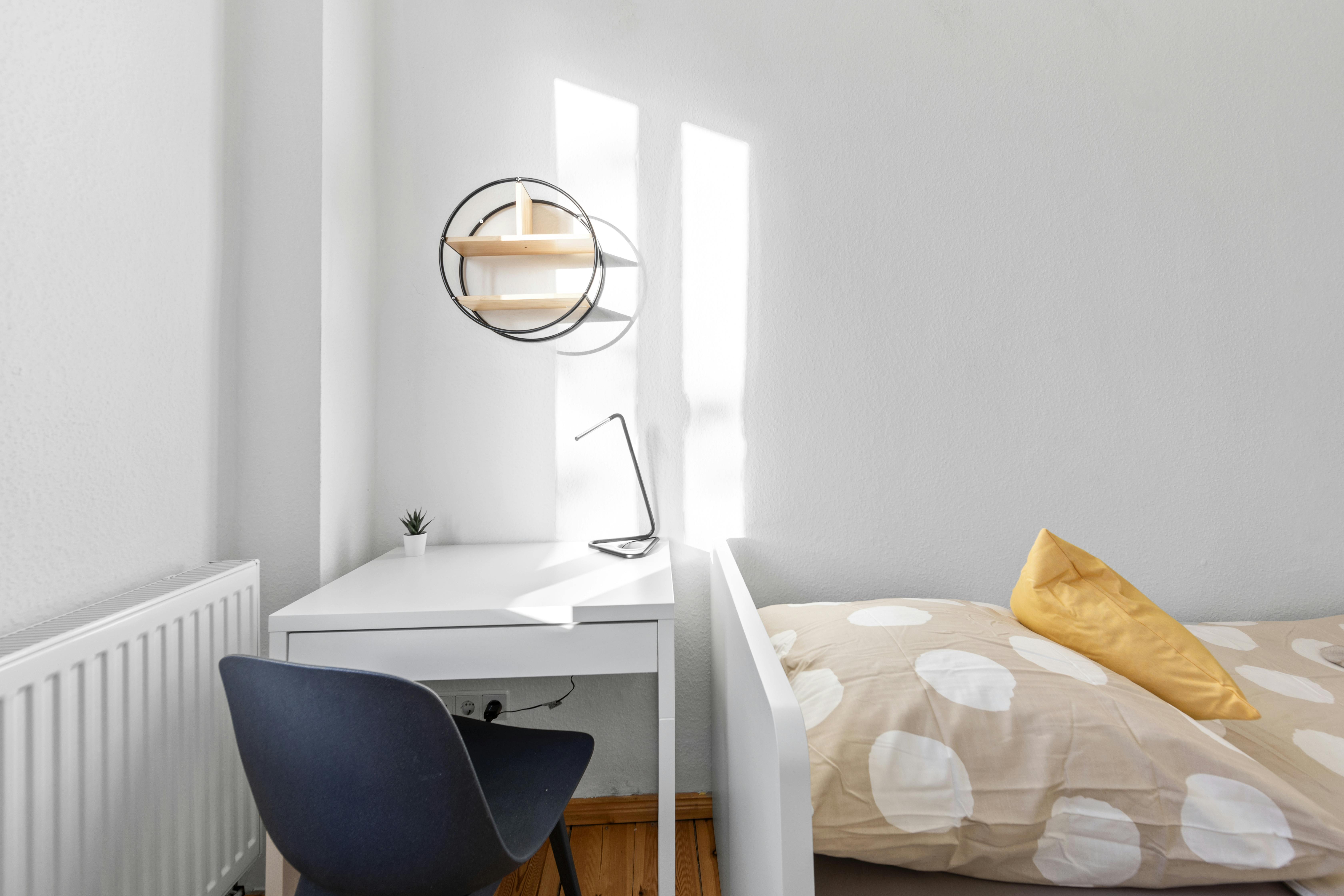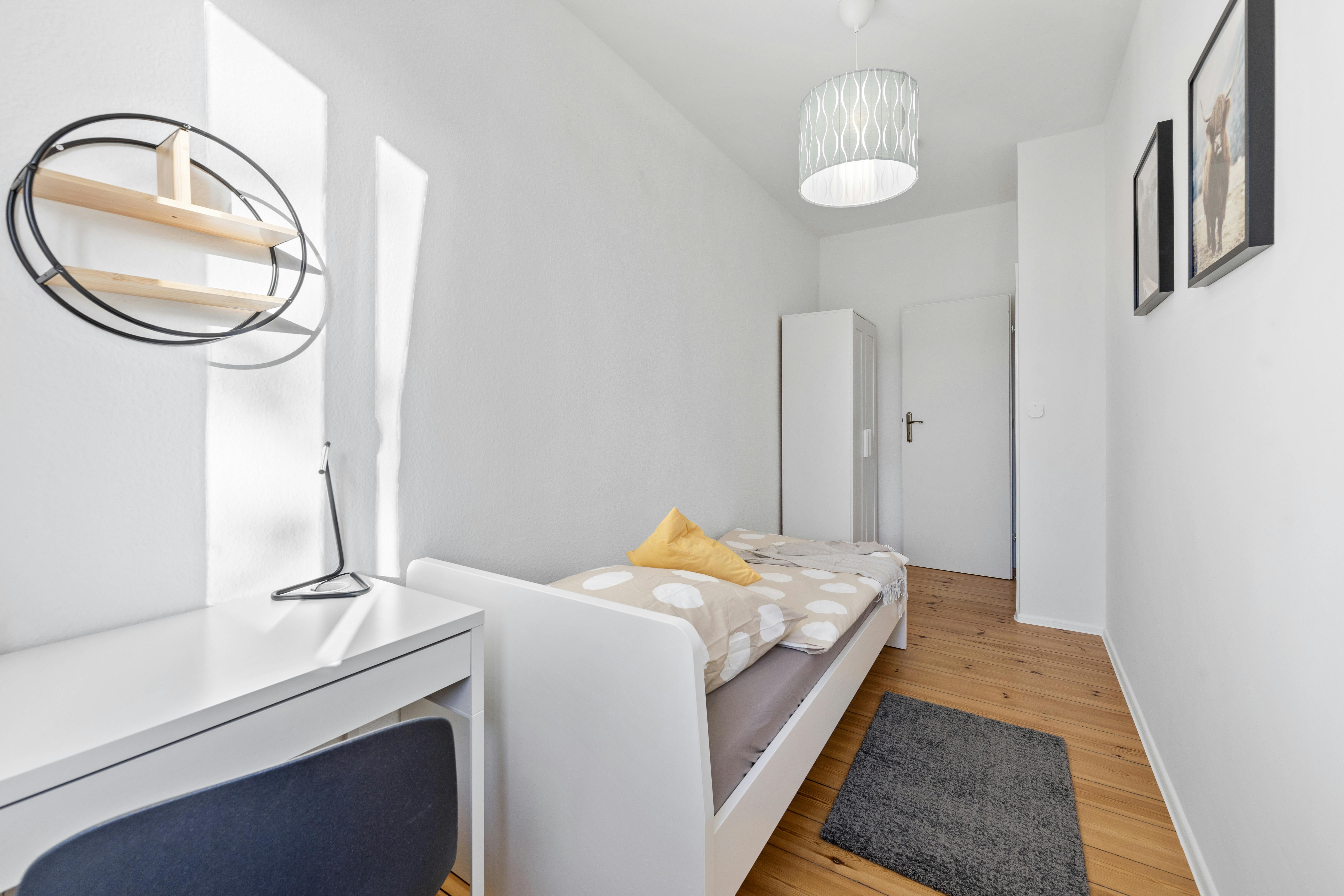 Room 3 Hi Guys, this is a fully furnished room in a shared flat. The room has a comfortable bed, a desk with chair and a wardrobe for your clothes. Also the common areas are fully equipped with washing machine, cooking equipment and all you need for your daily living. Anmeldung/Registration is possible. The monthly rent price is all inclusive (rent + heating + water + Internet + GEZ/german TV license fee). For the move in dates we have only the 1st or the 16th of each month a tenant can move in. In specific cases we have a flexible move in date,...