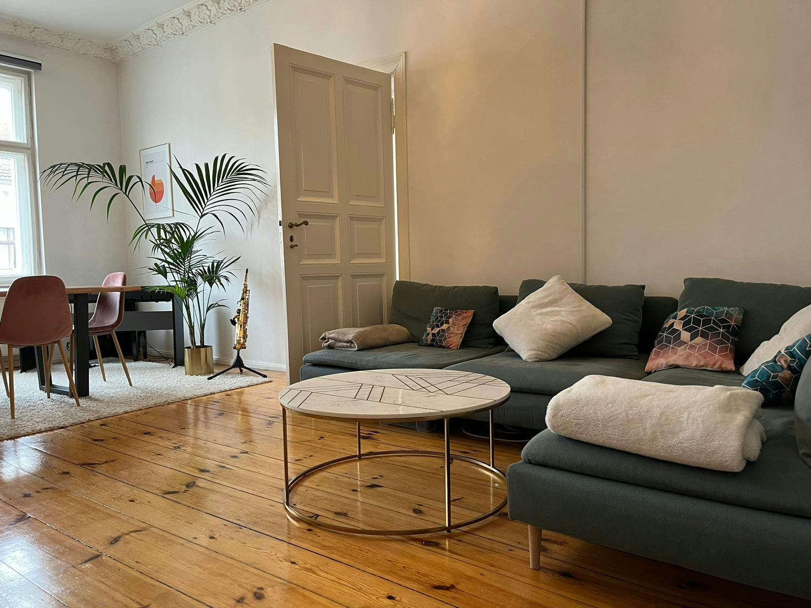 Our flat has everything you need for a comfortable and convenient stay: - Amazing location: Located in an antique building with high ceilings in the Bergmannkiez, one of Berlins most desired areas with lots of cafes and restaurants, close to the beautiful Tempelhofer Feld - Fully equipped: Completely stocked kitchen (high quality portafilter coffee machine, hot air fryer, soda stream, tableware, ...), linen (bed blankets, towels, ...) and other utilities (cleaning products, hair dryer, umbrella, ...) - Ready to work: Outfitted with a well-equipped workspace incl. a curved monitor, fast fiberglass internet, height adjustable desk and ergonomic chair - Great amenities: Setup with all-room...