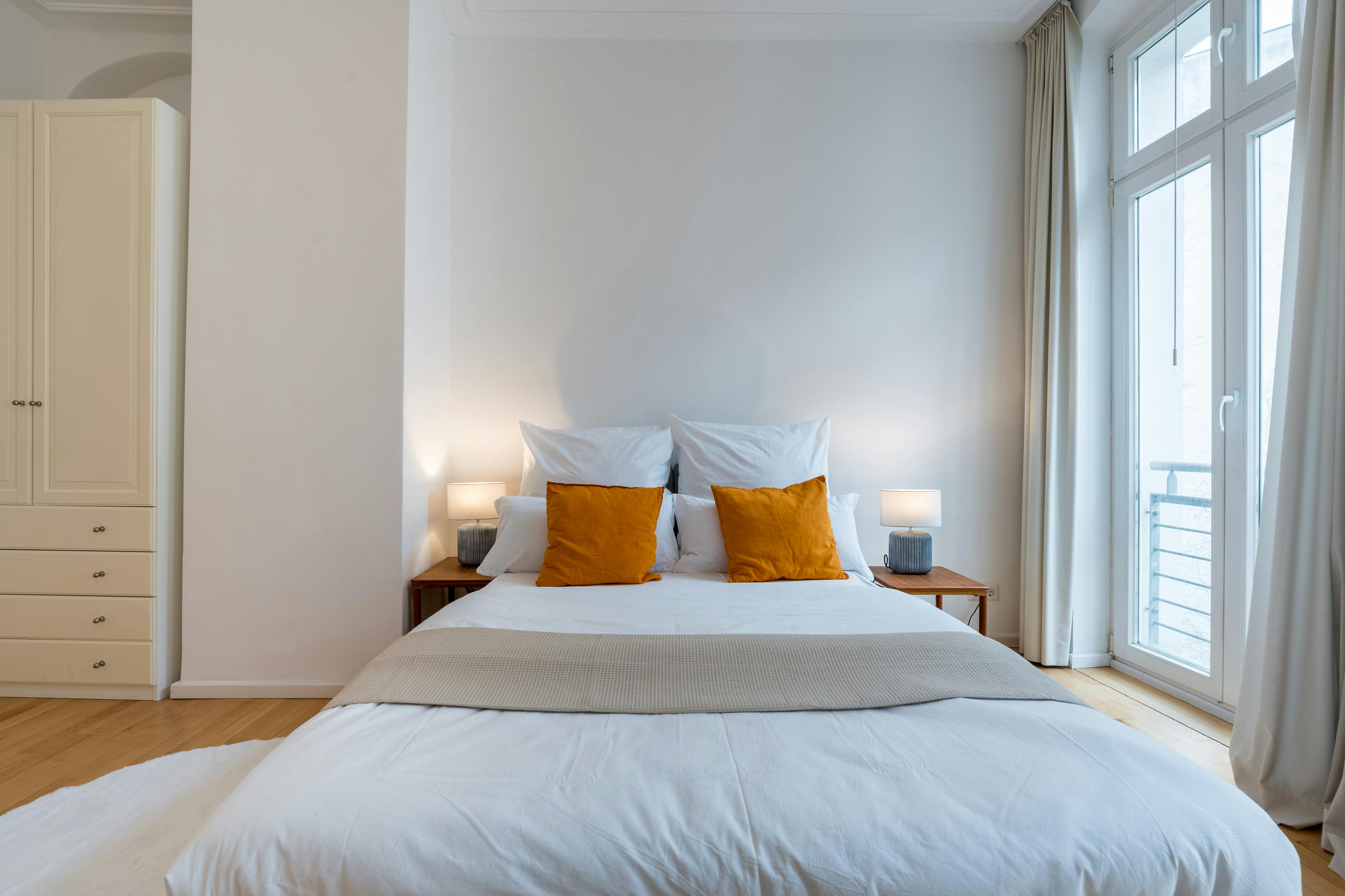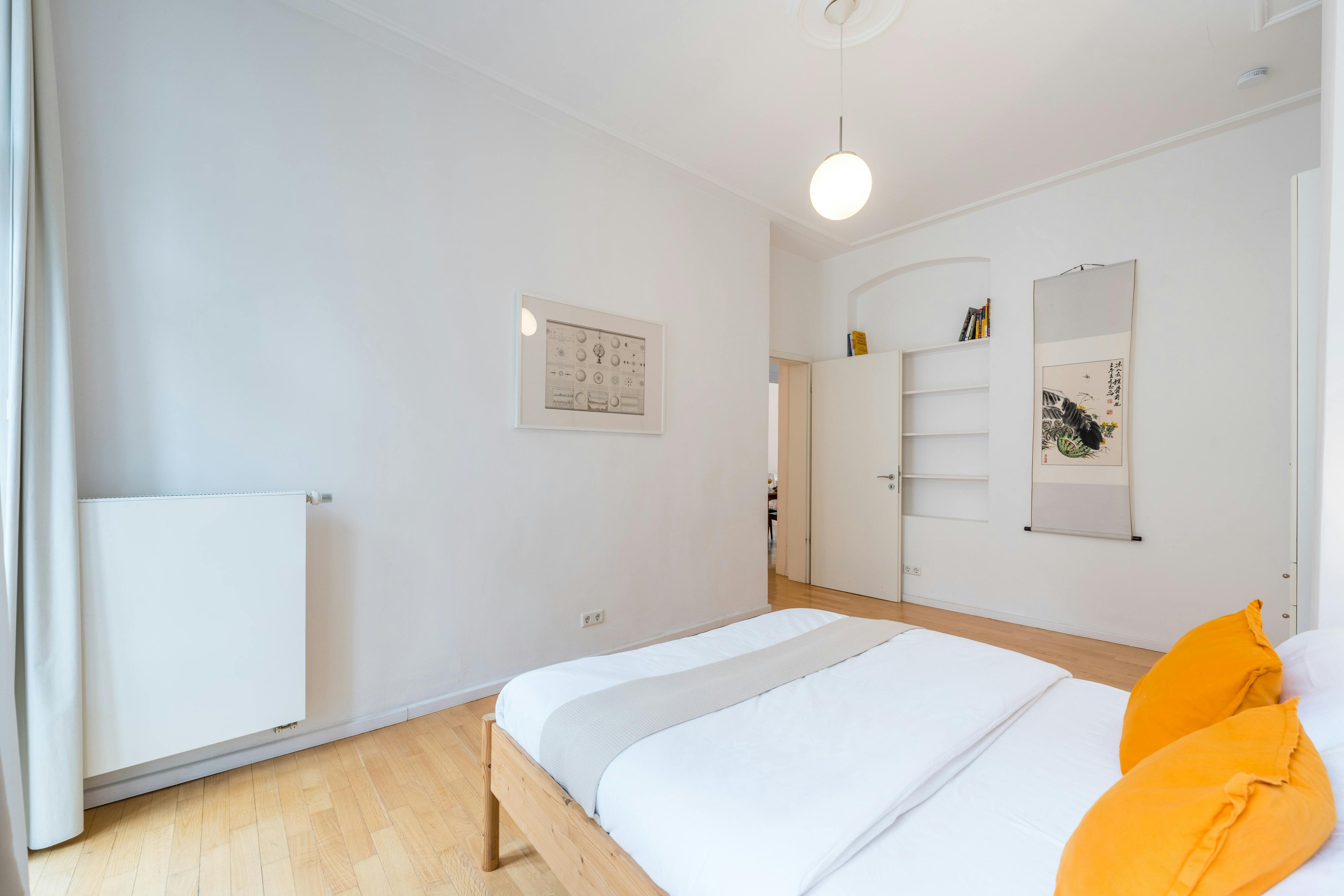 ?Beautiful 2 Bedroom Apartment in Prime Location in BERLIN MITTE ? The apartment is located on the 2nd floor of a traditionally beautiful “Altbau”. The furnished apartment radiates a homely warmth and you immediately feel comfortable when entering the apartment. You enter the apartment in the long hallway from which the rooms lead off. There is a sofa and an armchair and a large smart TV in the living room. You will also find a dining table that fits four people. There is a cozy double bed and a wardrobe in the bed room. The third room can be used as a...
