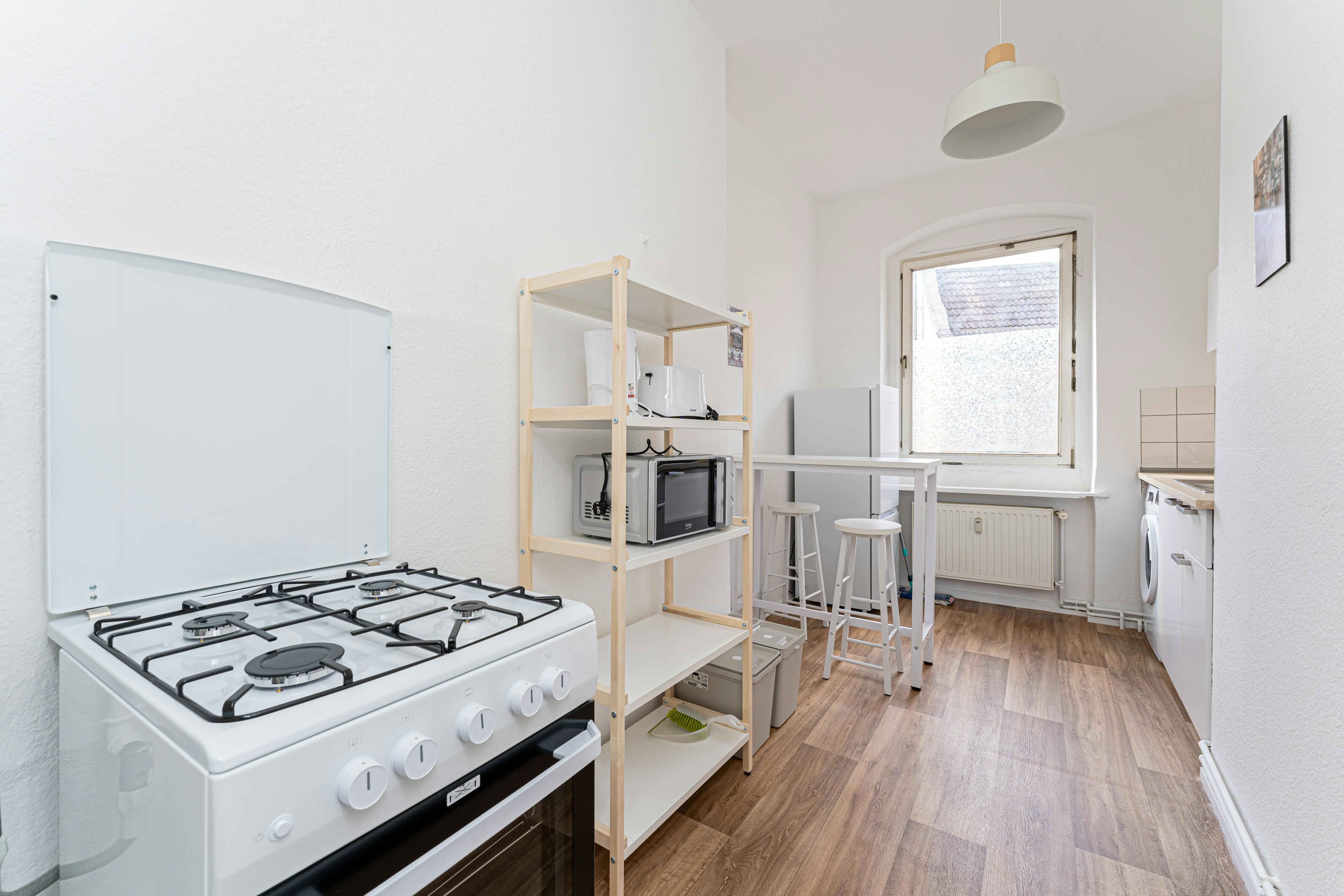 Welcome to the heart of the city! The apartment is in a great location and offers you everything you need for a great stay in this city! The location of the property offers everything your heart desires. Quiet living, work and leisure come together here. Everything you need for daily life is in the immediate vicinity. The apartment offers you many advantages for a pleasant stay. See for yourself. Here you will feel like in your second home. This marvelous 2-room apartment offers a spacious 54 qm with high ceiling as well as wodden flooring and a sunny and enhancing balcony....