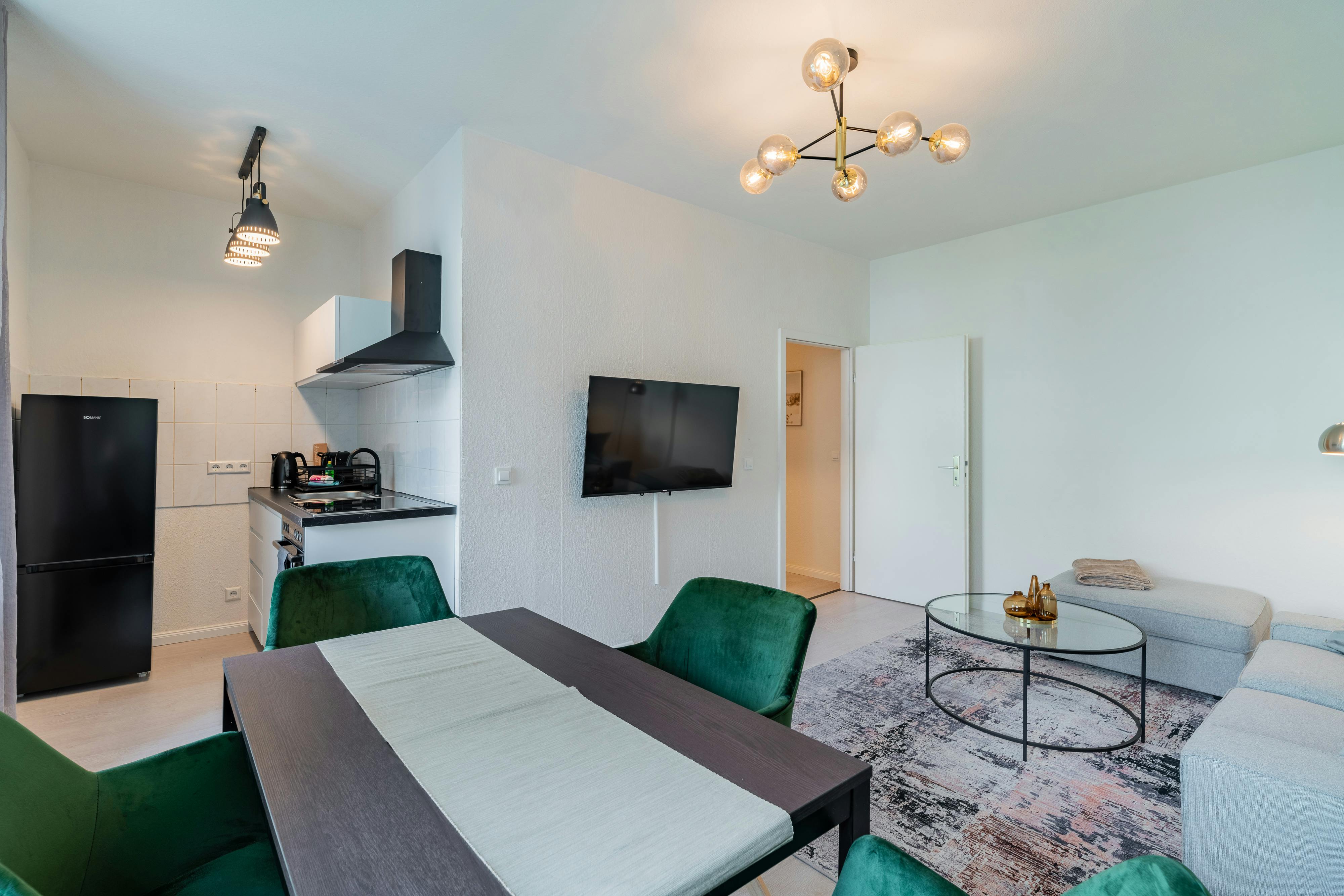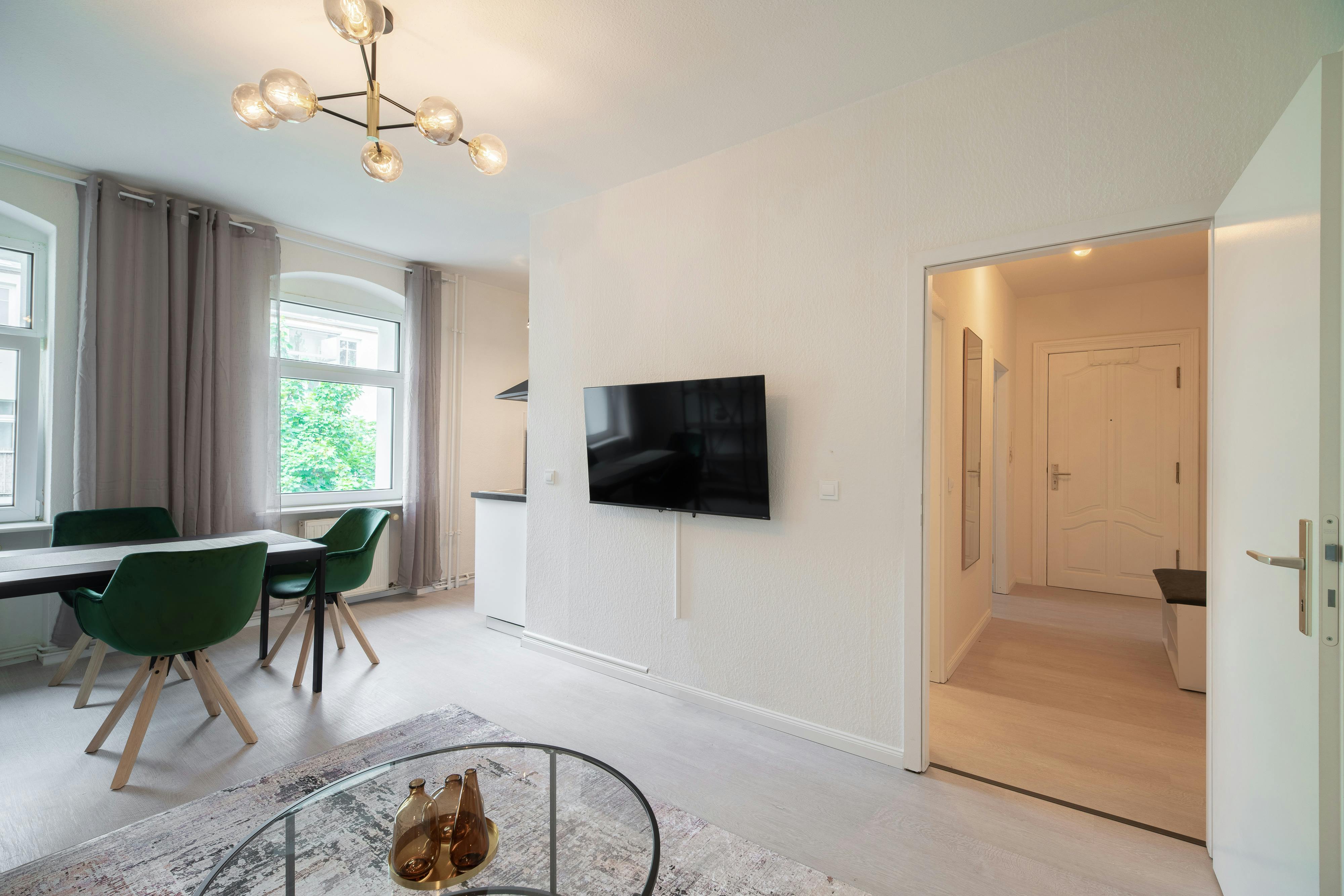 Located in the middle of the trendy neighborhood Friedrichshain, the fully equipped two-room apartment offers you everything you could wish for your stay: The apartment is located in the trendiest district of the city. Discover the city's hippest bars, clubs and restaurants. Or take a walk in Volkspark Friedrichshain. At home you will have your peace, because the apartment is located in the rear building. We have the same apartment located on the third and 4th floor. The layout is exactly the same, and the design might be different in each apartment. The apartment is modern furnished. The large living...