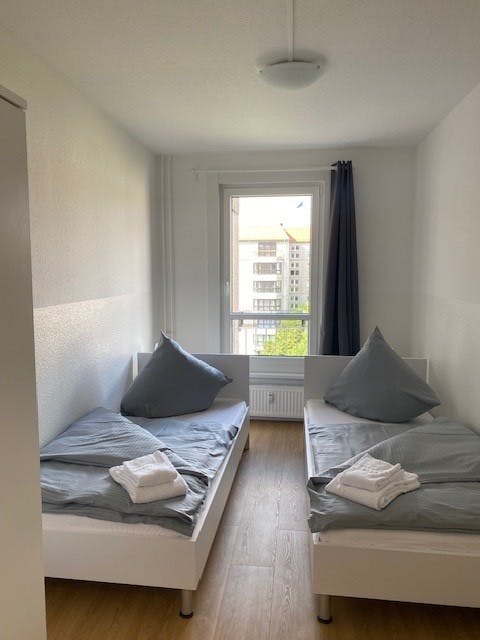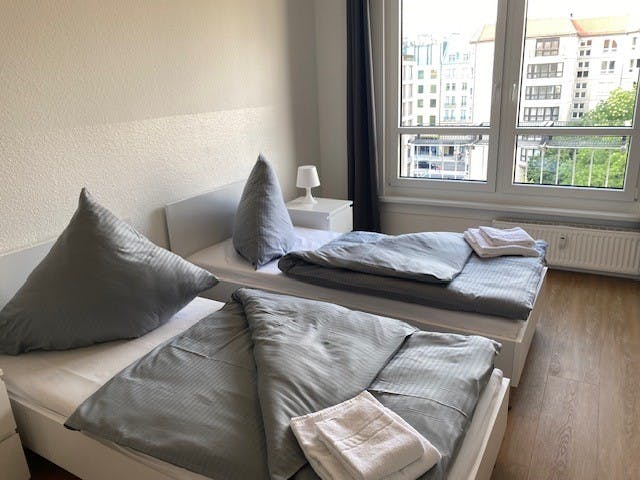 Dieses helle und geräumige 3 - Zimmer Apartment mitten in Berlin ist perfekt für 4 Personen. Die Schlafzimmer habe je zwei Einzelbetten und die Küche ist komplett ausgestattet mit allem was Sie zum Kochen benötigen. Im Bad befindet sich eine Dusche und eine Waschmaschine, die kostenfrei genutzt werden kann. Das Wohnzimmer ist geräumig und mit Couch und einem TV Flatscreen ausgestattet. Nebenkosten sowie Internet sind bereits im Preis inkludiert. Sie erhalten außerdem eine Erstausstattung an Bettwäsche und Handtüchern. Die Kaution ist nach der Reservierung direkt auf unser Bankkonto zu überweisen. Genießen Sie die Hauptstadt in diesem schönem Apartment! ---------------------------------------------------------------------------------------------------------------- Bitte beachten Sie, dass...