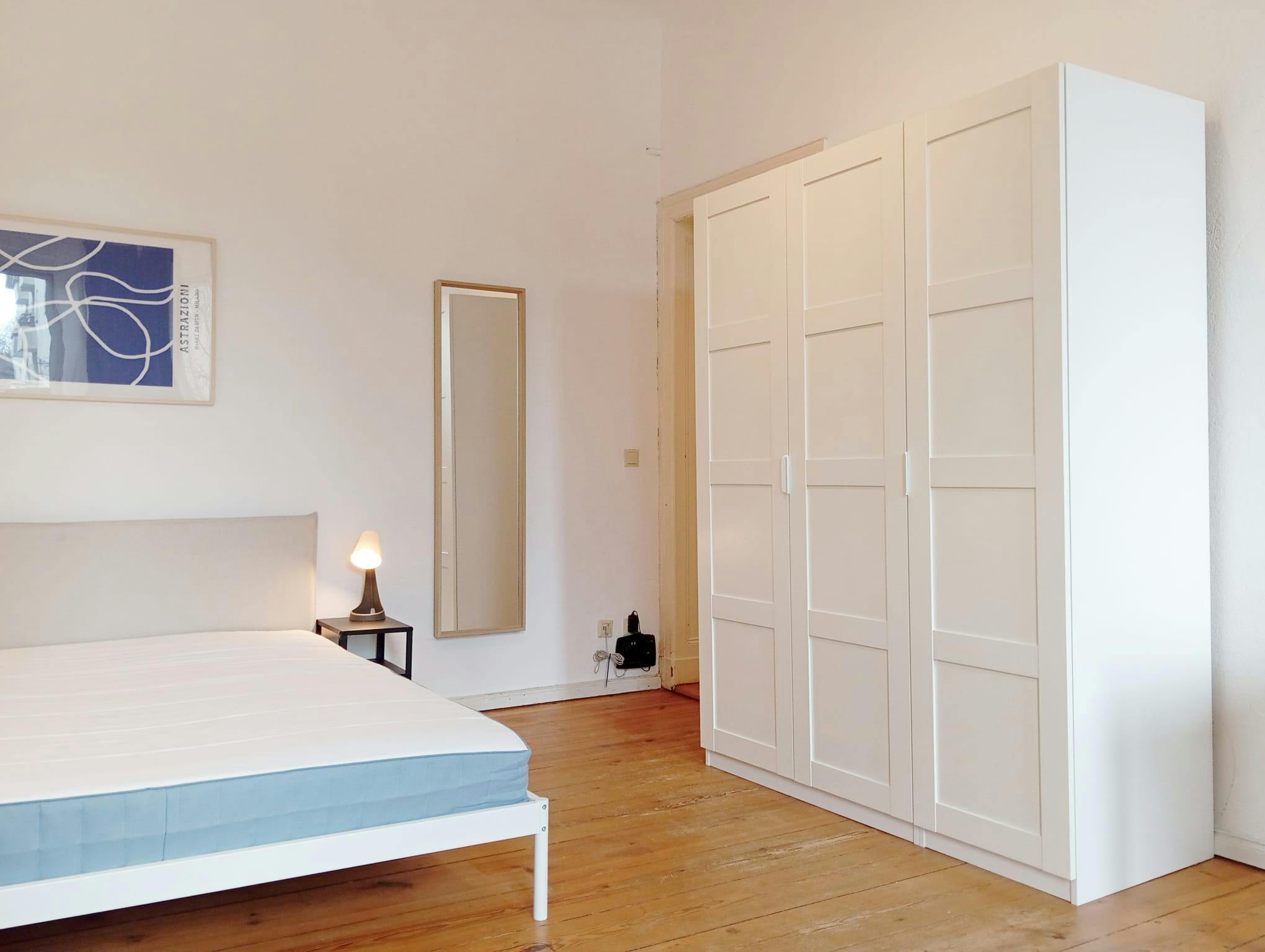 1 Room • 2nd Floor • Balcony • Neukölln • Leinestrasse Minimum stay: 6 months • Maximum stay: 12 months • Anmeldung is provided Suitable for: Single / Couple / 1 - 2 People Room Double bed 160X200 2 night tables 2 reading lamps Wardrobe Sofa bed 140x200 Coffee table Standing lamp Carpet Desk Chair Mirror Curtains Blackout curtains Access to balcony Kitchen Fridge (Small) Oven Electric stove Hood Microwave Washing machine Dining table Chairs Curtains Bathroom Shower Cabinet Towel rack Mirror Hall Mirror Hangers Bank Shelf Chest of drawers Amenities WiFi Wooden floor Central heating Clothes drying rack Clothes hangers Vacuum cleaner Cleaning tools Plates/glasses/cutlery Pots and pans Cooking equipment Public transport 3 minutes walk to Leinestrasse U-bahn station (U8) 1 station away from Hermannstrasse S+U Bahn station (U8/S9/S41/S42/S45/S46/S47) Supermarkets 3 minutes walk to ALDI 7 minutes walk to EDEKA 8 minutes walk to LIDL 12 minutes walk to REWE Requirements Documents needed: Copy of passport Proof of income/financial support Studies...