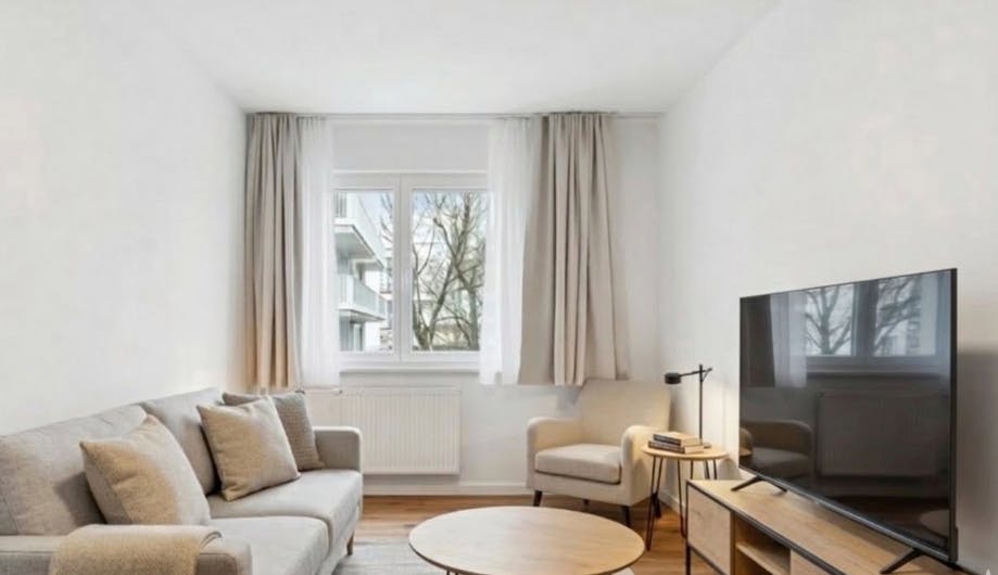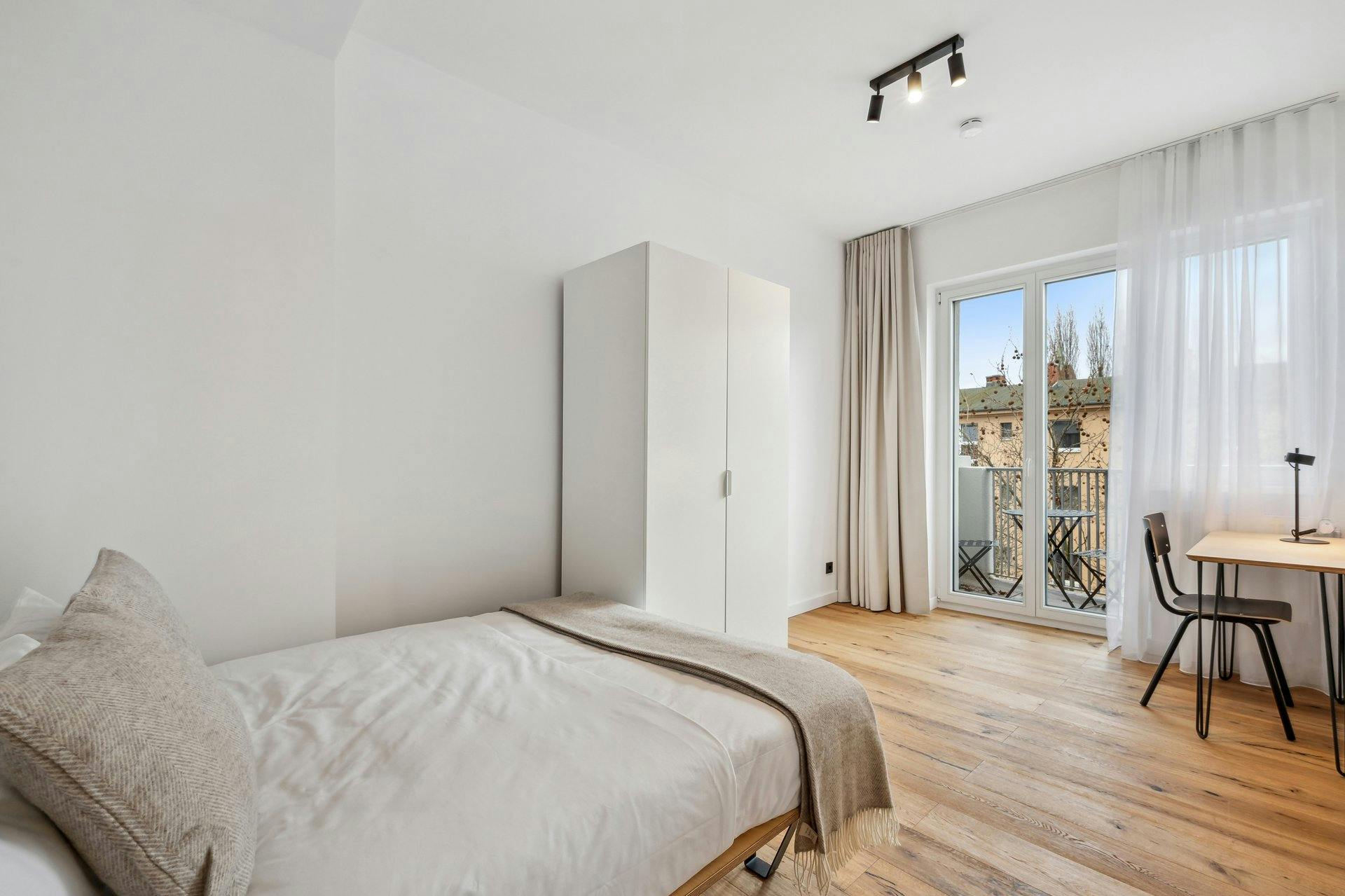 ROOM Our rooms come fully furnished with everything you need for a comfortable daily life. In the bedroom area, you will find a bed with a nightstand and lamp, as well as a large wardrobe. A premium mattress with a set of bedsheets, pillows, and duvets is also always included. To comfortably work or study from home, there is a table with a lamp and chair. You wont need anything additional to settle in, and can arrive just your luggage at hand. APARTMENT This comfortable flat comes fully furnished and equipped with everything you need. The cozy living room features a modern TV,...