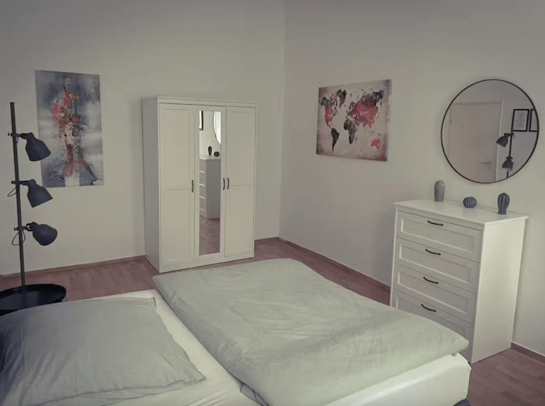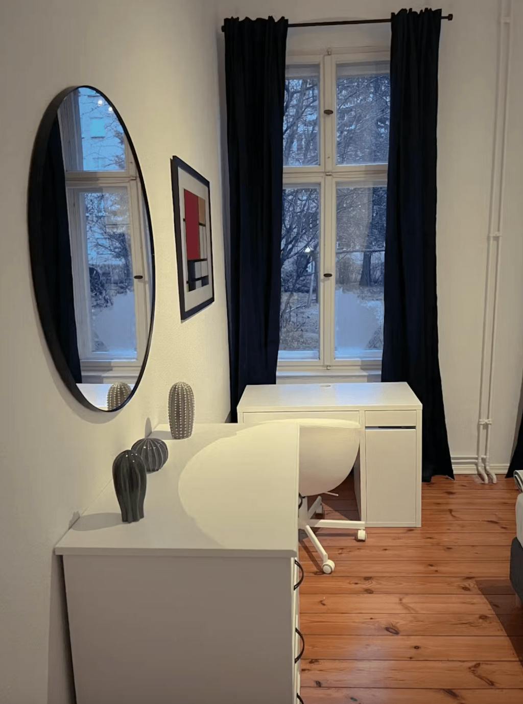 4 bedroom apartment in Pankow district THE APARTMENT: There are 4 bedrooms here and each bedroom is equipped with a king-sized box-spring bed with fine bedding as well as two bedside tables, a chest of drawers, a large mirror, a working desk with a corresponding chair, a floor lamp and a large closet. You will have a spacious kitchen with a seating corner. Moreover, the kitchen is fully fitted with cooking equipment and utensils. Furthermore, you can enjoy two bathrooms, one guest bathroom and one big bathroom with a bathtub shower and a washing machine. LOCATION: The apartment is located in a very beautiful...