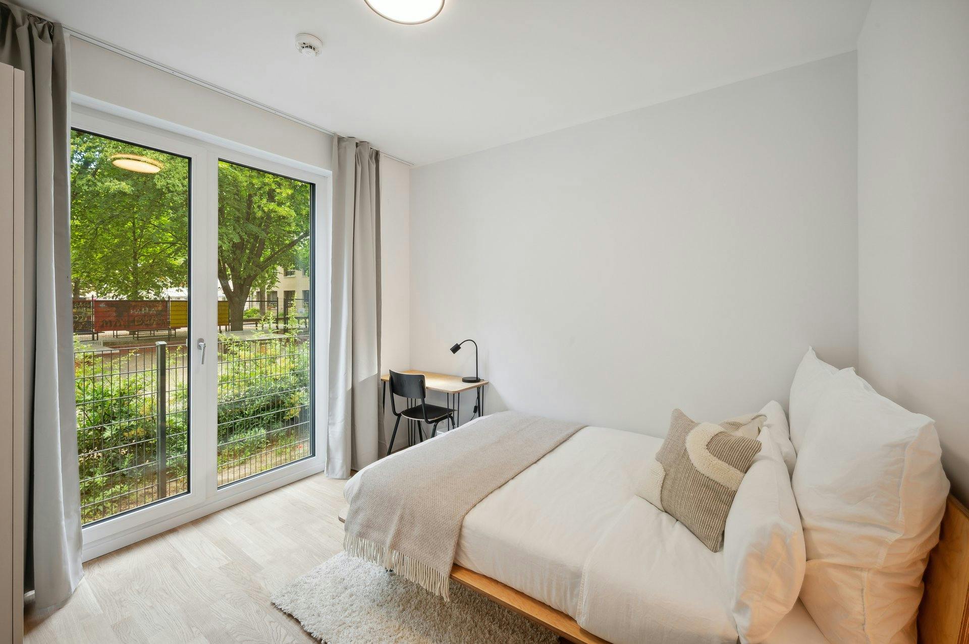 ROOM Our rooms come fully furnished with everything you need for a comfortable daily life. In the bedroom area, you will find a bed with a nightstand and lamp, as well as a large wardrobe. A premium mattress with a set of bedsheets, pillows, and duvets is also always included. To comfortably work or study from home, there is a table with a lamp and chair. You wont need anything additional to settle in, and can arrive just your luggage at hand. APARTMENT You will be the first to move into our newly constructed and renovated apartments with complete noise isolation and floor...