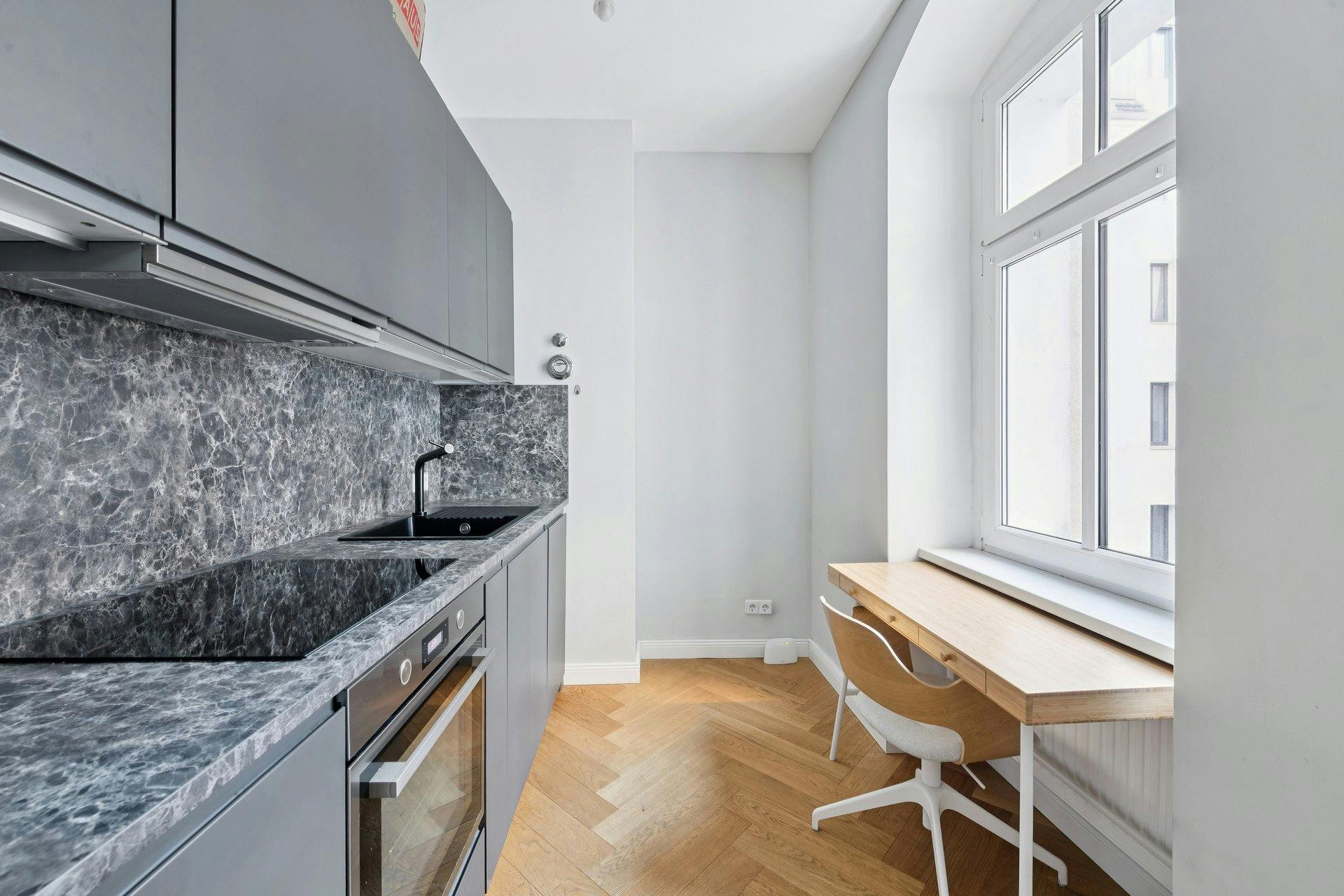 Experience the vibrant heart of modern city life in vibrant Friedrichhein Berlin, in this elegant apartment with a generous living space of 37square meters. Carefully designed, this apartment perfectly combines style and functionality. The apartment presents itself with a well-thought-out layout, consisting of one room: a welcoming hallway that gives a sense of harmony as soon as you enter, and a spacious bedroom. A special highlight is the new kitchen, equipped with a fully functional kitchen and a modern bathroom. Enjoy the luxury of a brand new, generous bed. A spacious wardrobe and high-definition 4K TV will meet all...