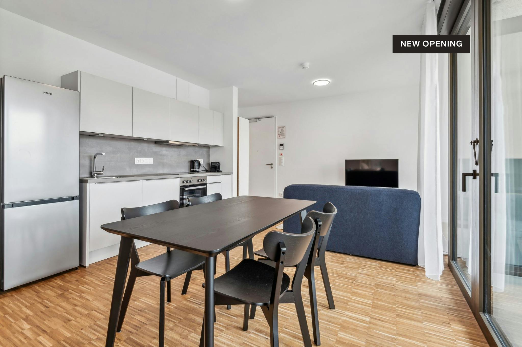 ROOM Our rooms come fully furnished with everything you need for a comfortable daily life. In the bedroom area, you’ll find a bed with a nightstand and lamp, as well as a wardrobe with plenty of storage for all your essentials. Your private bedroom also features a table with a lamp and chair, so you can comfortably work or study from home. You wont need anything additional to settle in, and can arrive with just your luggage at hand! APARTMENT You will be the first to move into our newly constructed apartments. Each flat has a fully equipped modern kitchen with everything from...