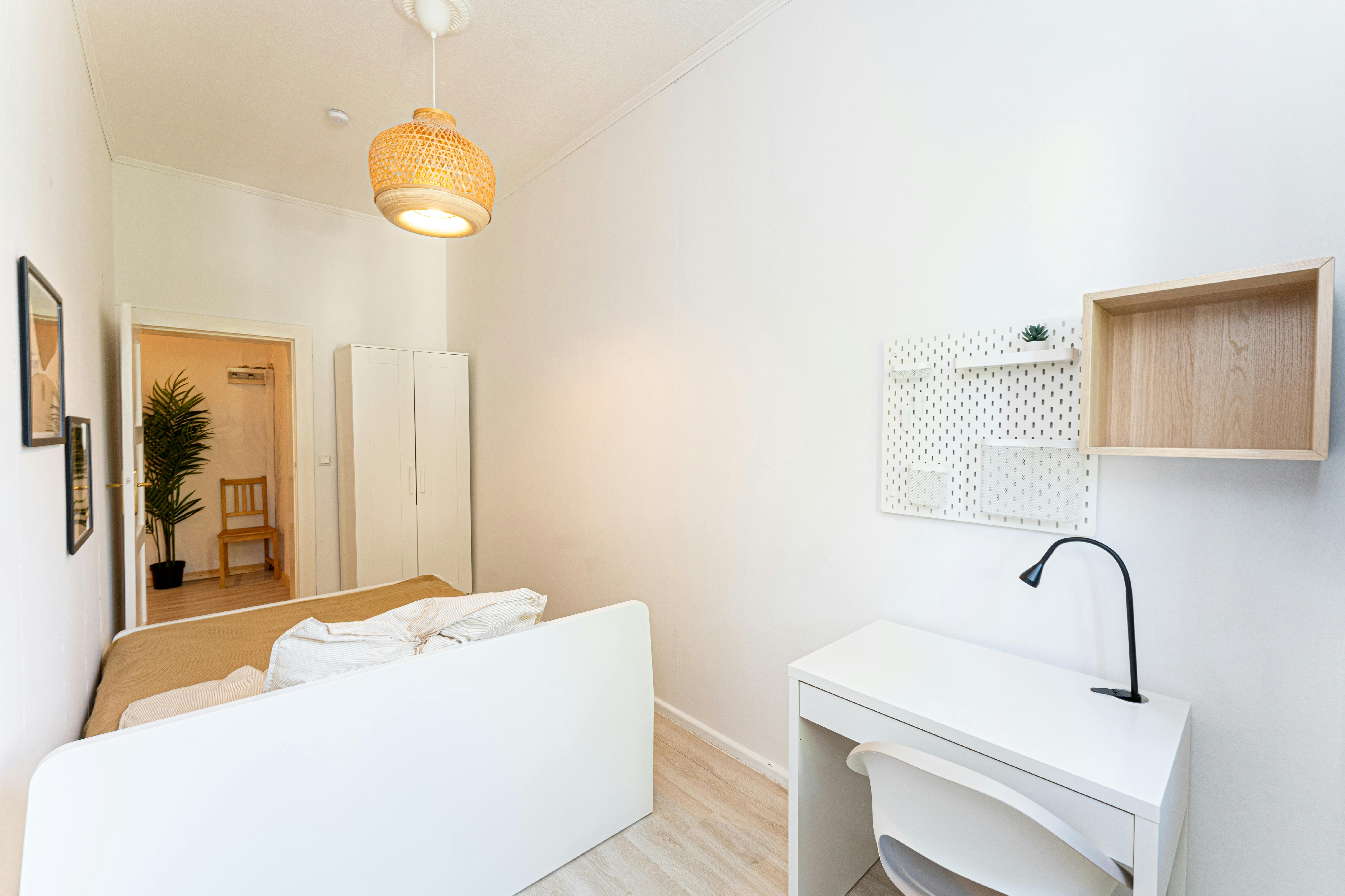 Room 5 Hi Guys, this is a fully furnished room in a shared flat. The room has a comfortable bed, a desk with chair and a wardrobe for your clothes. Also the common areas are fully equipped with washing machine, cooking equipment and all you need for your daily living. Anmeldung/Registration is possible. The monthly rent price is all inclusive (rent + heating + water + Internet + GEZ/german TV license fee). For the move in dates we have only the 1st or the 16th of each month a tenant can move in. In specific cases we have a flexible move in date, but...