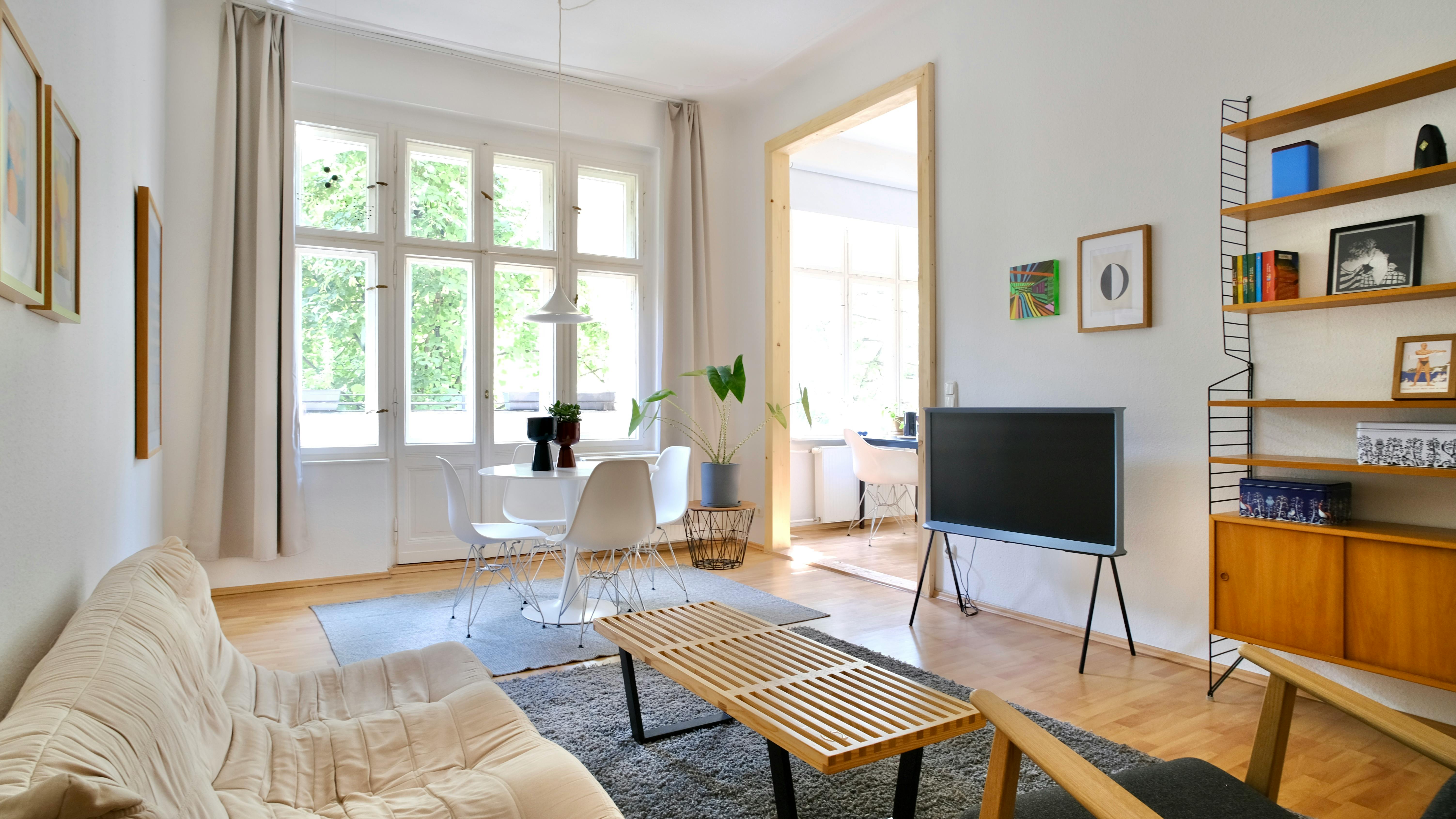 Welcome to this stylish 2-room apartment located on Finowstraße in the vibrant neighborhood of Friedrichshain. This fully furnished gem features a Scandinavian design, offering a cozy and modern atmosphere. The apartment boasts large windows that flood the space with natural light, and a spacious balcony perfect for enjoying the outdoors. Included in the rent are all utilities and high-speed internet, ensuring a hassle-free living experience. The area is teeming with charming coffee shops and a variety of restaurants, providing endless dining and entertainment options. Conveniently situated near public transportation, the apartment is just a short walk from the Samariterstraße U-Bahn station and...