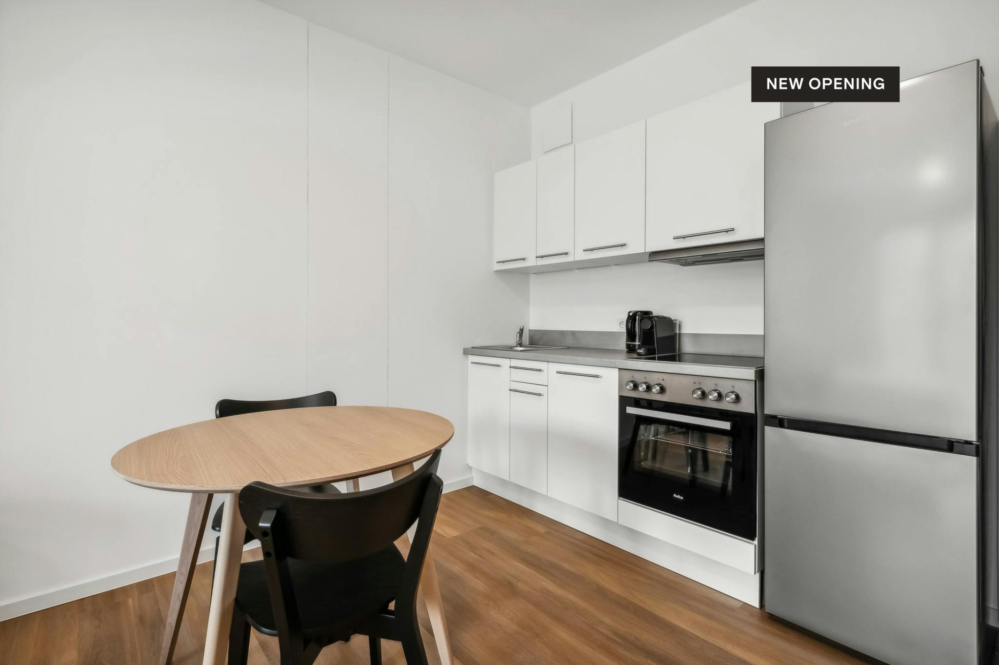 APARTMENT Your studio apartment offers all the privacy you need. In addition to your very own bedroom area, which features a comfortable bed and plenty of storage, your private studio also features a fully equipped modern kitchen and spacious bathroom. You wont need anything additional to settle in, and can arrive with just your luggage at hand! PROPERTY Located in the heart of the exciting Europacity, our modern building makes Berlin living even more special. You will have access to a beautiful courtyard, the perfect place to escape from busy city living and enjoy a moment of stillness.