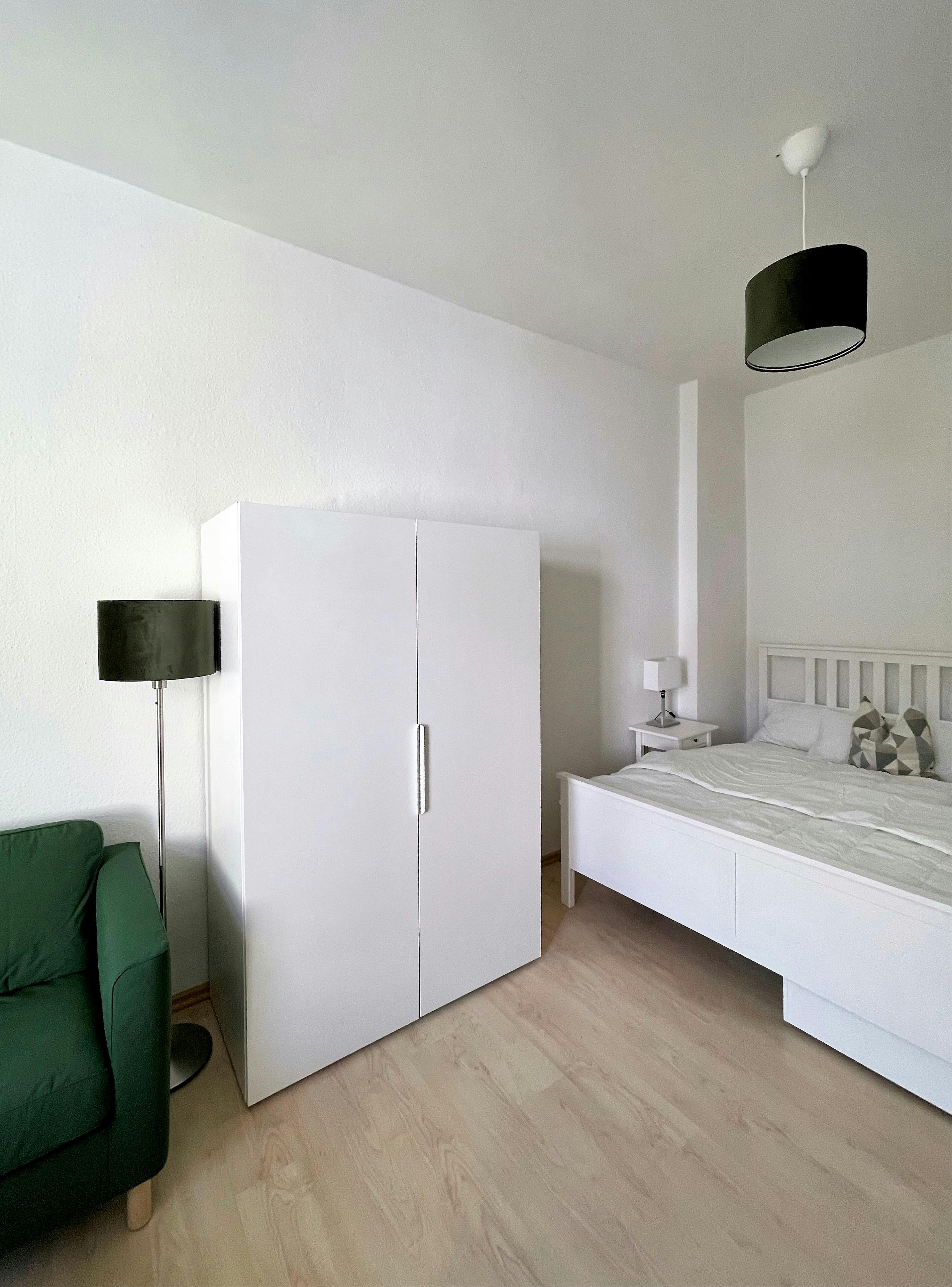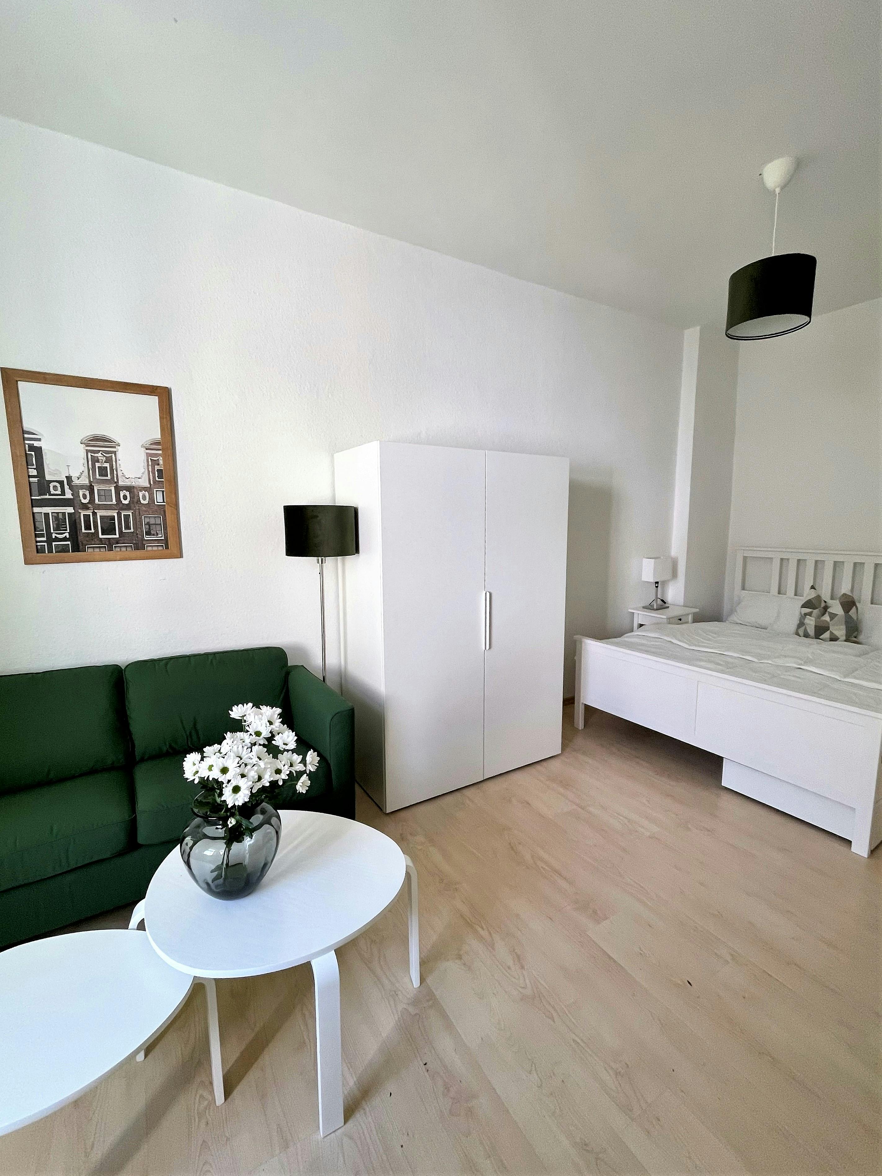 Apartment This apartment consists of a separate kitchen with a dining table, a big room with a sofa, bed and a wardrobe and a separate bathroom. The kitchen is fully equipped with refrigerator, cooking plate and oven, kettle, and all the cooking equipment/utensils you may need. In the bathroom you will find a washing machine, hairdryer and a clothes drying rack. Location The apartment is located in Reinickendorf, which is a pretty and safe area, and lies near Volkspark Schönholzer Heide. Withing a short walking distance you will find an S-Bahn and bus stations. It will be quiet inside, because the flat is...
