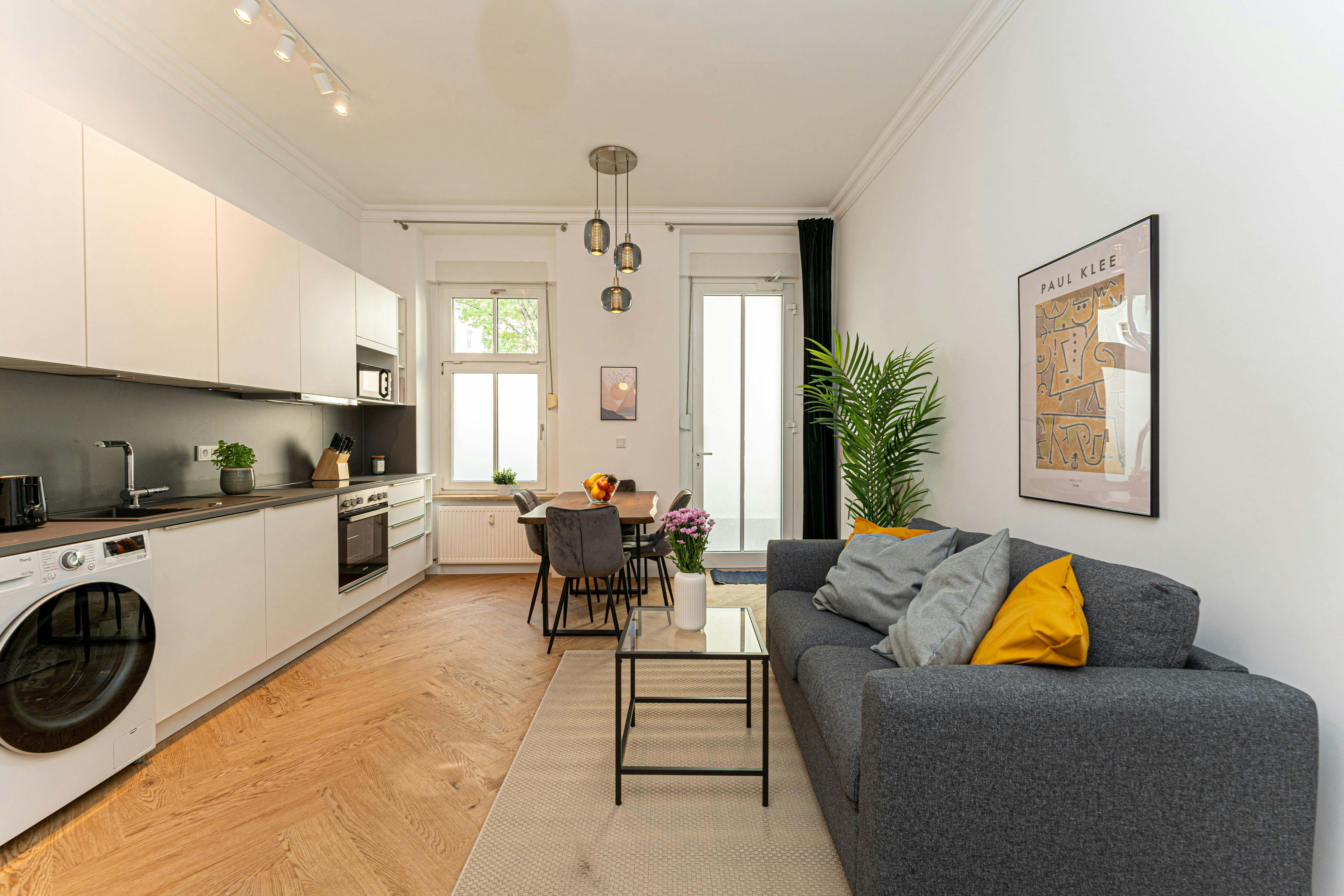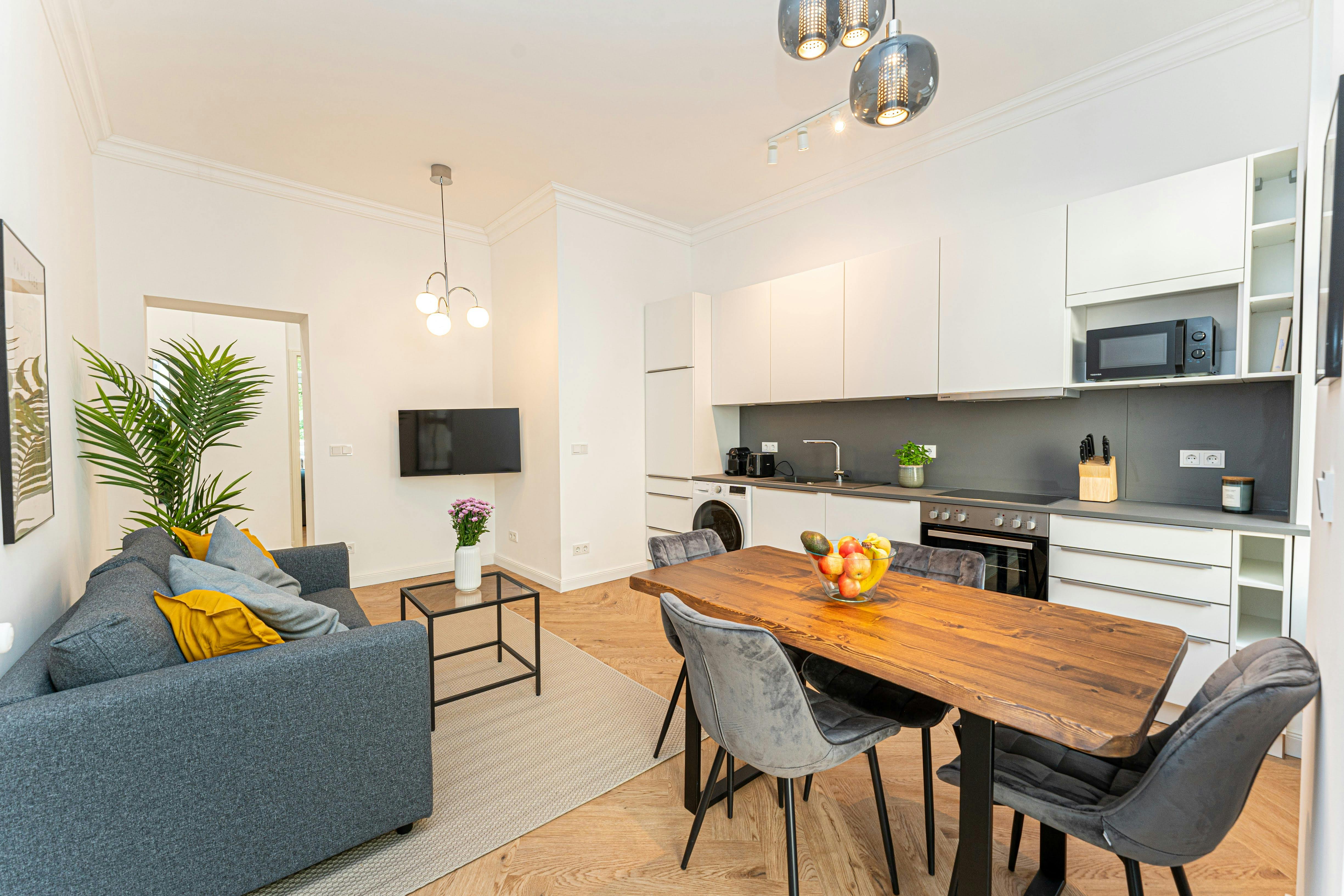 "Diese frisch sanierte und hochwertig möblierte 3-Zimmer-Wohnung in Berlin Köpenick bietet ein strahlendes, modernes Interieur und eine hochwertige Ausstattung für ein besonders gemütliches Wohnerlebnis. Die Wohnung wurde durch einen professionellen Einrichtigungsservice designed und ausgestattet, so dass ein Höchstmaß an Wohnkomfort besteht. Schlafzimmer: Die Wohnung verfügt insgesamt über 2x separate, gemütliche Schlafzimmer. Diese sind jeweils mit hochwertigen Boxspringbetten, Kleiderschränken teilweise Schreibtischen ausgestattet sind (siehe Fotos). Teilweise können die Betten auseinander Küche / Wohnbereich: Die Wohnung verfügt über einen Wohn-Essbereich. Die hochwertige und vollständig ausgestatte neue Design Einbauküche lädt zum Kochen und Verweilen ein. Die Küche ist mit einem Kühlschrank, Geschirrspüler, Backofen, Herd ausgestattet...