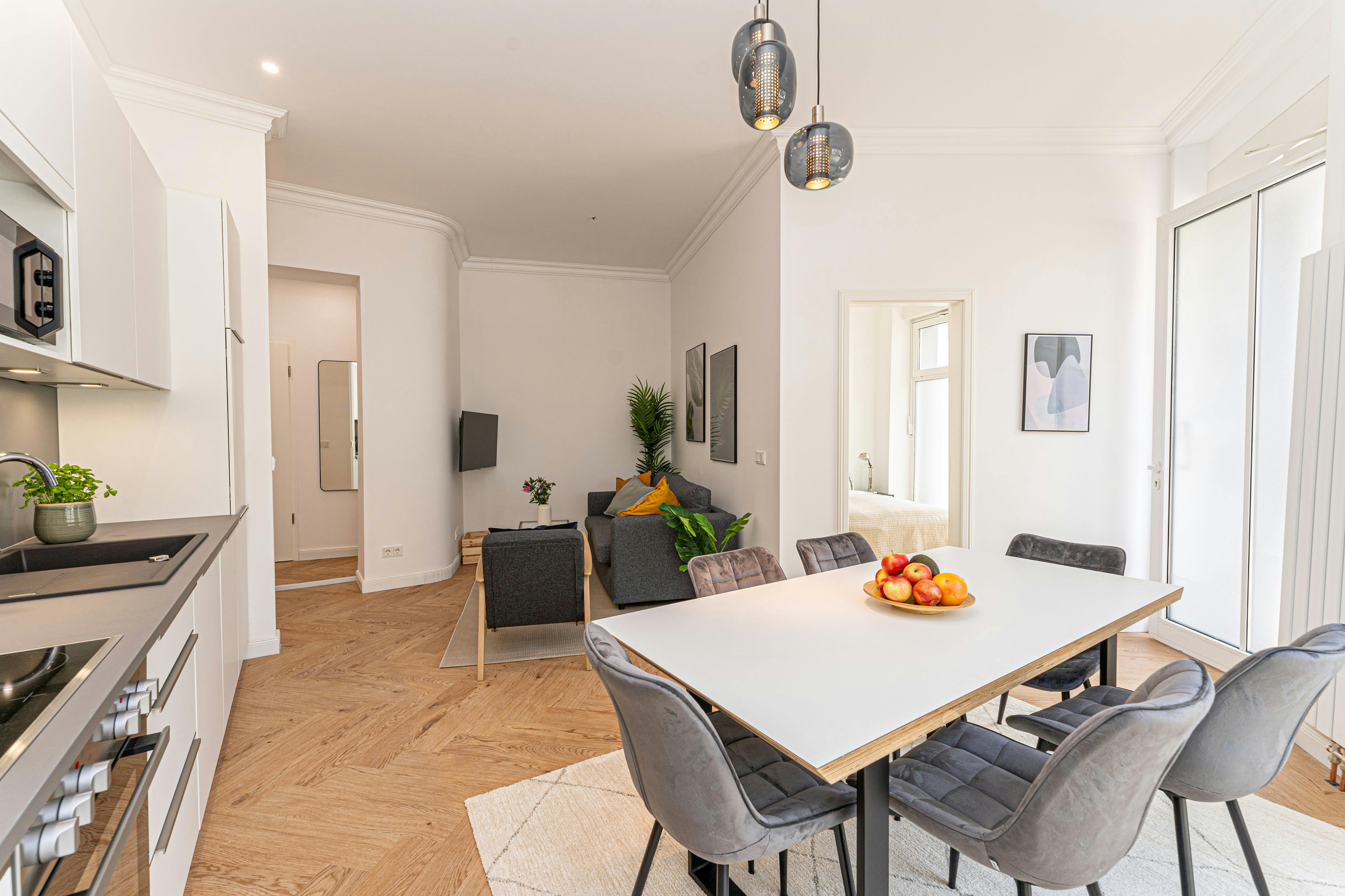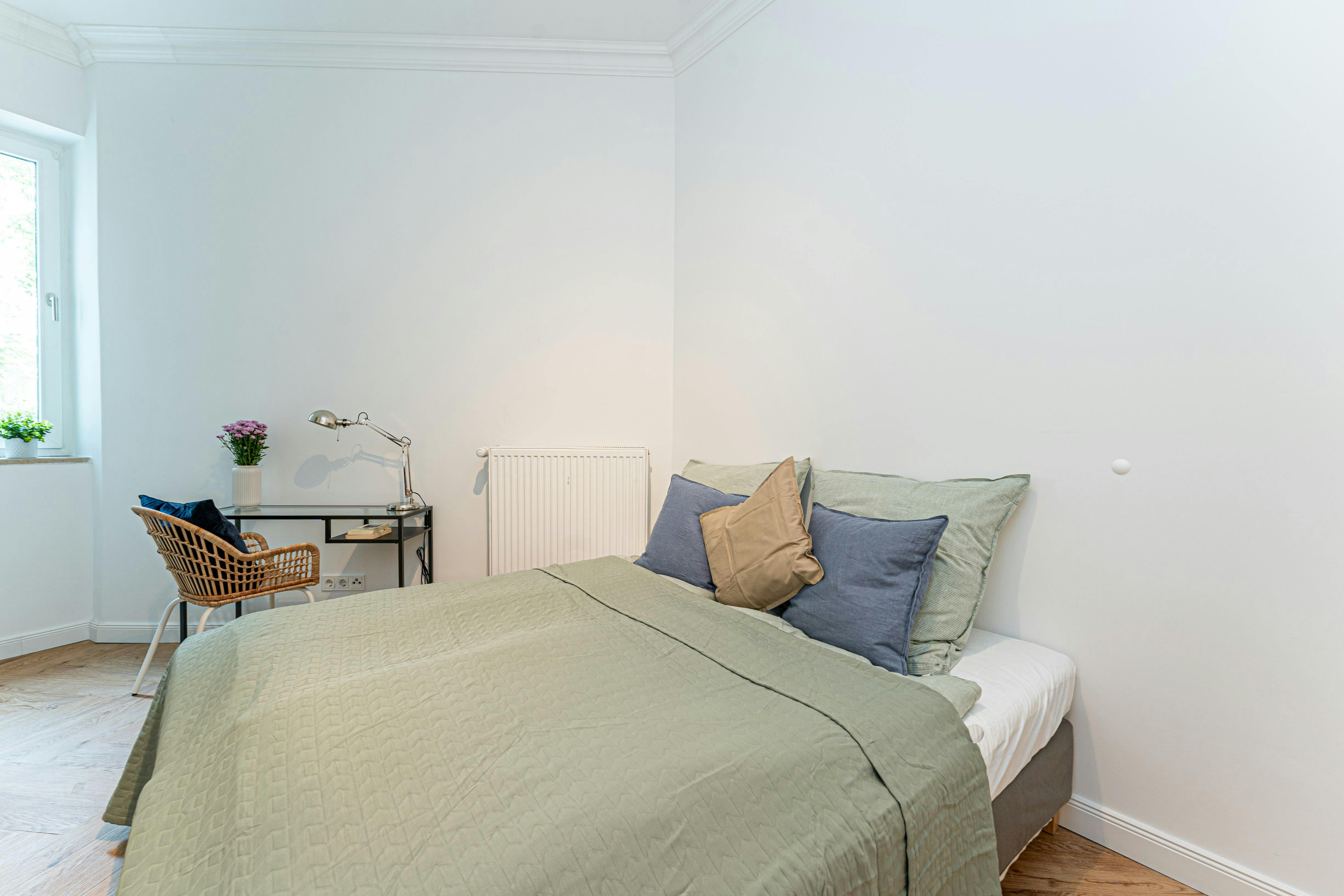 "Diese frisch sanierte und hochwertig möblierte 5-Zimmer-Wohnung in Berlin Köpenick bietet ein strahlendes, modernes Interieur und eine hochwertige Ausstattung für ein besonders gemütliches Wohnerlebnis. Die Wohnung wurde durch einen professionellen Einrichtigungsservice designed und ausgestattet, so dass ein Höchstmaß an Wohnkomfort besteht. Schlafzimmer: Die Wohnung verfügt insgesamt über 4x separate, gemütliche Schlafzimmer. Diese sind jeweils mit hochwertigen Boxspringbetten, Kleiderschränken teilweise Schreibtischen ausgestattet sind (siehe Fotos). Teilweise können die großen Doppelbetten auch als zwei Einzelbetten verwendet werden, so dass man flexibel in der Benutzung ist. Küche / Wohnbereich: Die hochwertige und vollständig ausgestatte neue Design Einbauküche lädt zum Kochen und Verweilen ein. Die Küche ist...