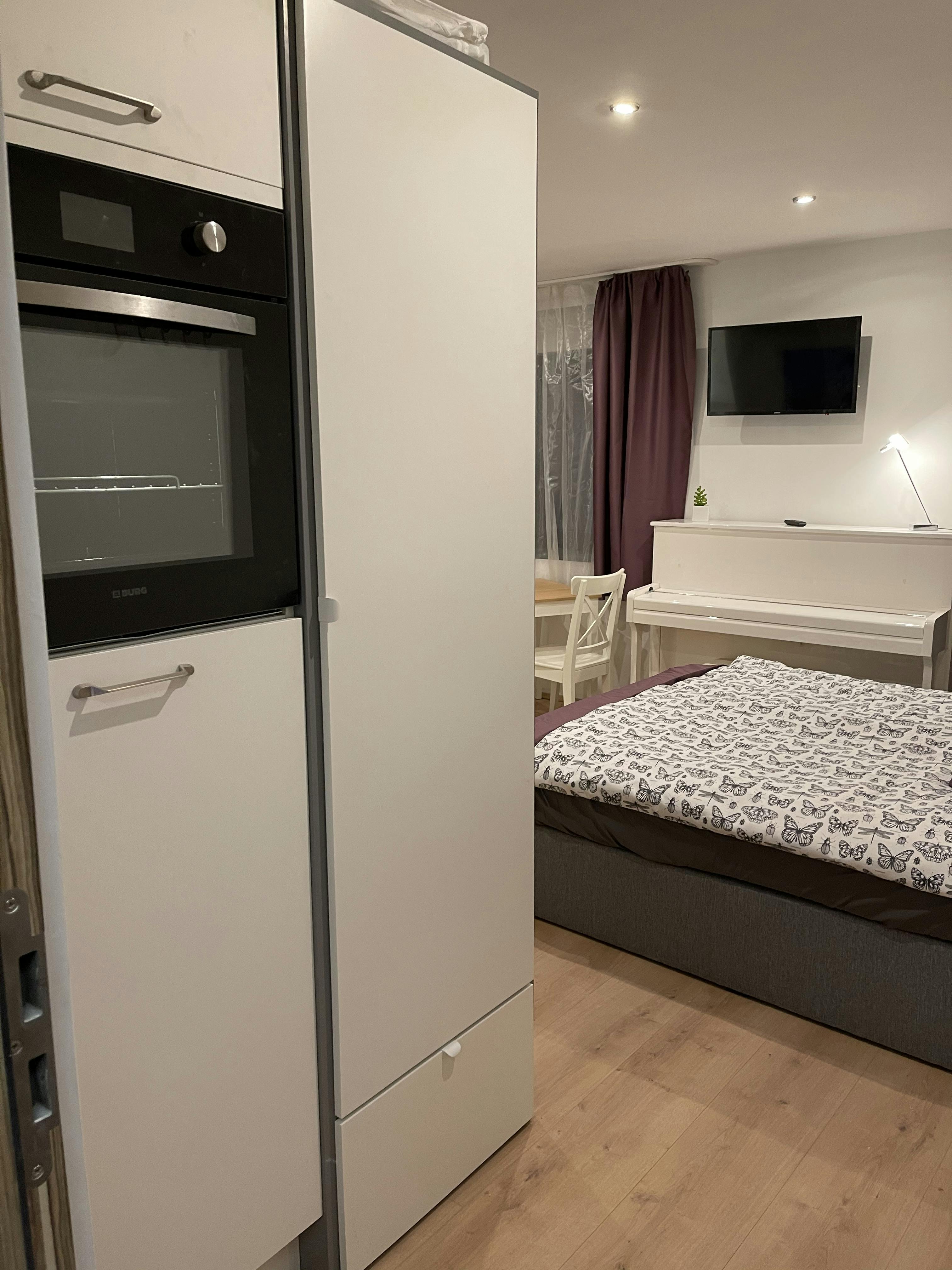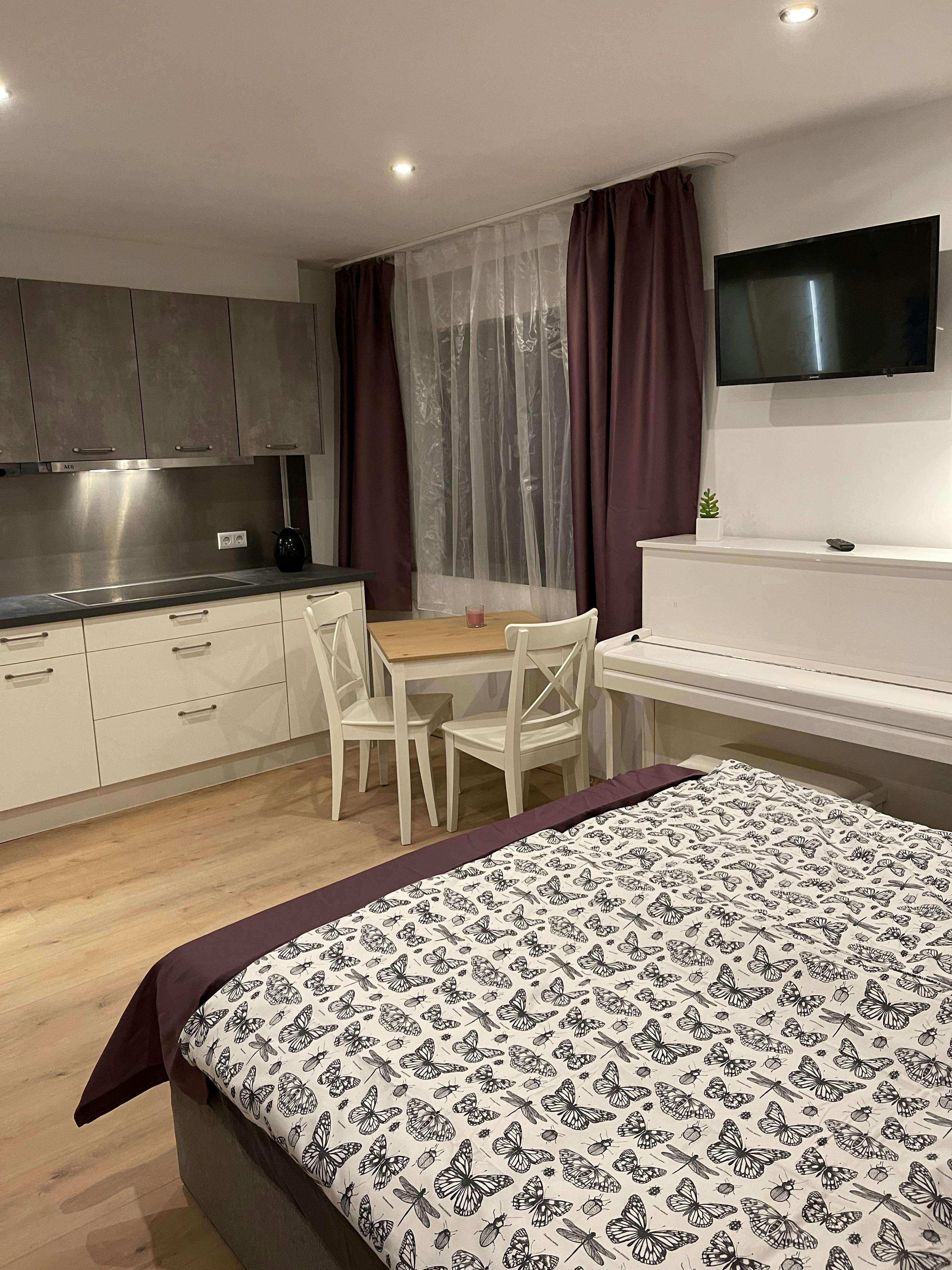 Stylish Serviced Apartment with Official Registration in Trendy Friedrichshain – Peaceful, Garden-Facing, and Fully Equipped Tucked away in a quiet courtyard setting near lively Boxhagener Platz and the buzzing Simon-Dach-Strasse, this beautifully appointed serviced apartment combines urban flair with serene comfort – and yes, official registration (Anmeldung) and your own private mailbox are included. Just unpack your suitcase and feel at home: A luxuriously large bed invites you to stretch out and unwind, complete with crisp bed linen and a variety of pillows for your perfect night’s sleep. Thoughtfully designed storage solutions – cupboards, a sideboard, and a wardrobe – offer plenty of...