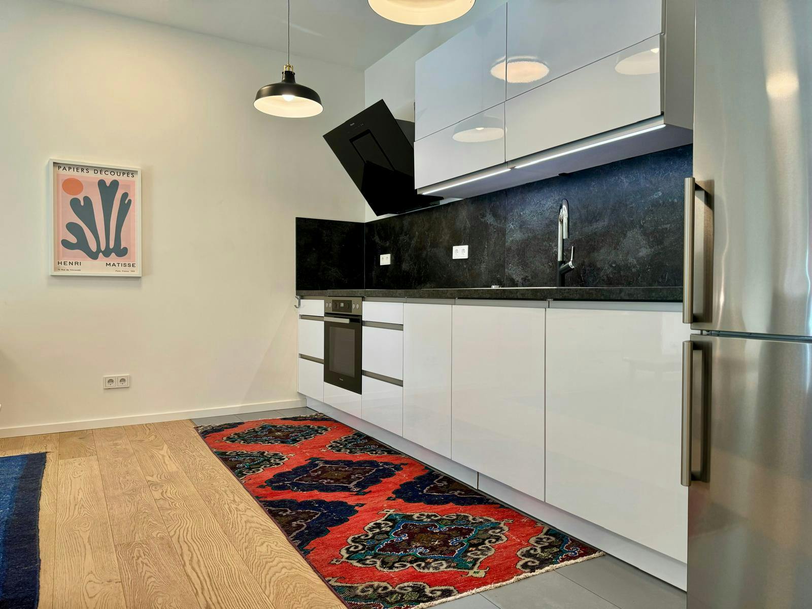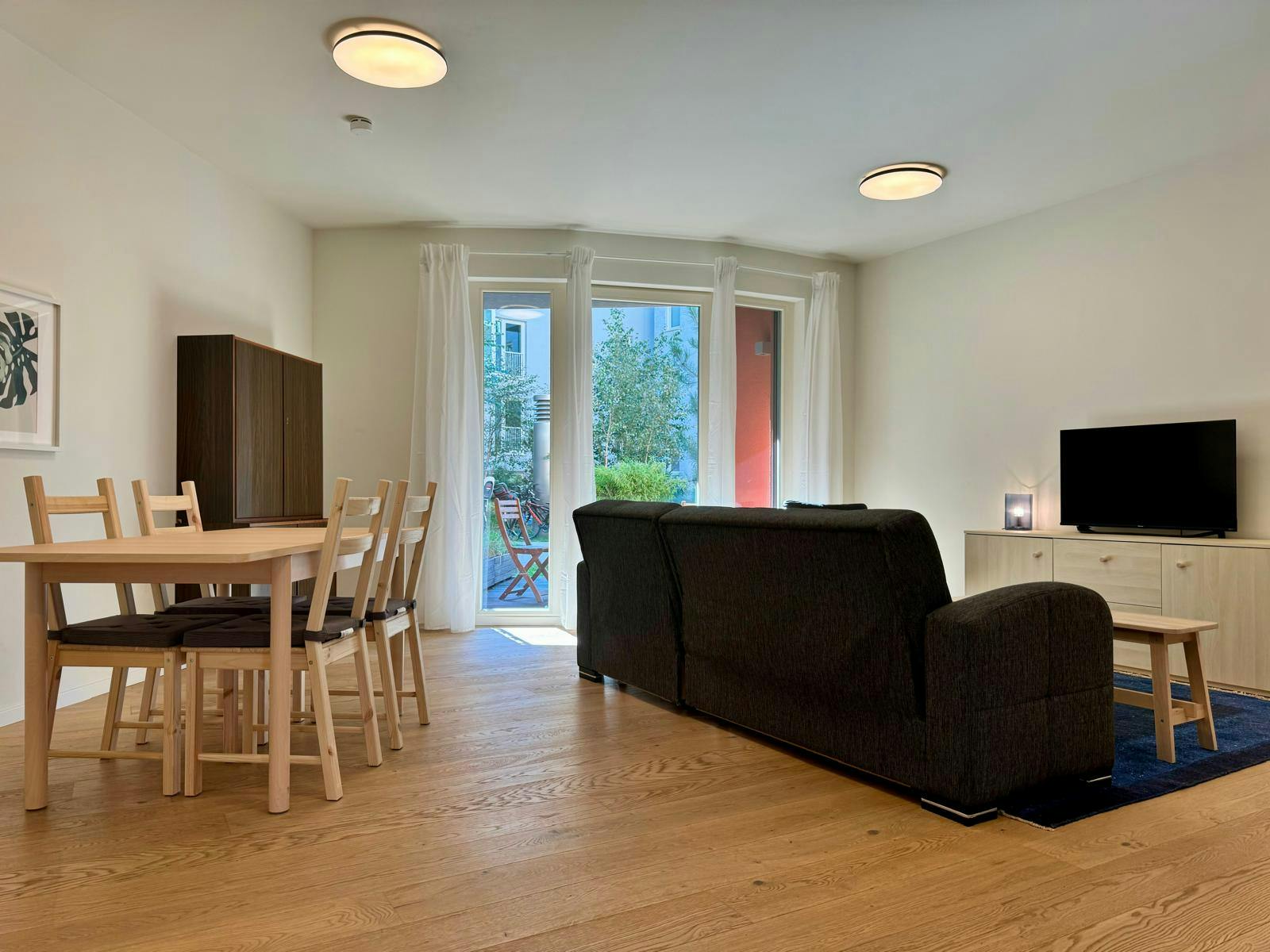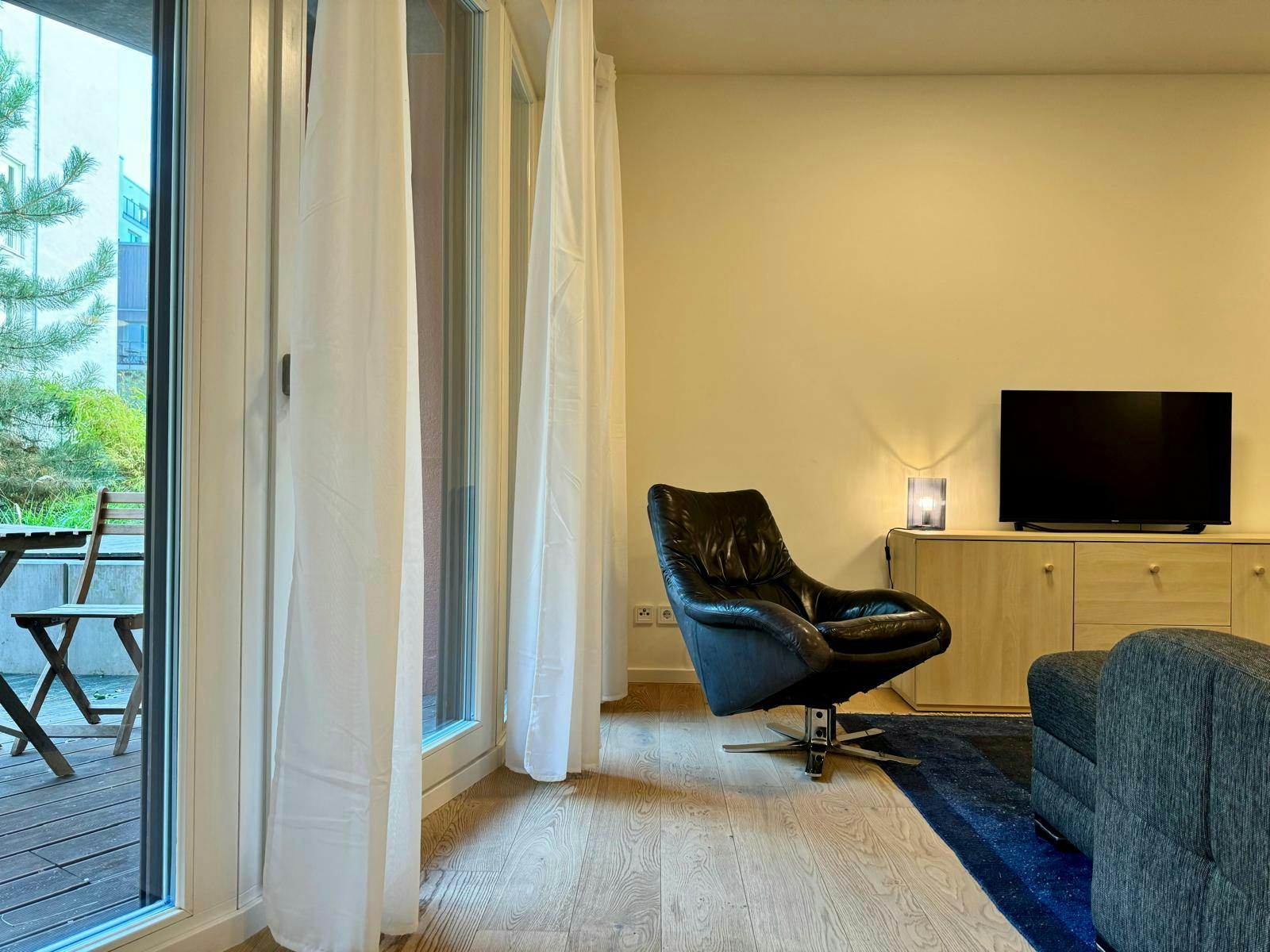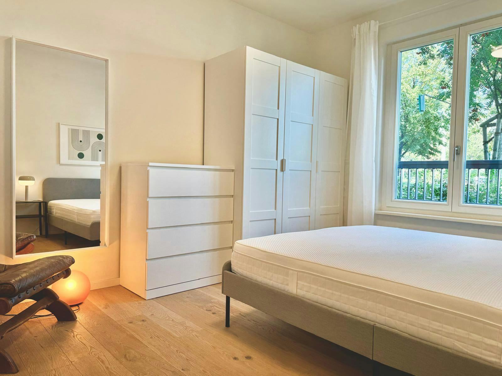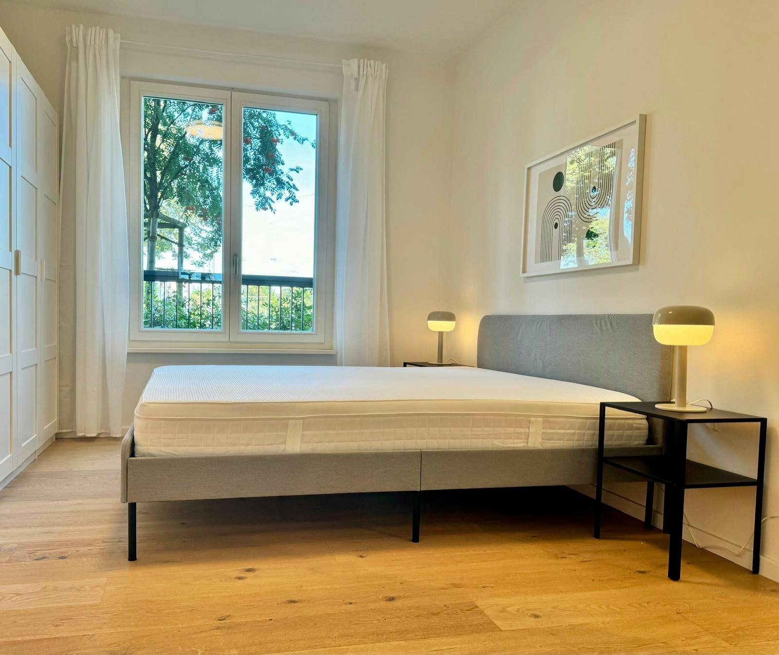 3 Rooms • 80 sqm • Ground floor • Lift • Terrasse • Prenzlauer Berg • Malmöer Strasse Minimum stay: 10 months • Maximum stay: 12 months • Anmeldung is provided Suitable for: Single / Couple / Roommates / 1 - 2 People Living room Reading lamp Sofa Arm chair Coffee table Smart TV Standing lamp Carpet Dining table Chairs Curtains Electric shutters Sideboard Access to terrasse Bedroom 1 Double bed 160X200 2 Night tables 2 Reading lamps Wardrobe Chest of drawers Arm chair Mirror Curtains Electric shutters Bedroom 2 Single bed 90x200 Night table Reading lamp Wardrobe Desk Chair Mirror Curtains Electric shutters Kitchen Fridge Oven Electric stove Hood Dishwasher Bathroom 1 Washing machine Shower Shelf Towel rack Mirror Bathroom 2 Bathtub Shelf Mirror Hall Bank Shoe rack Amenities WiFi Wooden floor Central heating Clothes drying rack Clothes hangers Vacuum cleaner Cleaning tools Plates/glasses/cutlery Pots and pans Cooking equipment Public transport 1 minute walk to Björnsonstrasse Tram station (12/50/M1/M13) 4 minutes walk to Bornholmer Strasse S-Bahn station...