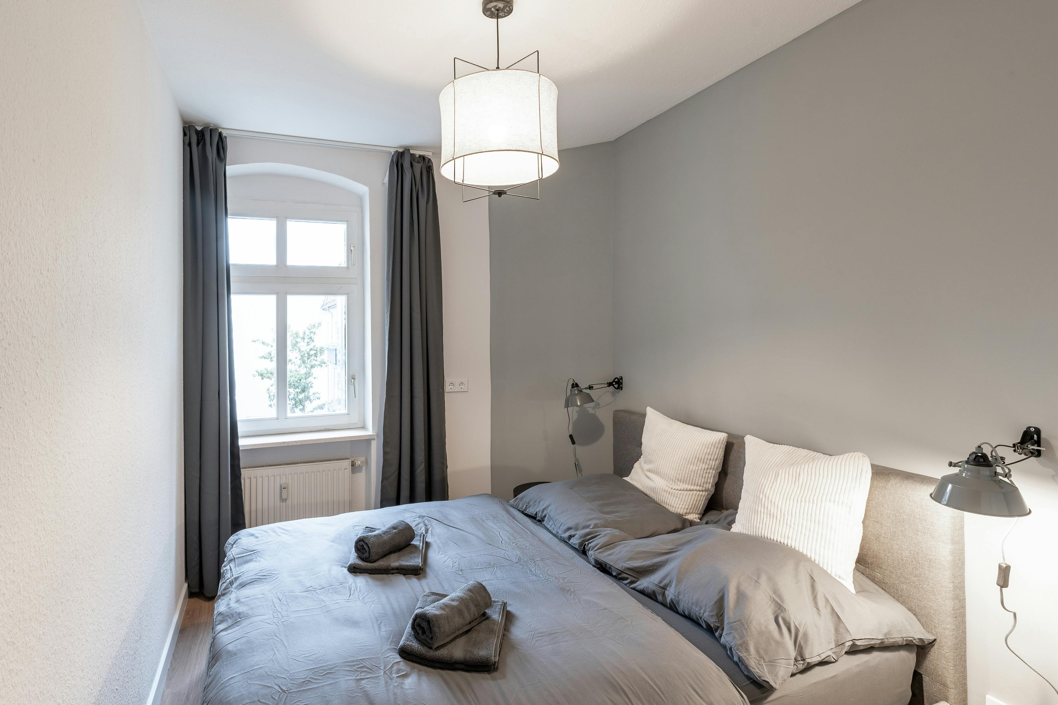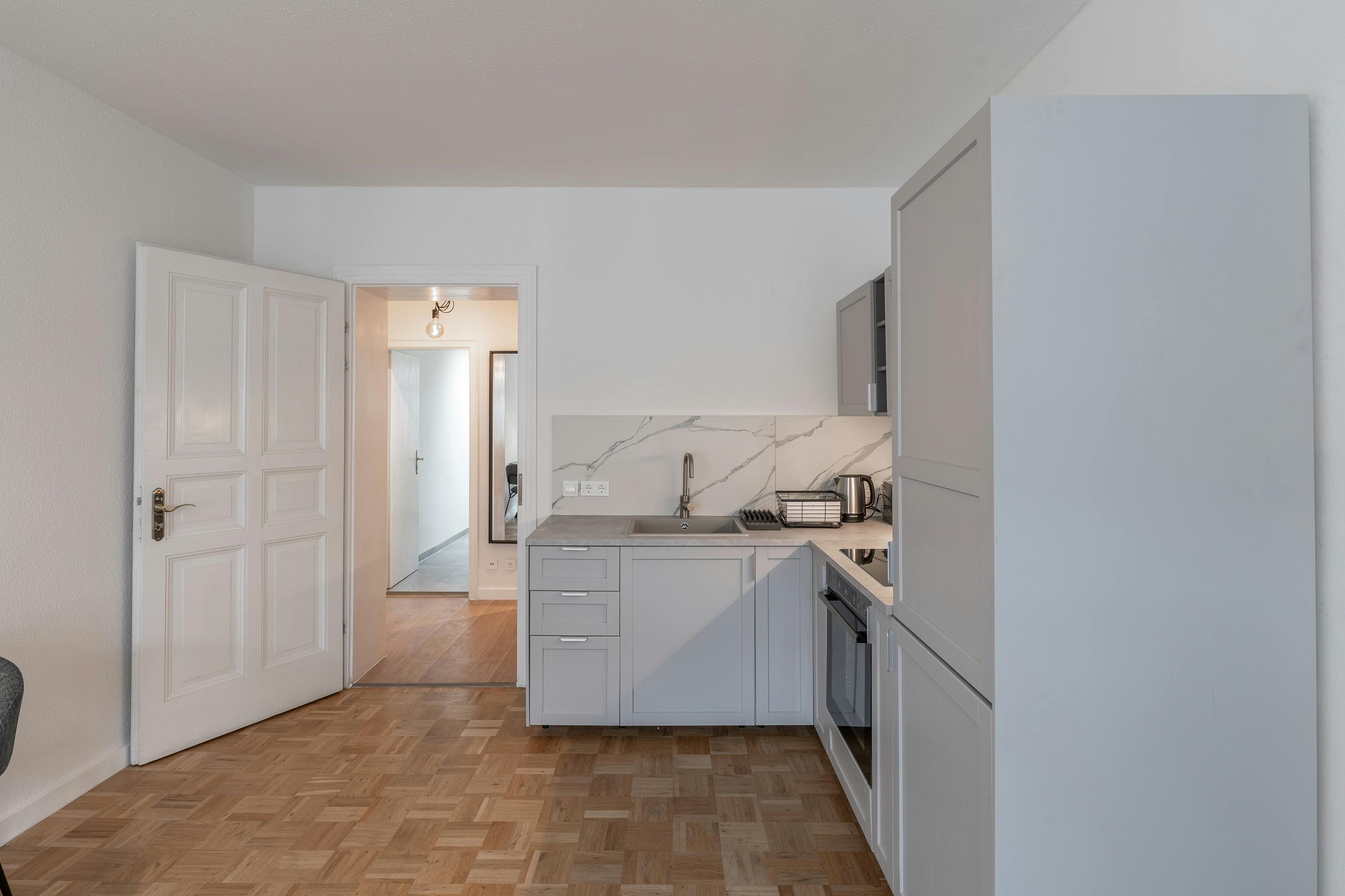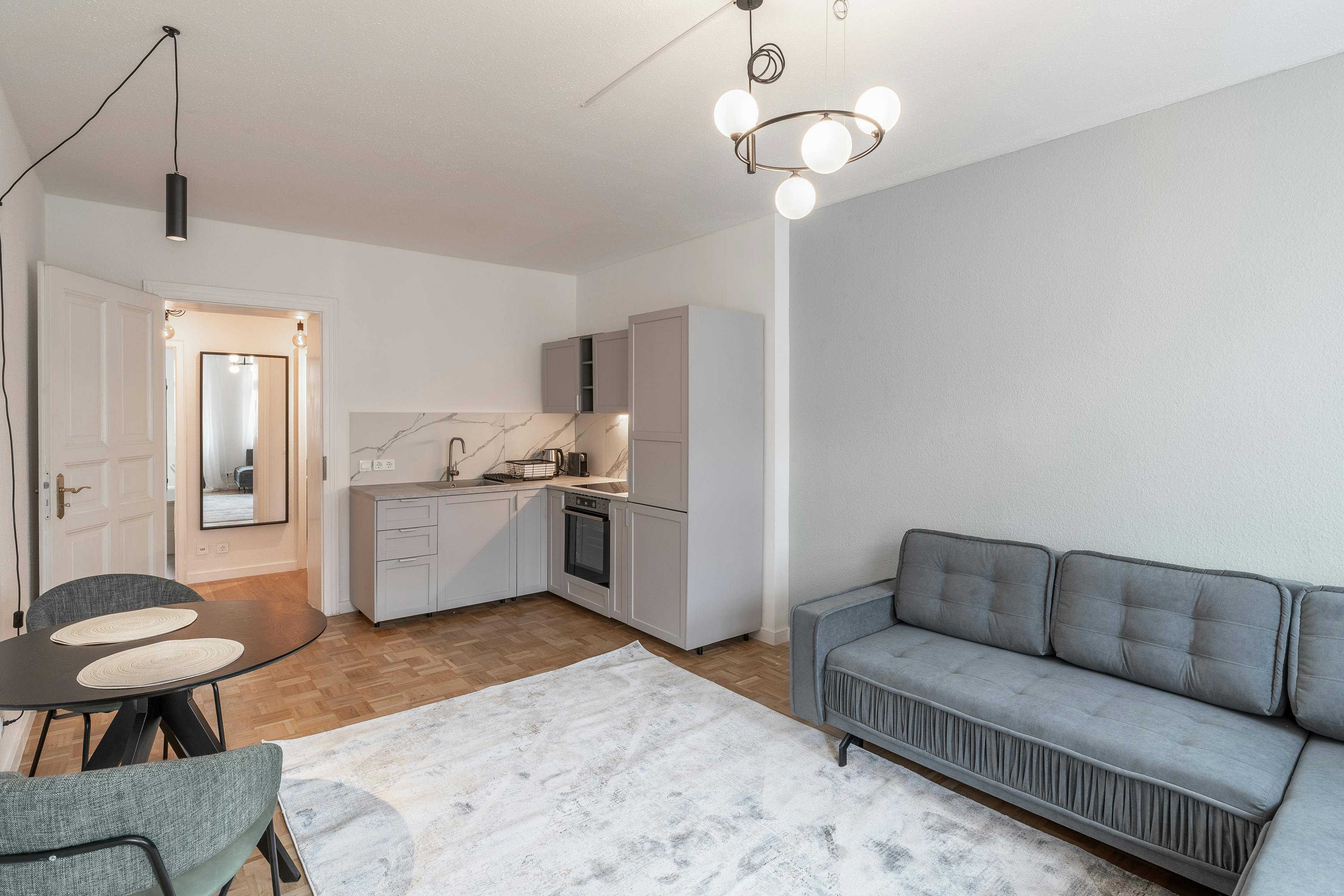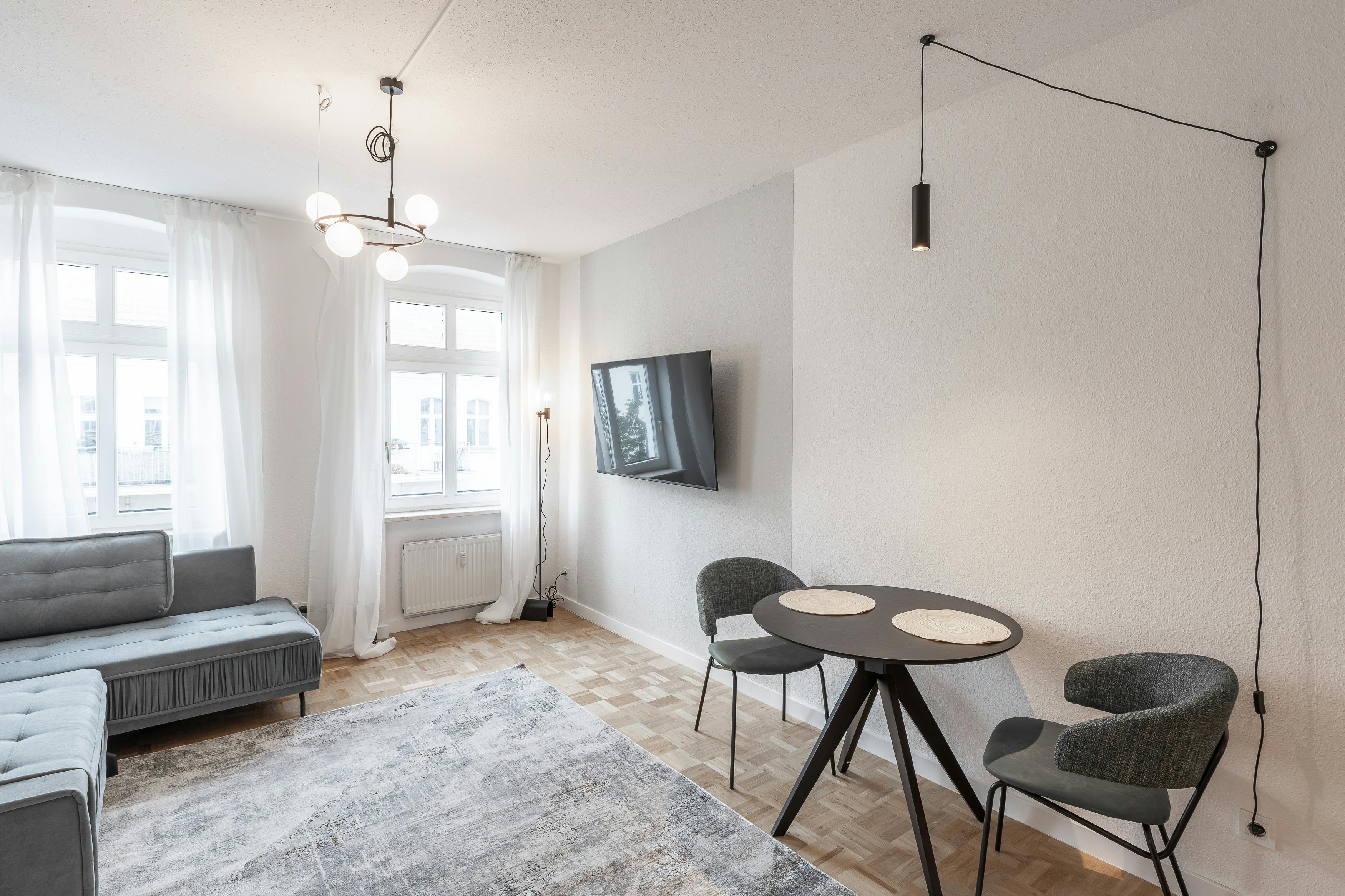 Located in the middle of the trendy neighborhood Prenzlauer Berg, the fully equipped two-room apartment offers you everything you could wish for your stay: The apartment is located in the trendiest district of the city. Discover the city's hippest bars, clubs and restaurants. Or take a walk in Volkspark Friedrichshain. At home you will have your peace, because the apartment is located in the rear building. The apartment is modern furnished. The large living area impresses with its open kitchen and a bright dining area, which invites you to a cozy get-together. You can look forward to a fully equipped kitchen. This...