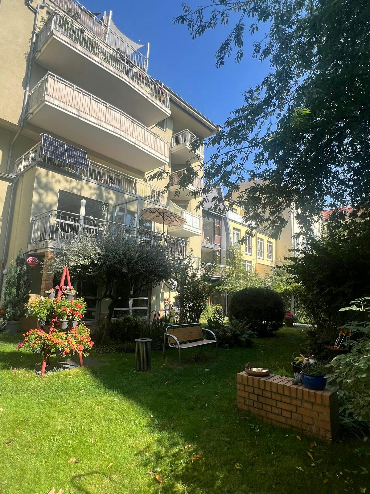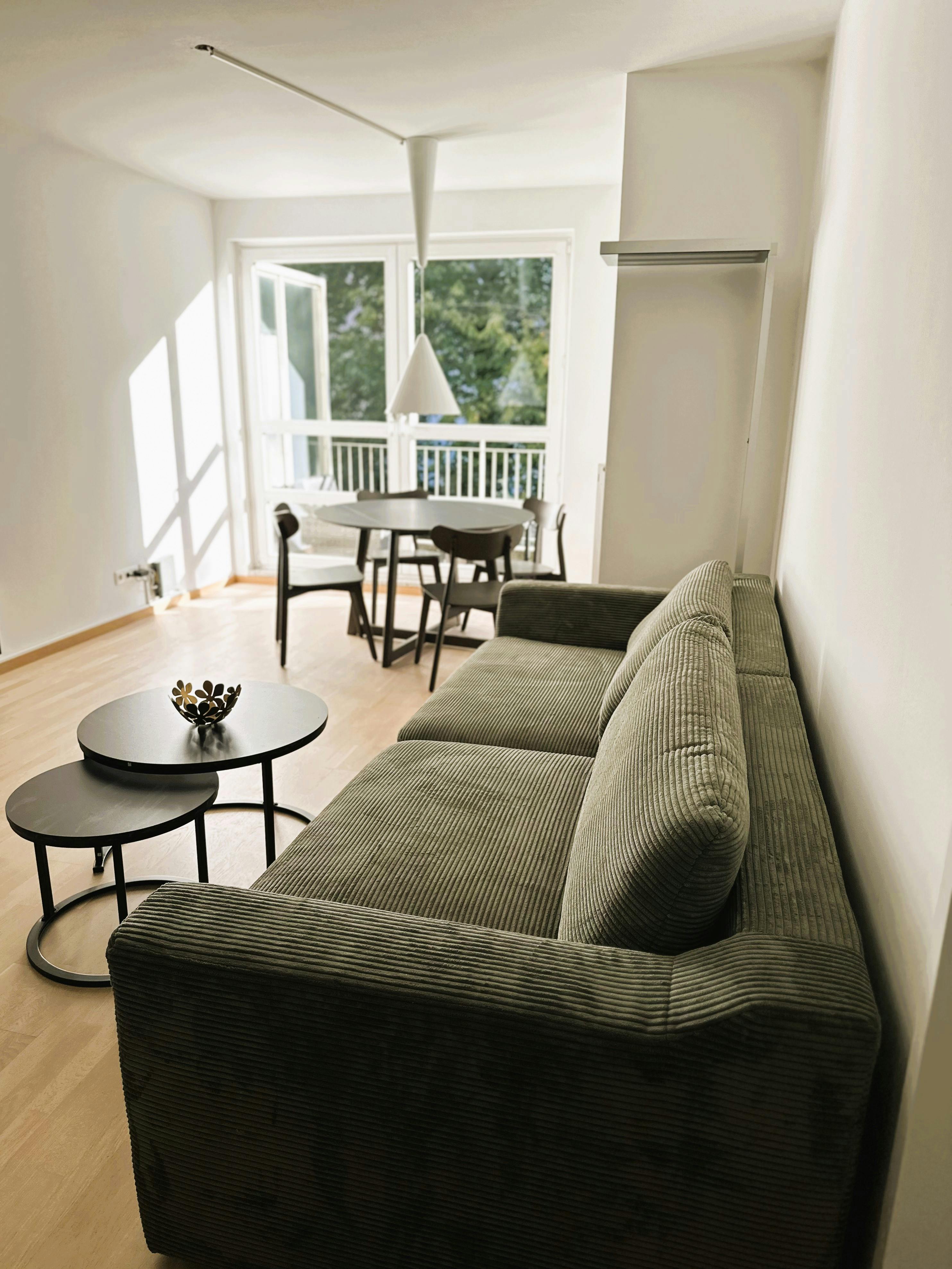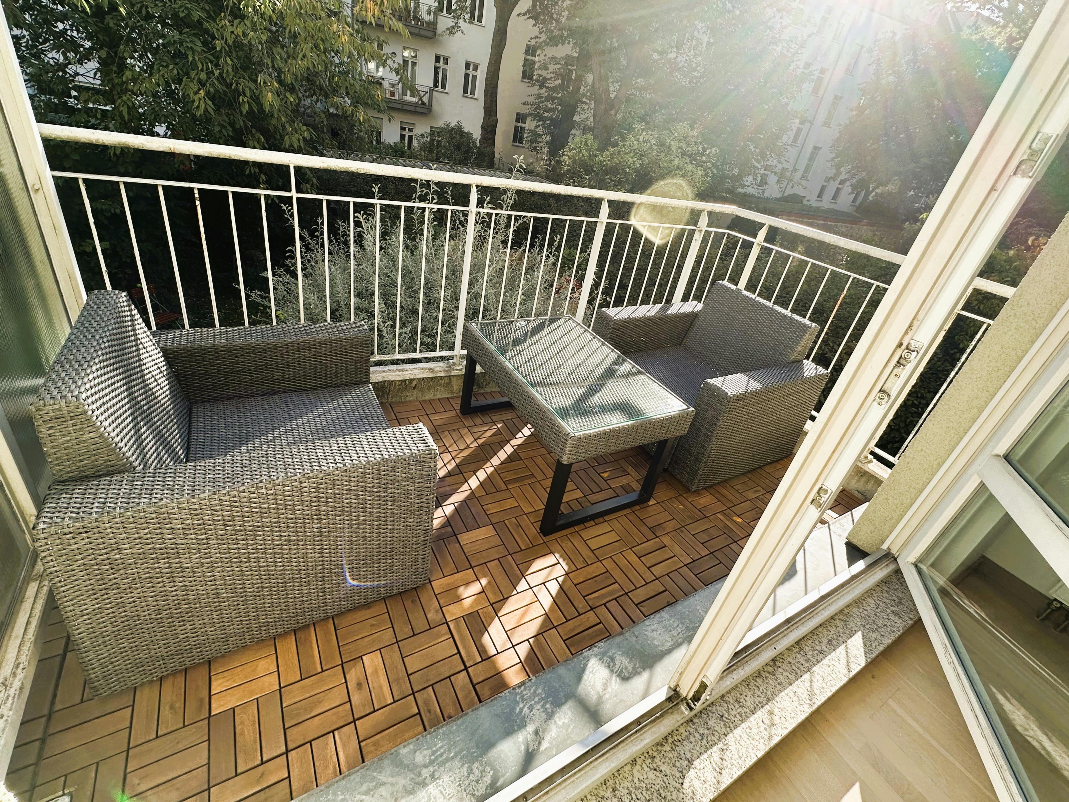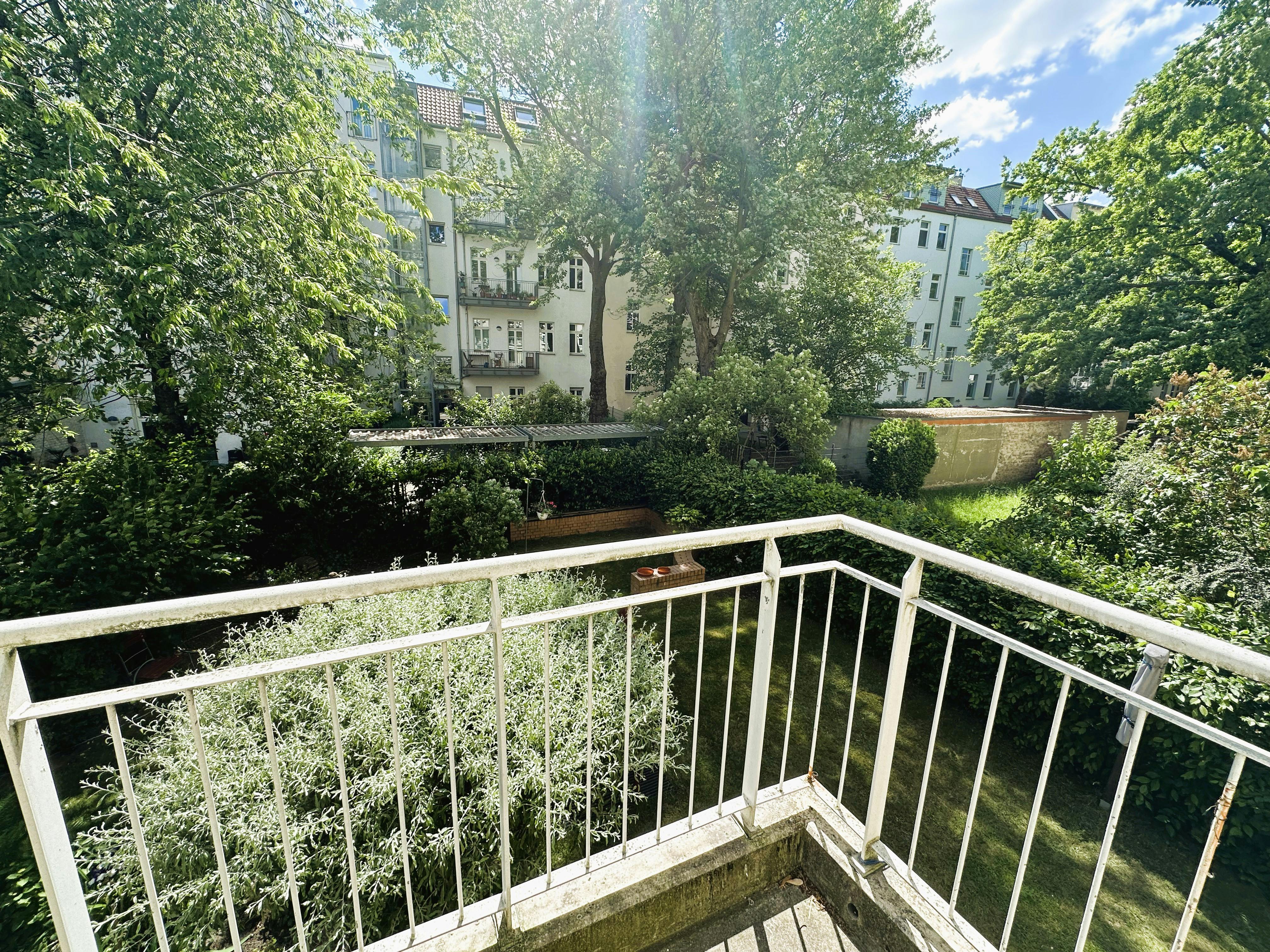We offer you a fantastic 2-room apartment on the border between Prenzlauer Berg and Pankow, just a few minutes from Schönhauser Allee. The apartment impresses with its modern furnishings, lots of daylight and a quiet south-facing balcony with a view of a large idyllic garden. Apartment details: You enter the apartment via a practical hallway, from which you can store your shoes and coats directly in the storage room. To the right of the hallway there is a bright, modern bathroom, equipped with a bathtub, a sink, a washing machine and a cupboard for towels and other utensils. At the end of the hallway...