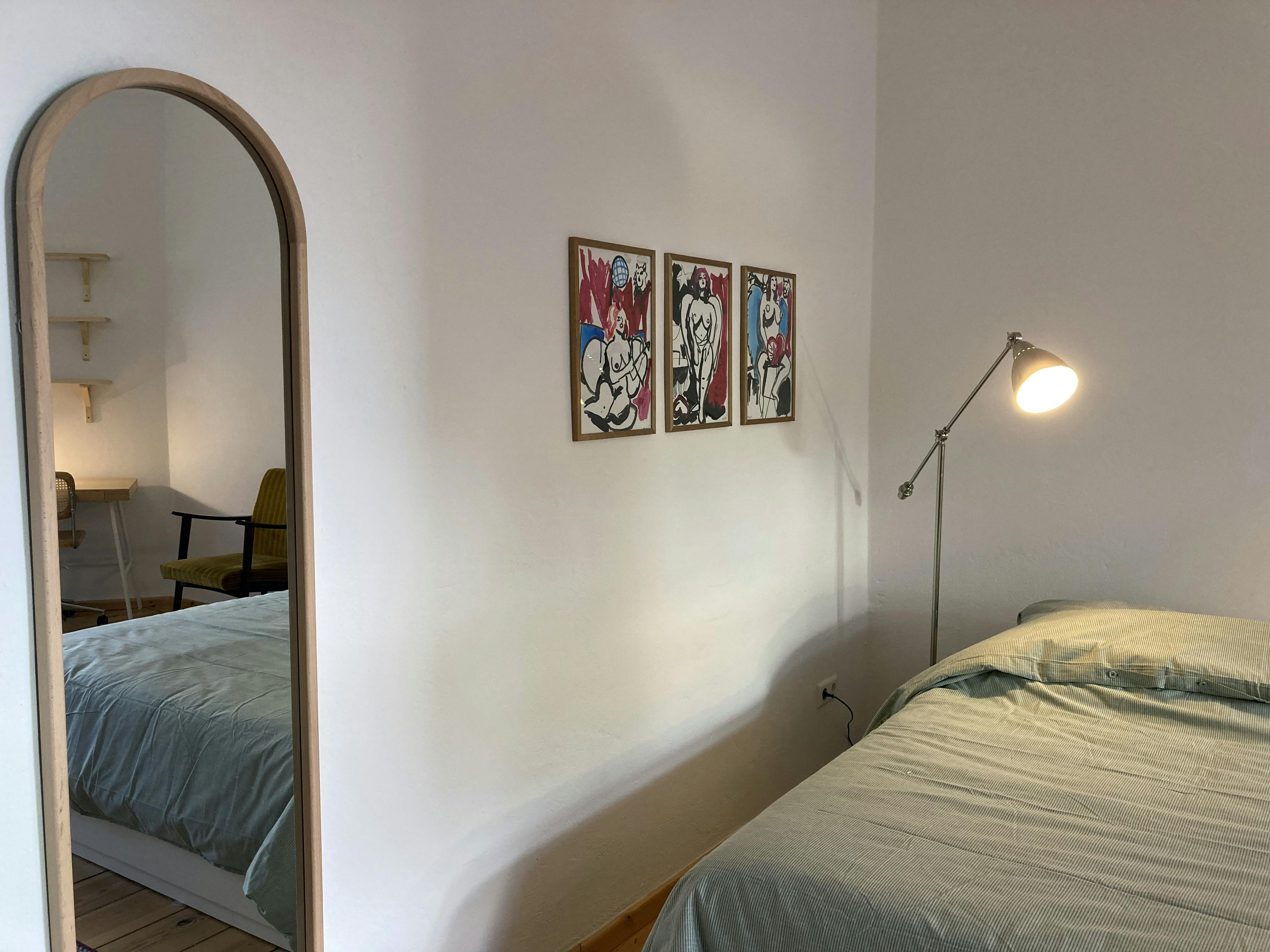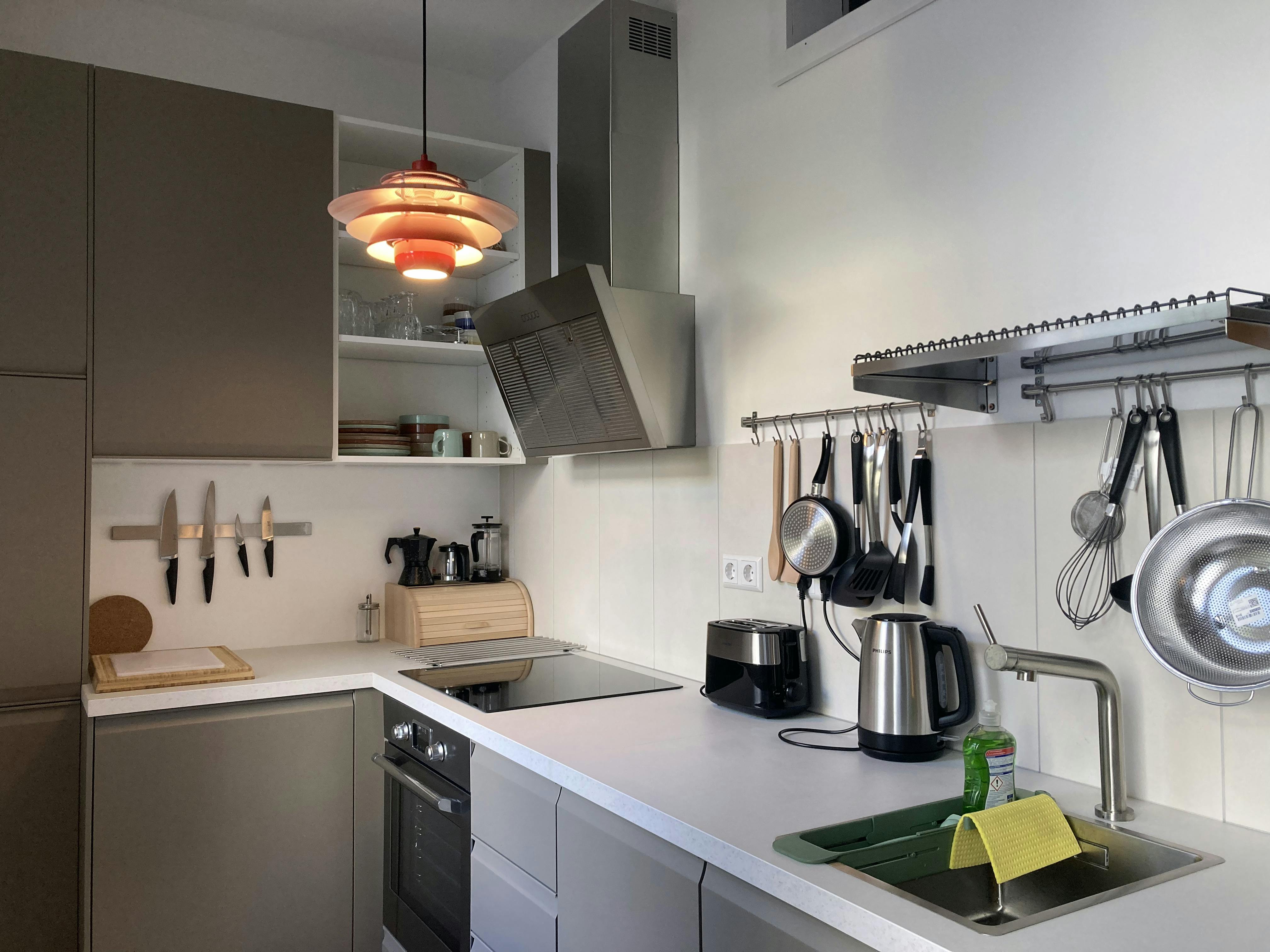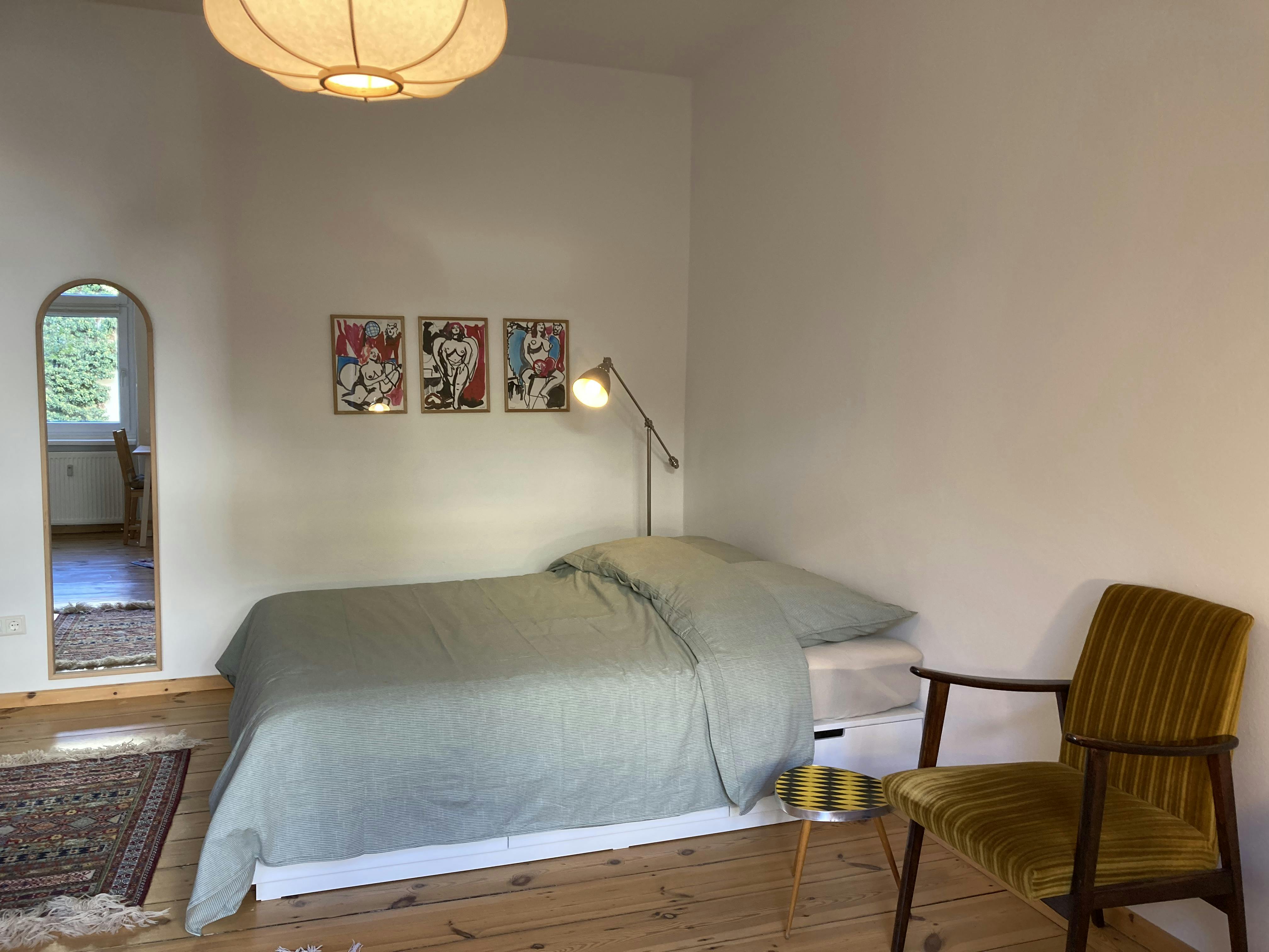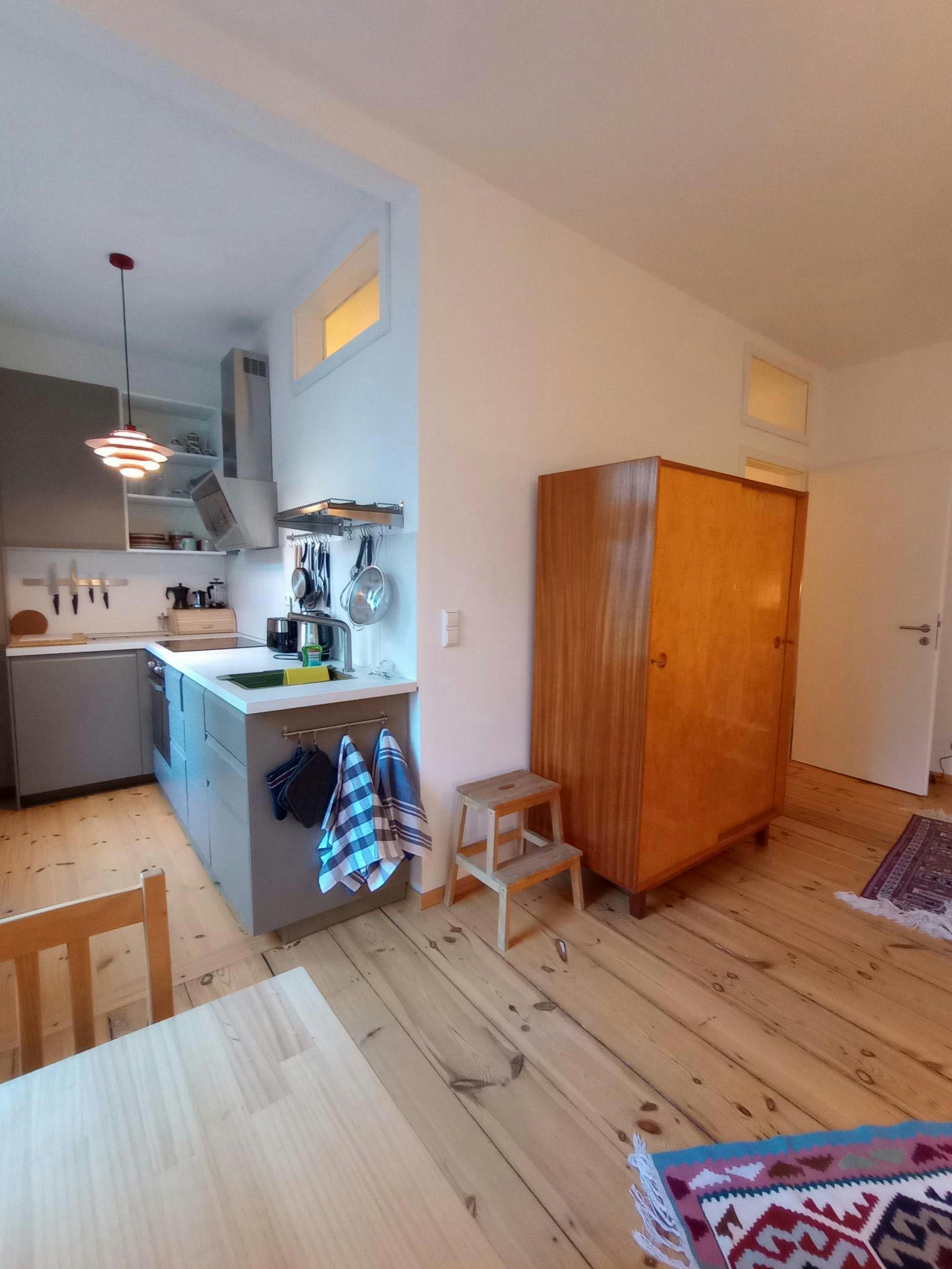 * A confirmation of residence can be given. Newly renovated, cozy and stylish studio apartment in the quiet courtyard of a charming old building in Berlin's most popular district, Neukölln. Renovated in 2024, the apartment combines modern and vintage design and is fully equipped with high-quality appliances and elegant furniture, offering both comfort and character. The property is located in a lively and popular area of Berlin Neukölln, just a 3-minute walk from Hermannplatz. Several bus lines as well as the subway lines U7 and U8 (U7, U8, M41, M29 and more) are in the immediate vicinity. There are excellent connections...