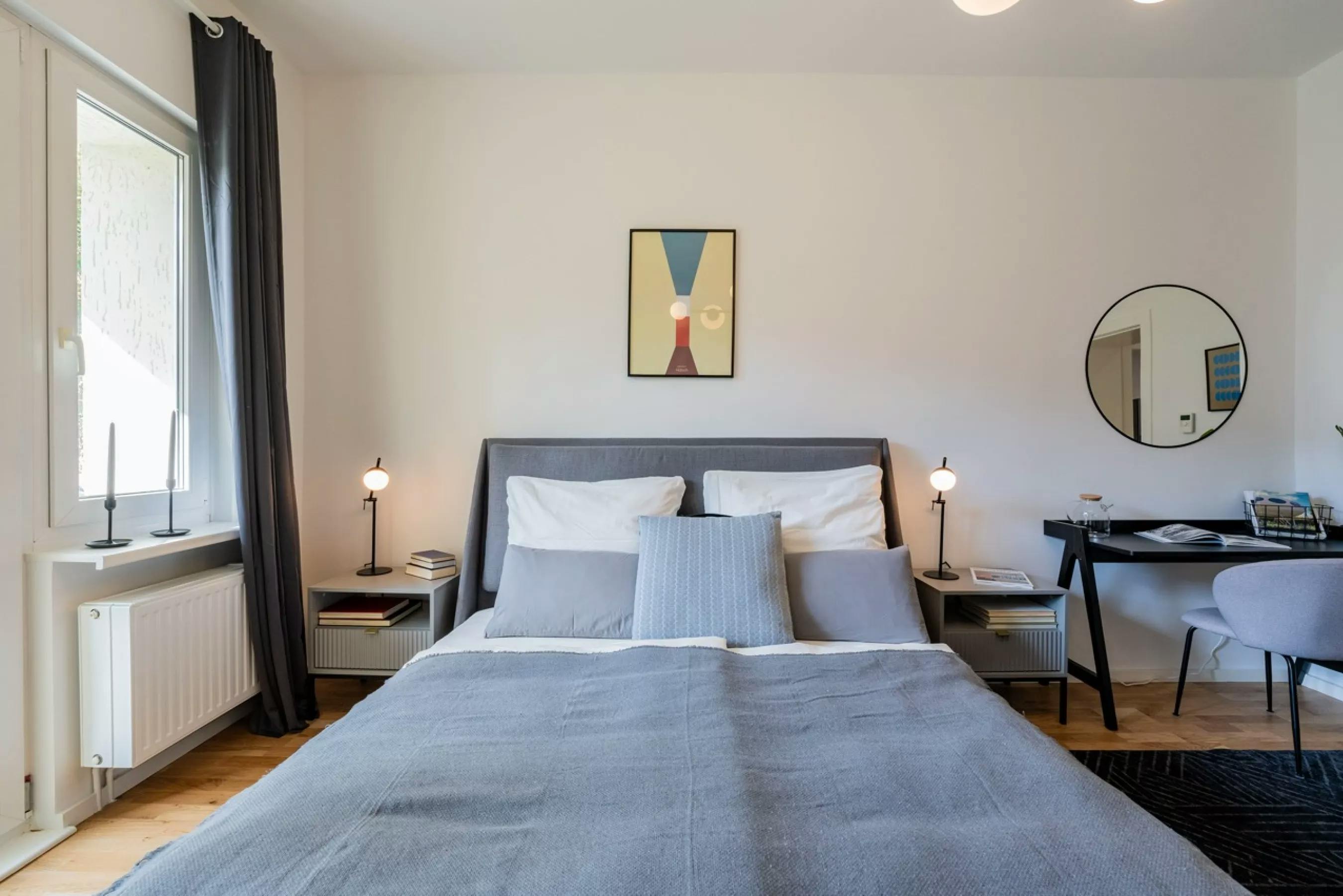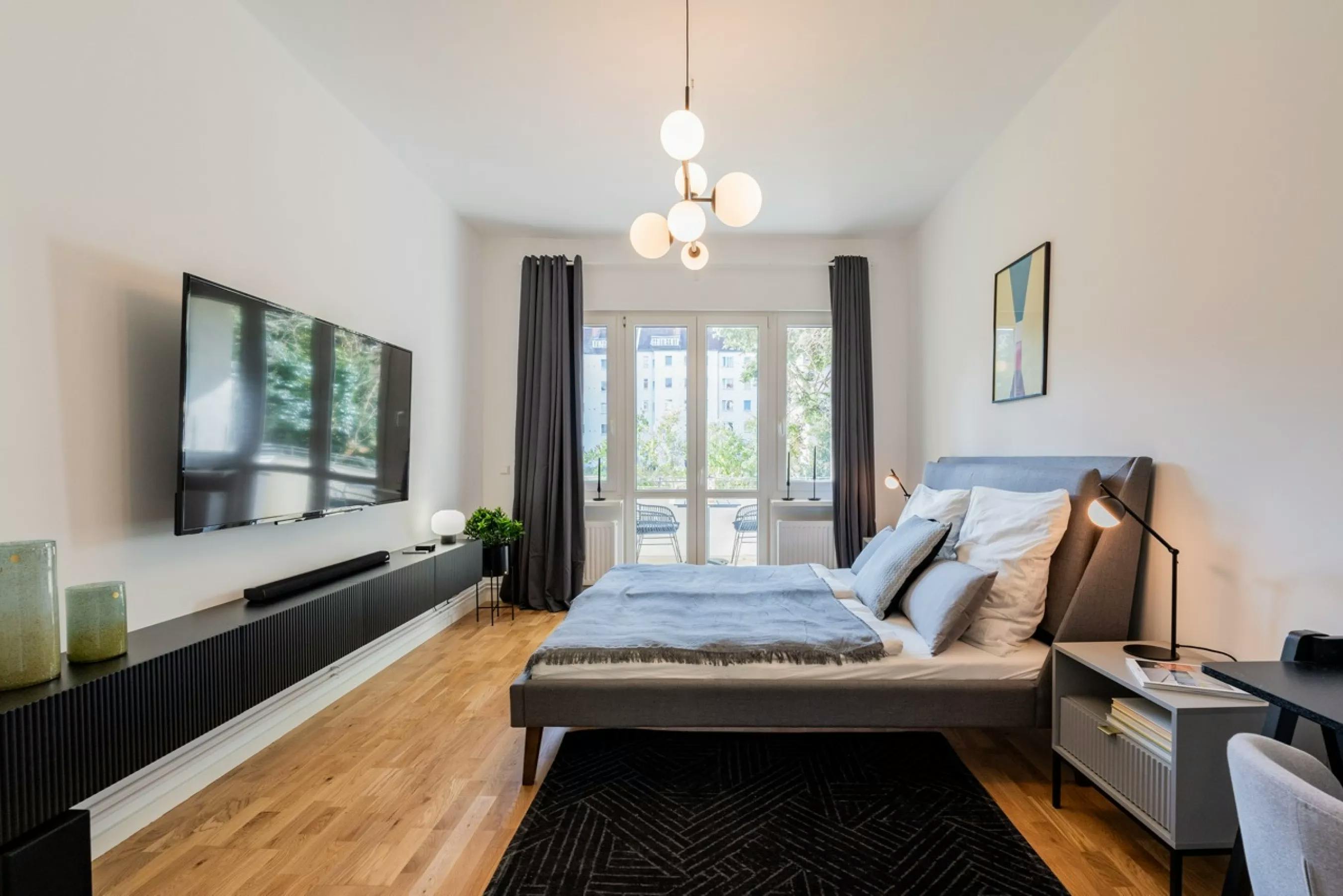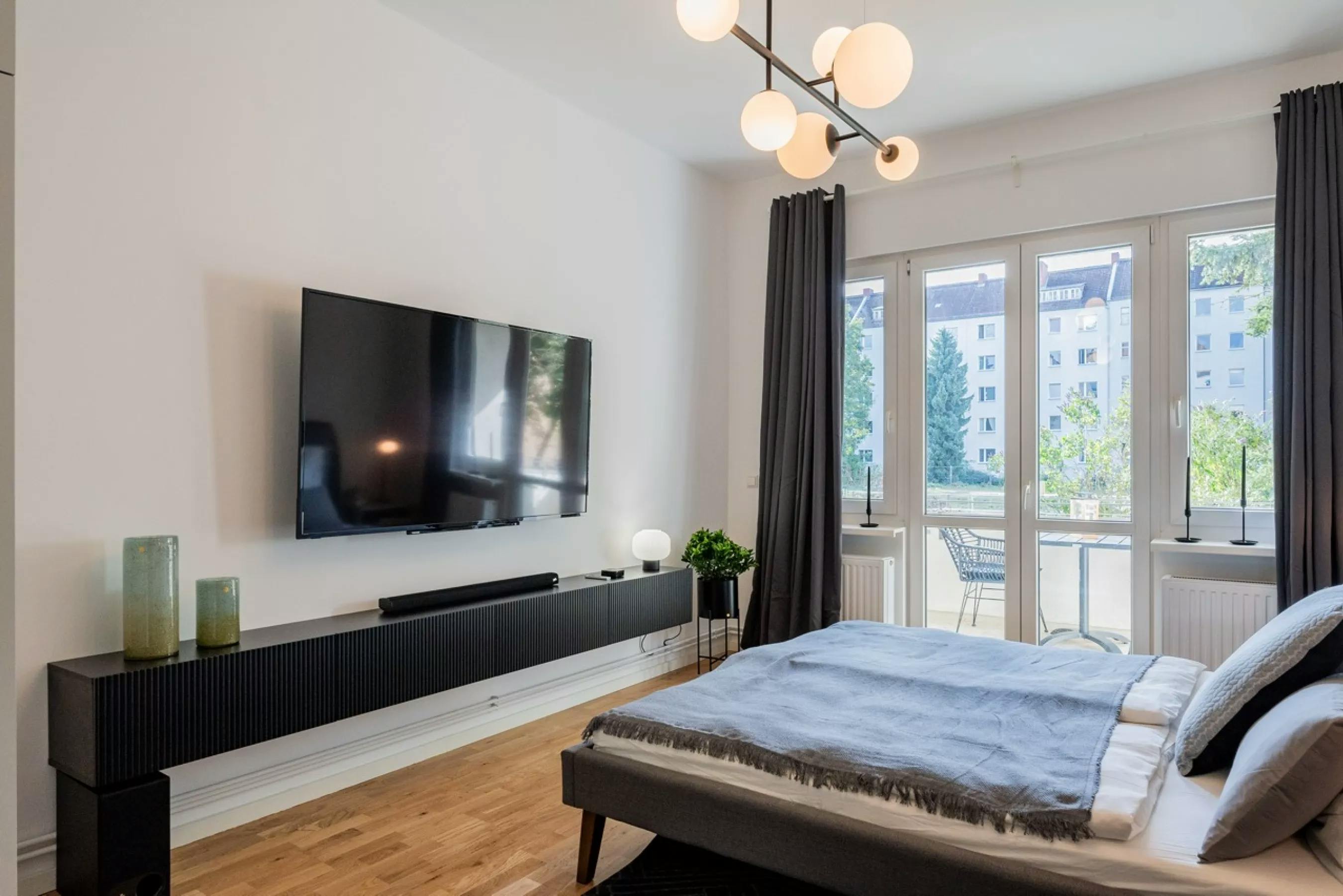 Discover your urban oasis in the heart of Neukölln with this stylishly designed apartment. With a generous size of 50 m2, this space offers everything you need for a comfortable and convenient stay in Berlin. This brand new and fully furnished 2-room apartment boasts a spacious 1-bedroom layout with a luxurious king-size bed, a work desk for productivity, and a 4K TV for your entertainment. There's also a cozy guest room with a comfortable sofa bed. Ample storage is provided by the two built-in Selsey wardrobe systems. Additionally, you'll love the private balcony that offers a tranquil outdoor space to relax and...