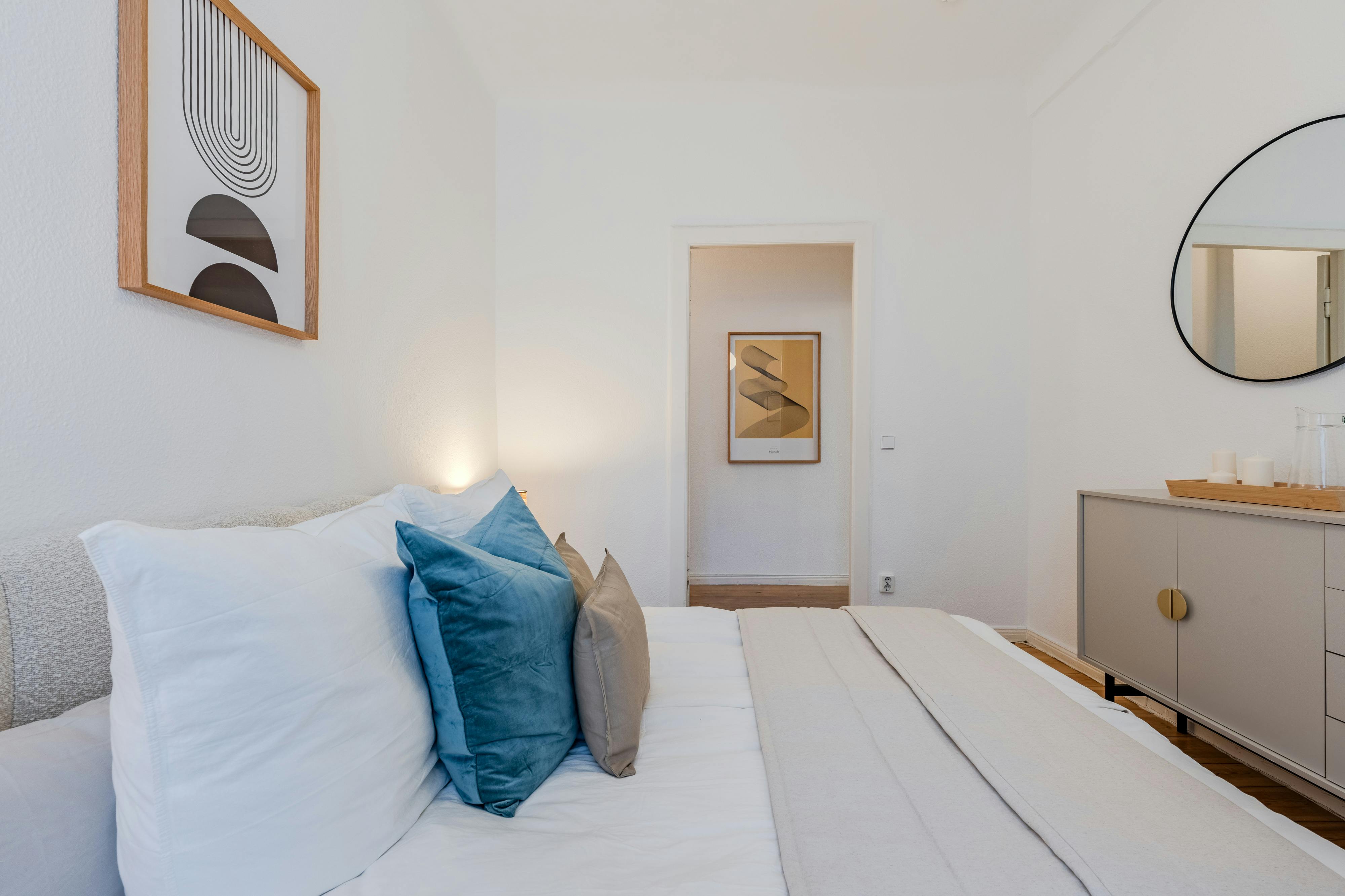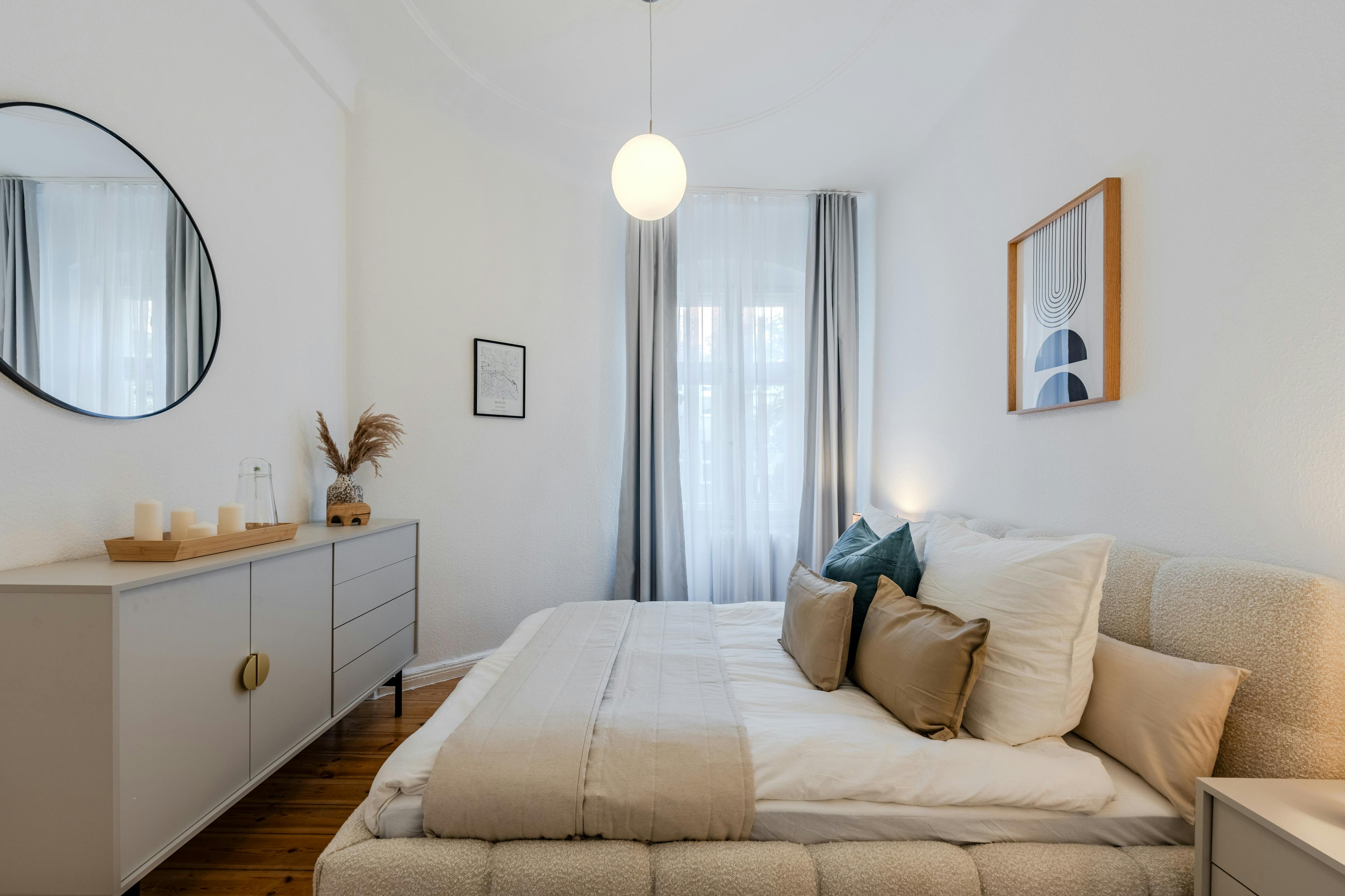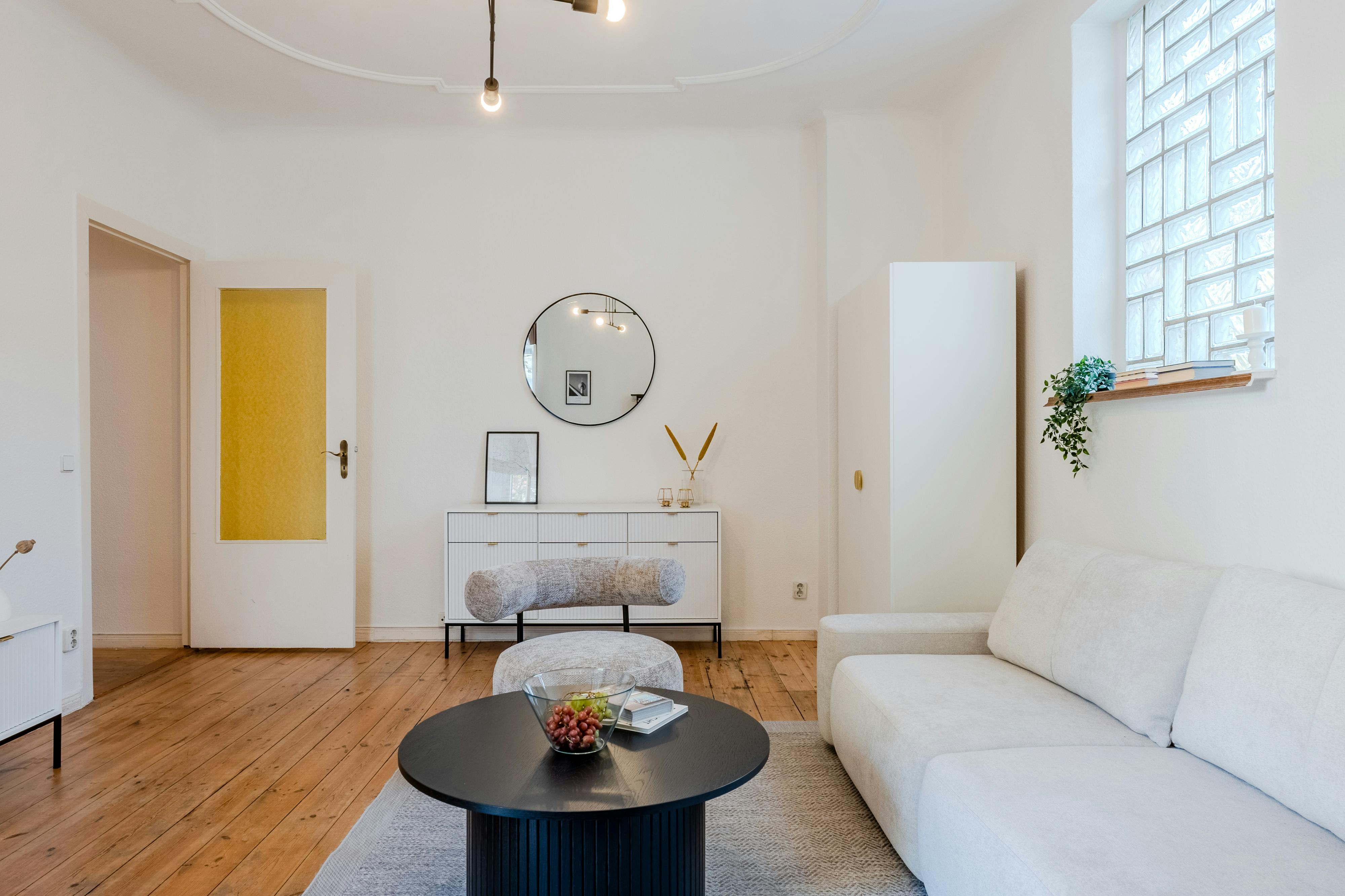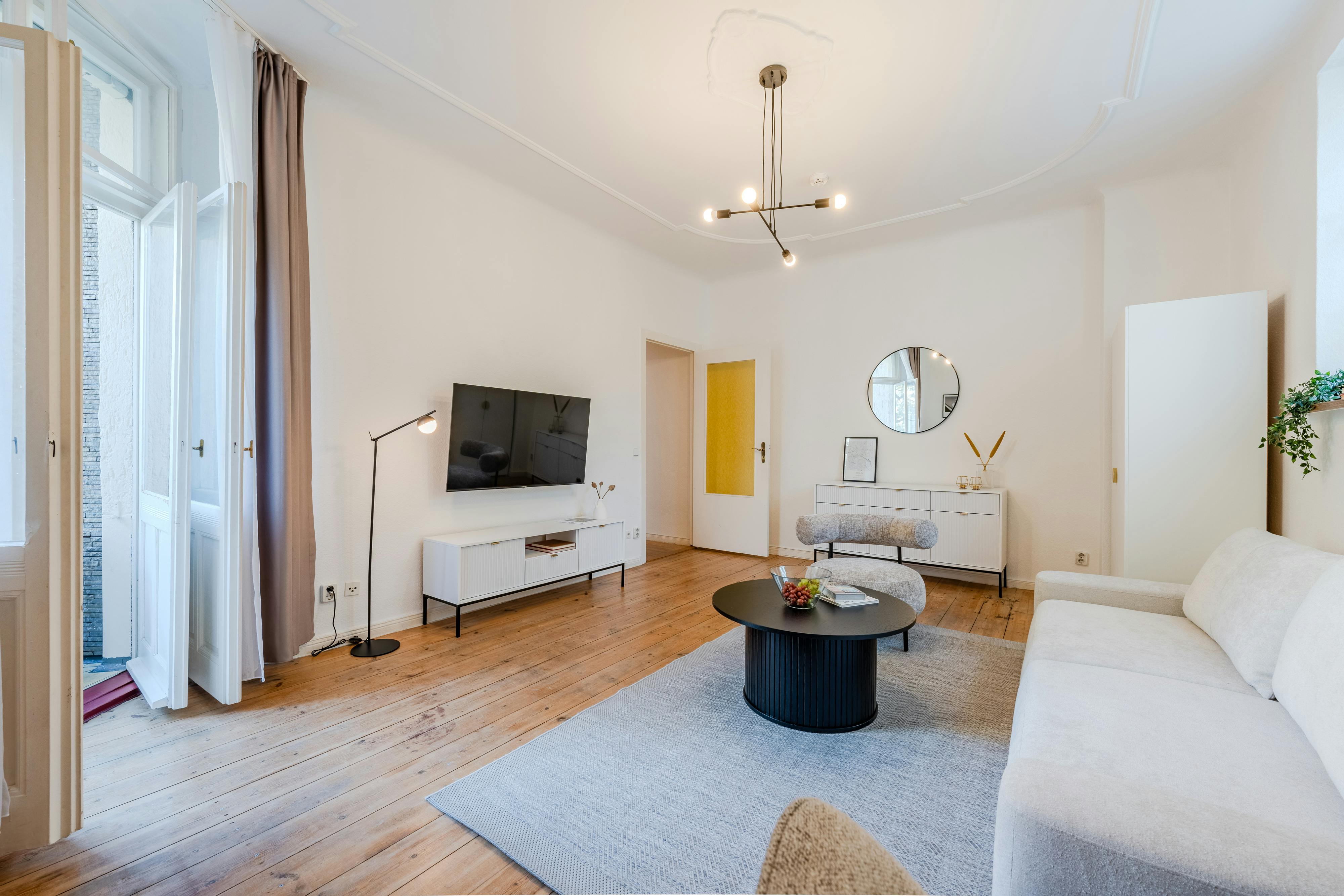 Enjoy contemporary living in this freshly renovated 55 m2 apartment, located in the vibrant Neukölln district of Berlin. With a soft beige color palette complemented by warm wood accents, the space radiates both modernity and warmth. Each detail is thoughtfully crafted to provide high-quality comfort, creating a balanced and inviting environment, complete with central heating for comfort throughout the year. The apartment boasts a spacious double bedroom with a large wardrobe and privacy curtains, creating an ideal space for rest and relaxation. The open-concept living room includes a big convertible sofa, a sleek 4K TV, and a working desk, all bathed...