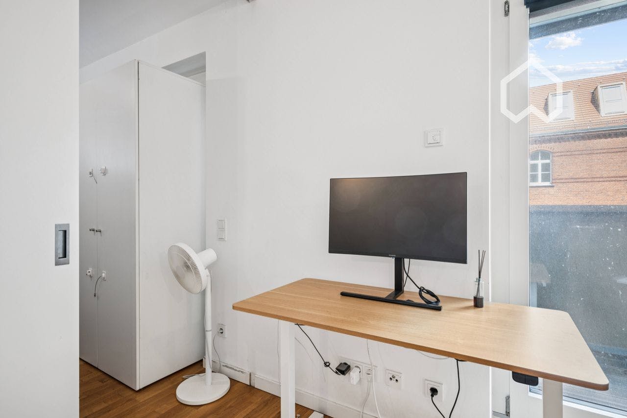 All-inclusive furnished 1.5-room apartment in Berlin-Schöneberg This fully furnished apartment in the Schöneberg district is perfect for students, interns, and professionals. ? What’s included: Fully furnished (TV, sofa bed, king-size bed, full kitchen, washer-dryer, Air Fryer, Sandwich Toaster, Blender, Kettle) High-speed internet (700 Mbit/s) All utility bills (electricity, heating, water) Workstation with ergonomic desk and OLED monitor Sunny west-facing balcony ? Location: Hauptstraße, Schöneberg 1 min to bus, 6–7 min to S-Bahn and U7 Less than 3-mins walk to the nearest supermarkets, gyms, post office, banks, and restaurants ? Just move in and start living!