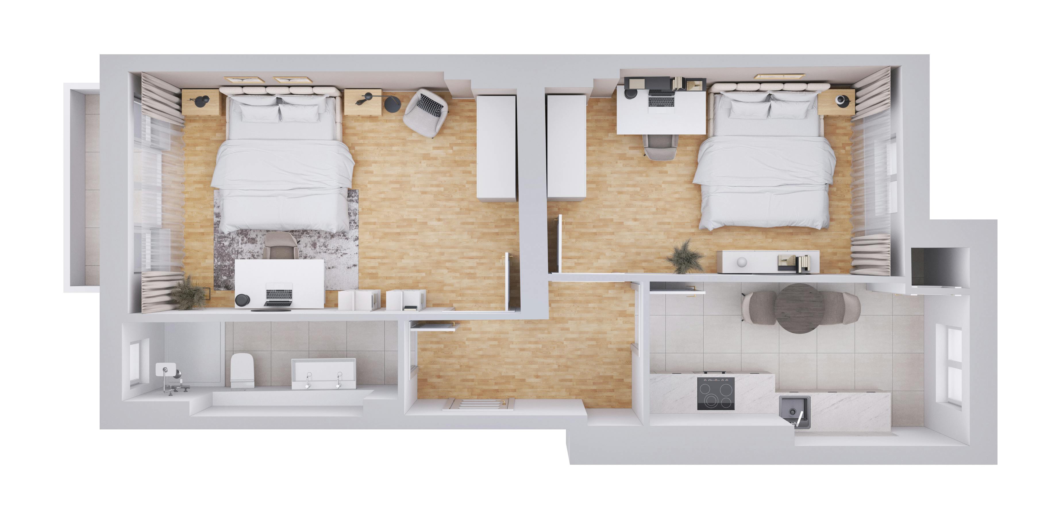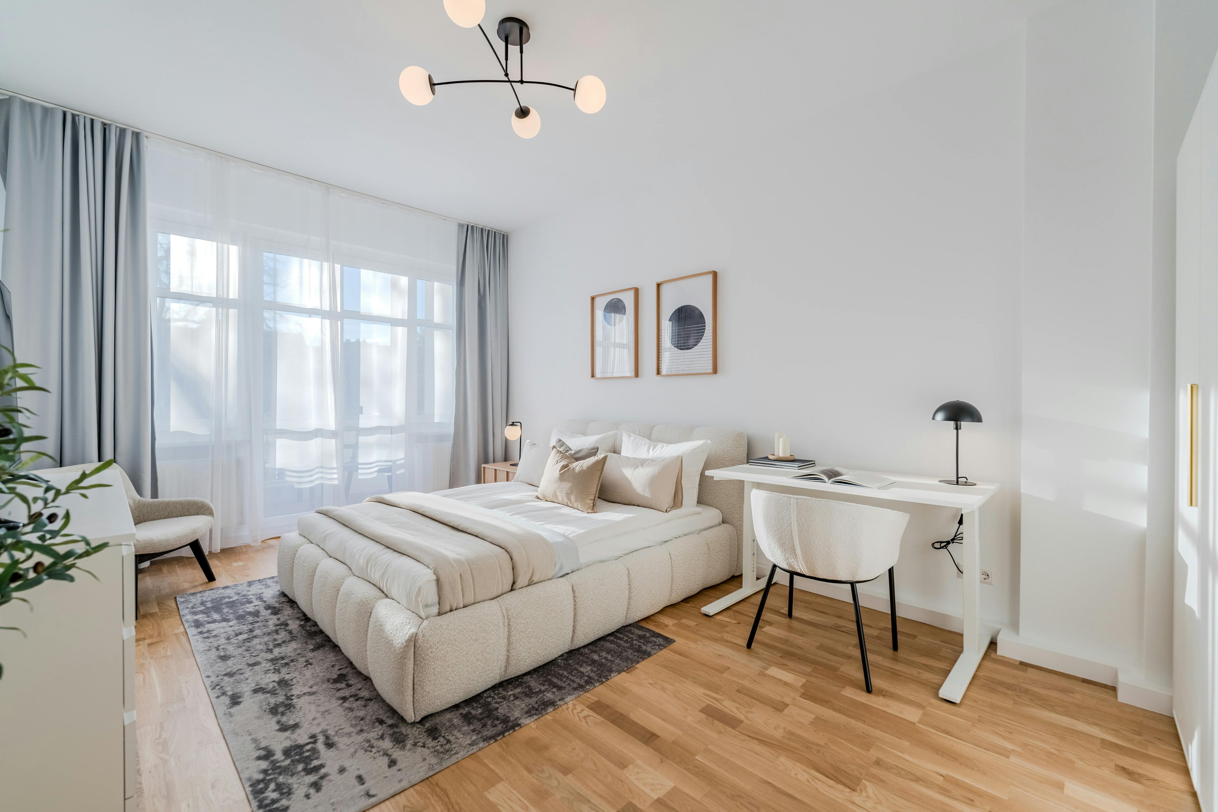 Step into this newly renovated 64 m2 apartment in the heart of Neukölln, Berlin, where contemporary living meets understated elegance. The space has been thoughtfully designed with a soft, neutral color scheme enhanced by warm wooden elements, creating a cozy and inviting ambiance. Every aspect of the interior has been meticulously planned to provide a high level of comfort, making it an ideal choice for shorter stays of less than 12 months. The apartment features two spacious double bedrooms, each with brand-new 1.80m beds, large wardrobes, and windows with privacy curtains, ensuring a peaceful and private atmosphere. Both bedrooms are fully...