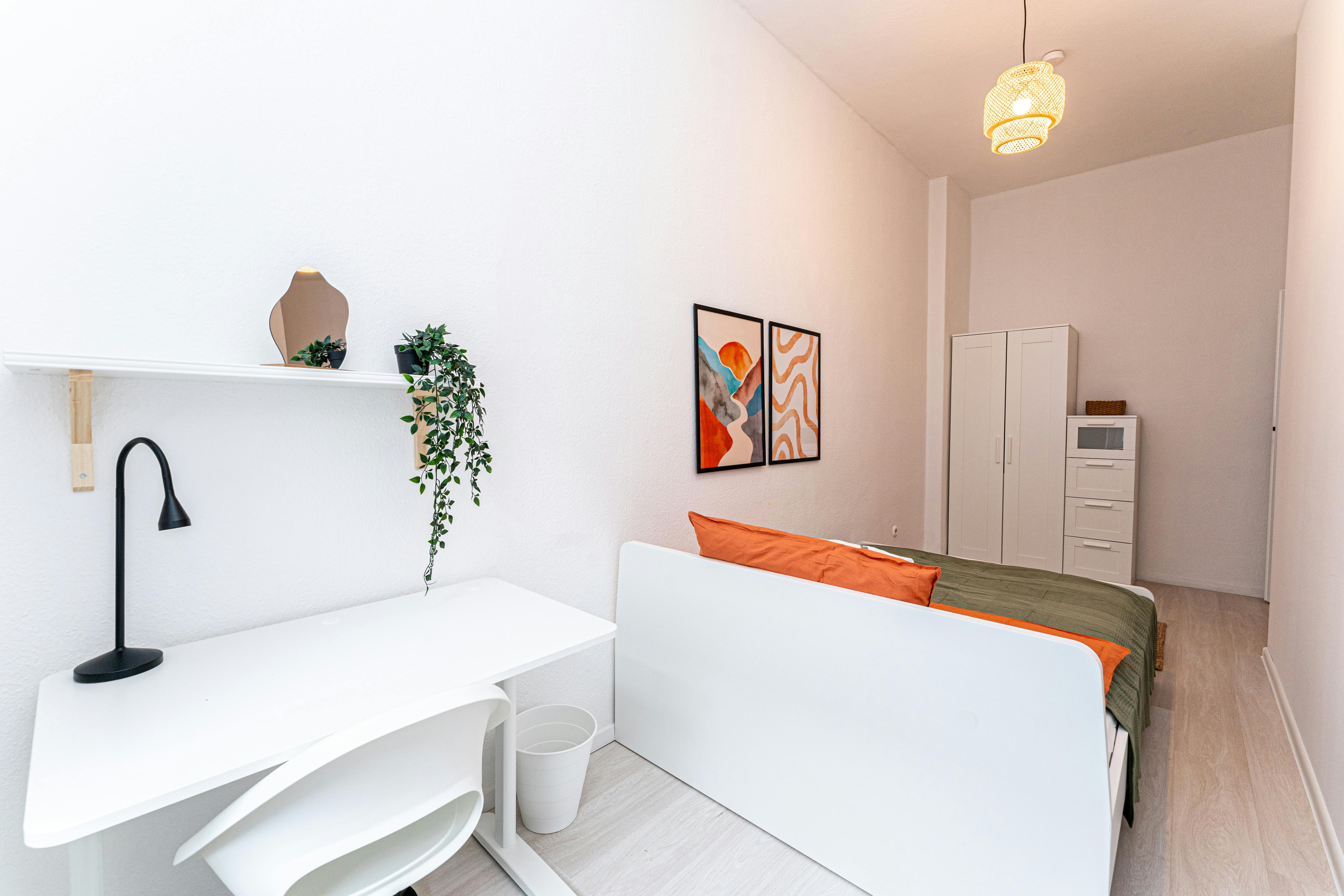Room 3 Hi Guys, this is a fully furnished room in a shared flat. The room has a comfortable bed, a desk with chair and a wardrobe for your clothes. Also the common areas are fully equipped with washing machine, cooking equipment and all you need for your daily living. Anmeldung/Registration is possible. The monthly rent price is all inclusive (rent + heating + water + Internet + GEZ/german TV license fee). For the move in dates we have only the 1st or the 16th of each month a tenant can move in. In specific cases we have a flexible move in date, but...