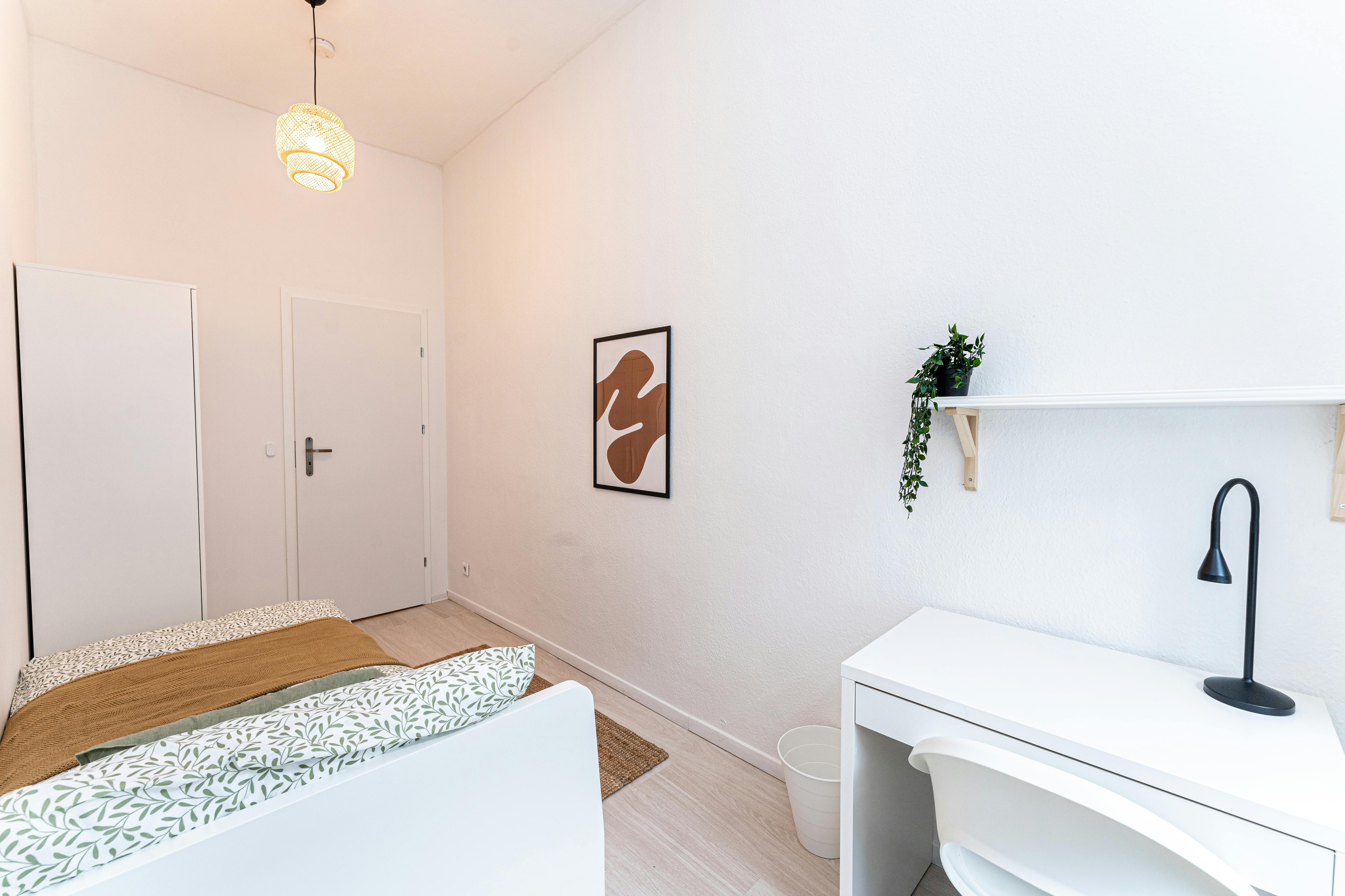 Room 4 Hi Guys, this is a fully furnished room in a shared flat. The room has a comfortable bed, a desk with chair and a wardrobe for your clothes. Also the common areas are fully equipped with washing machine, cooking equipment and all you need for your daily living. Anmeldung/Registration is possible. The monthly rent price is all inclusive (rent + heating + water + Internet + GEZ/german TV license fee). For the move in dates we have only the 1st or the 16th of each month a tenant can move in. In specific cases we have a flexible move in date, but...
