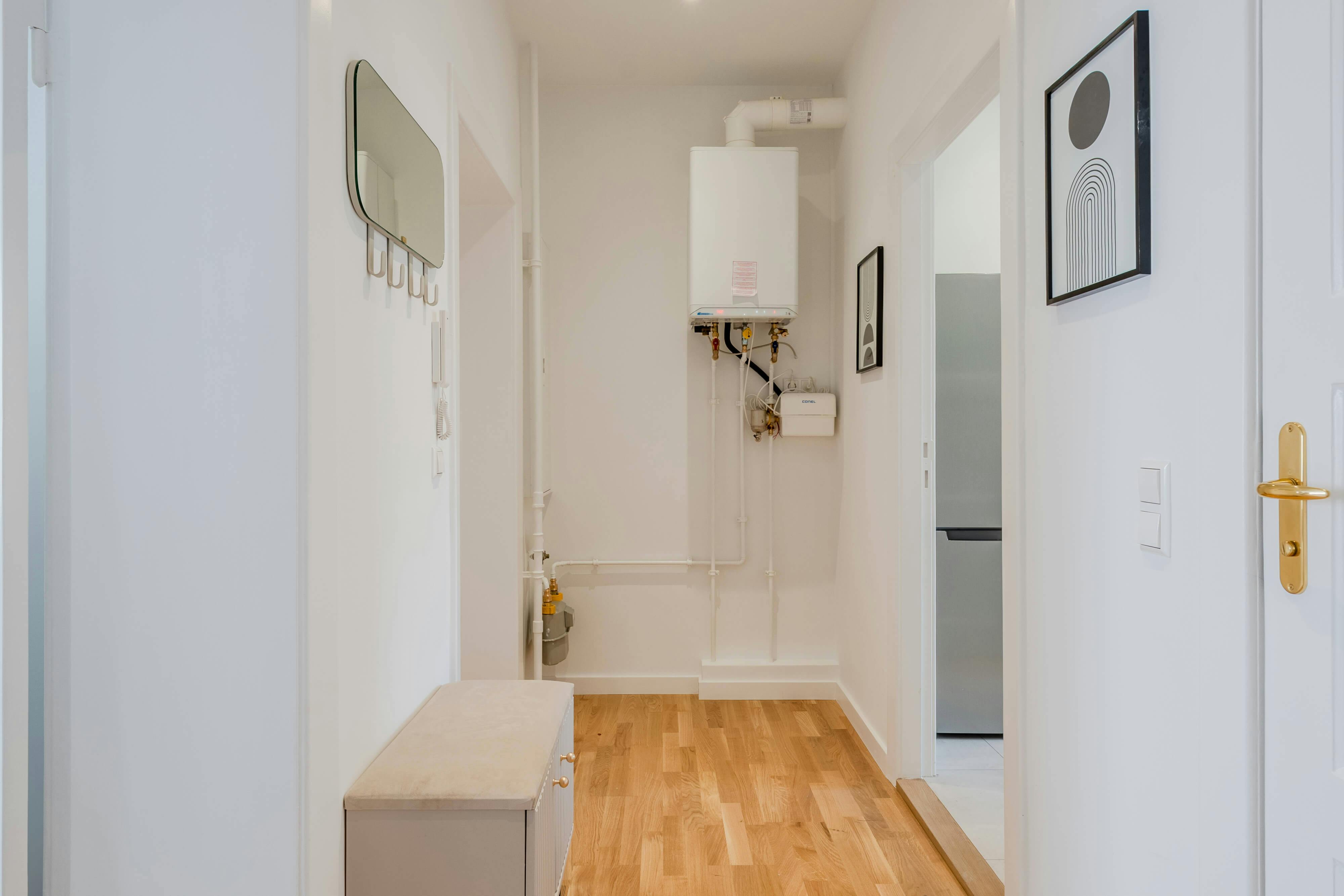 Welcome to this beautifully designed 50 m2 apartment in the vibrant district of Neukölln, Berlin. This thoughtfully arranged space offers a large double bedroom, a cozy living room with a sofa and a fully equipped kitchen with high-end appliances. The bedroom is a serene retreat, featuring a spacious 1.80-meter double bed, a large wardrobe with ample storage, and big windows that let in plenty of natural light, creating a bright and tranquil atmosphere. The kitchen combines modern style and functionality, equipped with high-end appliances and a cozy dining area for meals or hosting guests. The bathroom is sleek and contemporary, featuring a...