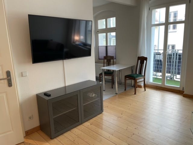 Wonderful apartment in the very best location in Berlin! ?️ About your apartment: This stunning 45sqm apartment is completely newly furnished with great attention to detail and located on the 3rd floor in the side wing of a well-maintained building. An elevator is available for your convenience. The apartment is absolutely quiet and very bright, featuring a cozy balcony with artificial turf that’s perfect for breakfast or relaxation. The kitchen and living room seamlessly merge into one space, and the sleeping area can be separated by curtains for added privacy. The box spring bed is 180x200 cm in size, and a large...