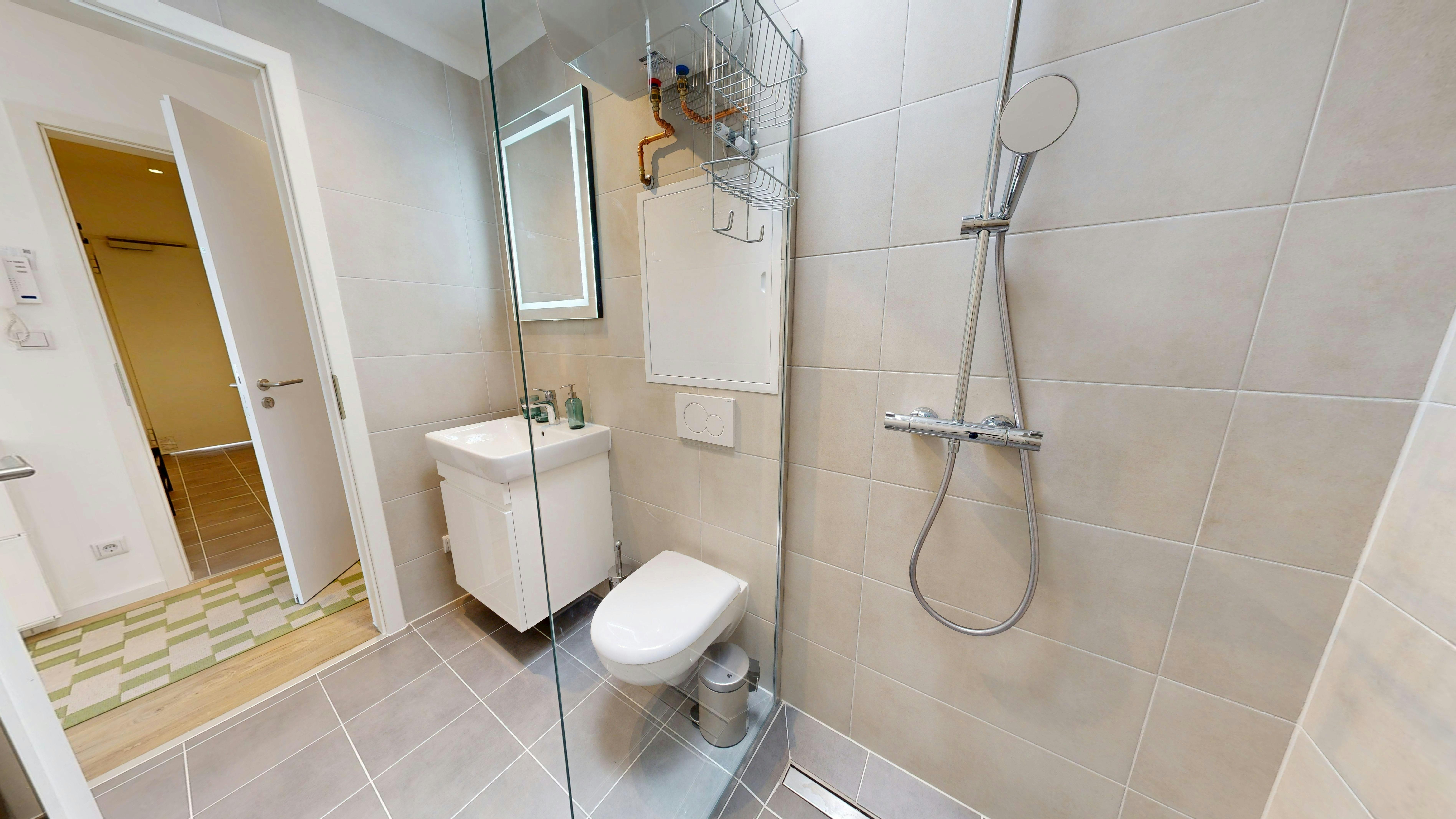 A fully-furnished, newly built all-inclusive, studio apartment in beautiful Moabit. This unit is a perfect find for couples who are looking for high quality of life in one of the liveliest, most popular locations in Berlin, without compromising on space or privacy. It has a large living room with an open kitchen with a double bed, a bathroom and a balcony. It is incredibly well connected to public transportation with plenty of bus stops and U Bahn station Turmstraße within easy walking distance. At the end of the road lies the Spree, the perfect place to relax in the summer...